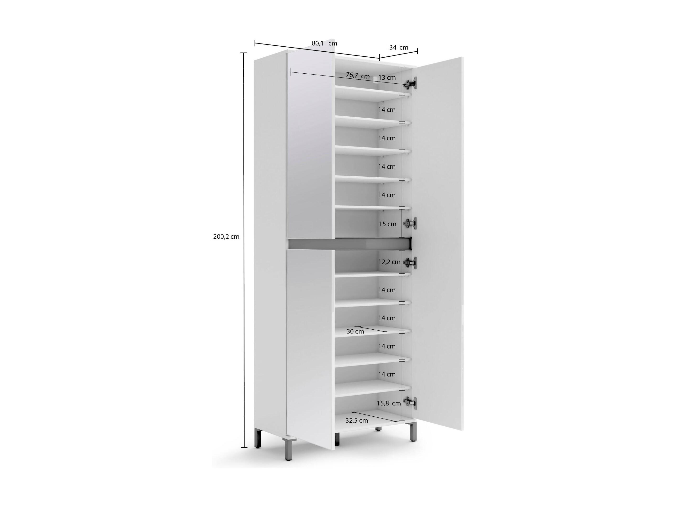 Ddjimsit schoenenrek, schoenenrek, multifunctionele entree, schoenenmeubel, Made in Italy, 80x34h200 cm, glanzend wit