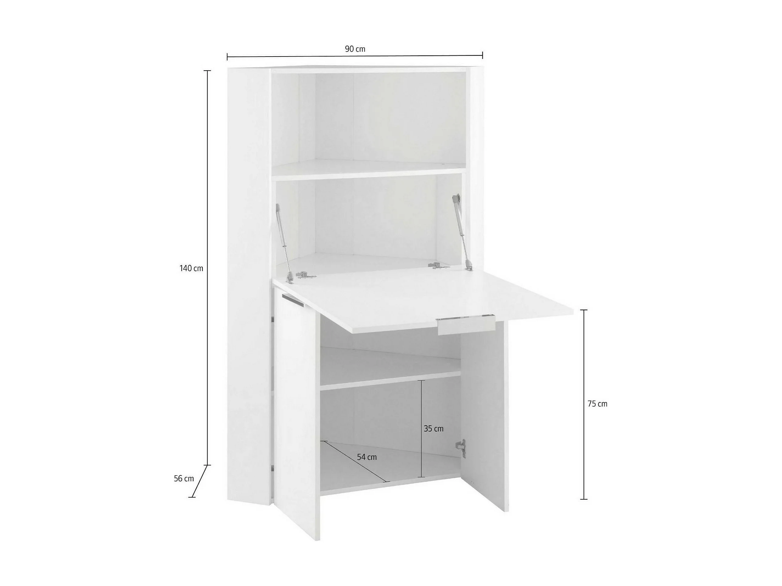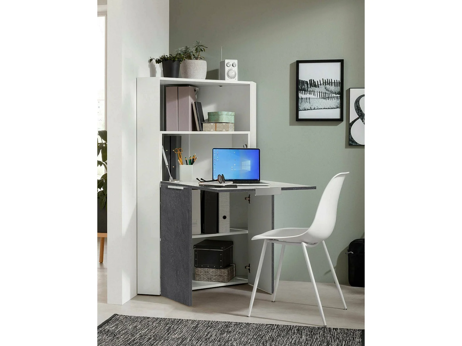 Dcallejo Bureau, Hoekkast met planken en werkblad, Multifunctionele Bureautafel, Ruimtebesparend Bureau, 100% Made in Italy, 70x57h140 cm, Wit en Leisteen
