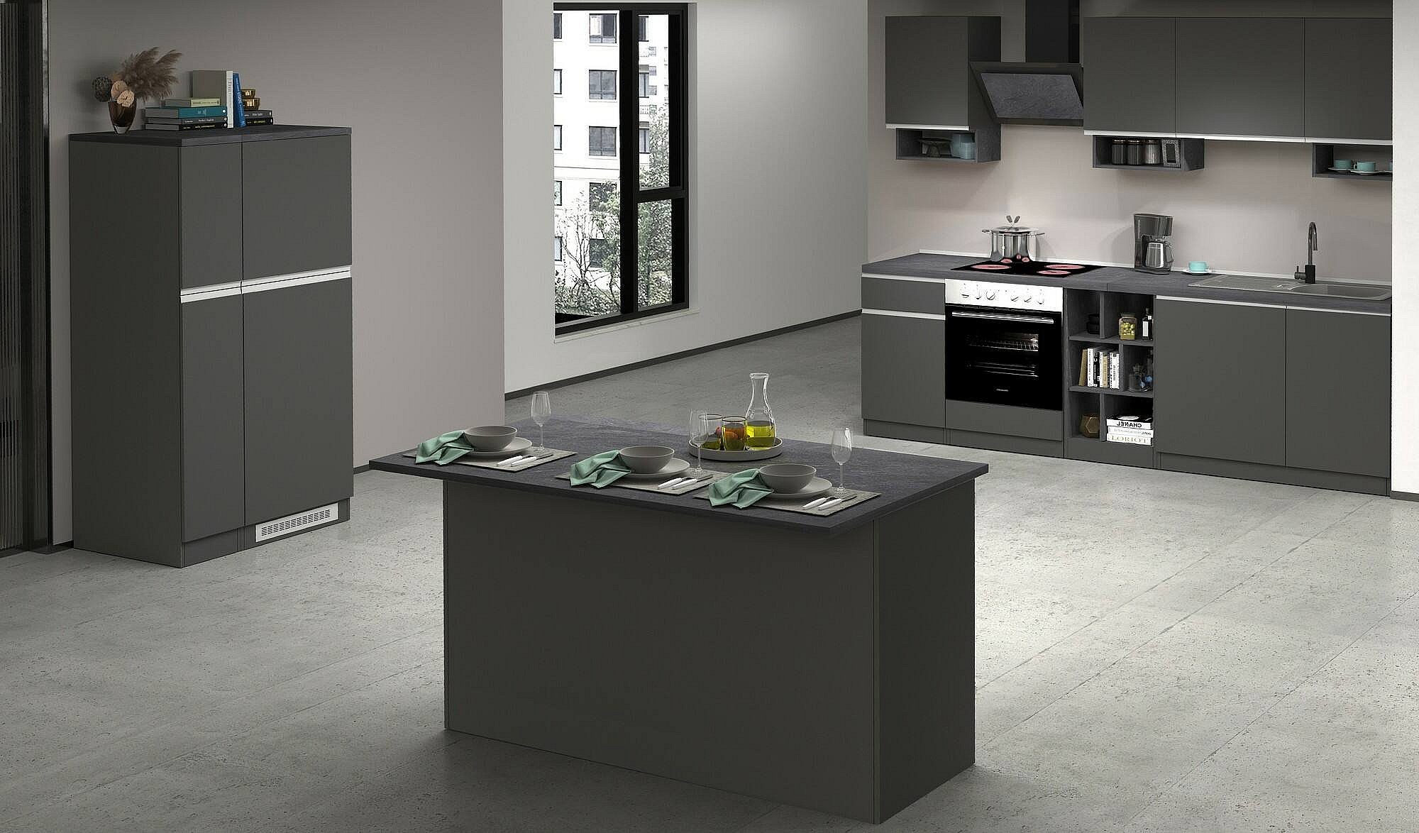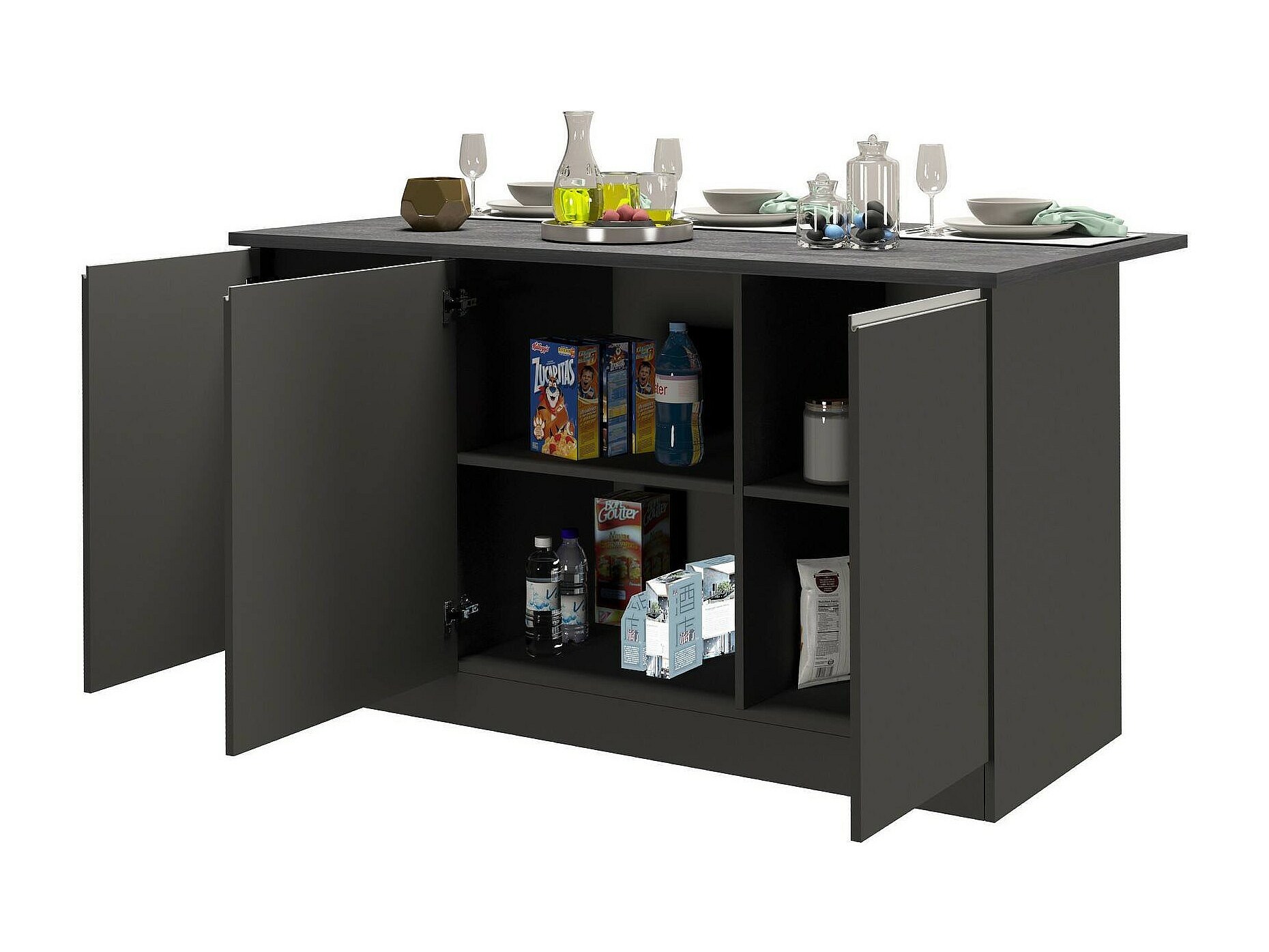 Dcarnelo keukeneiland, Multifunctionele kledingkast, Keukenmeubel, Bijzettafel, 100% Made in Italy, 155x90h90 cm, Antraciet en Leisteen
