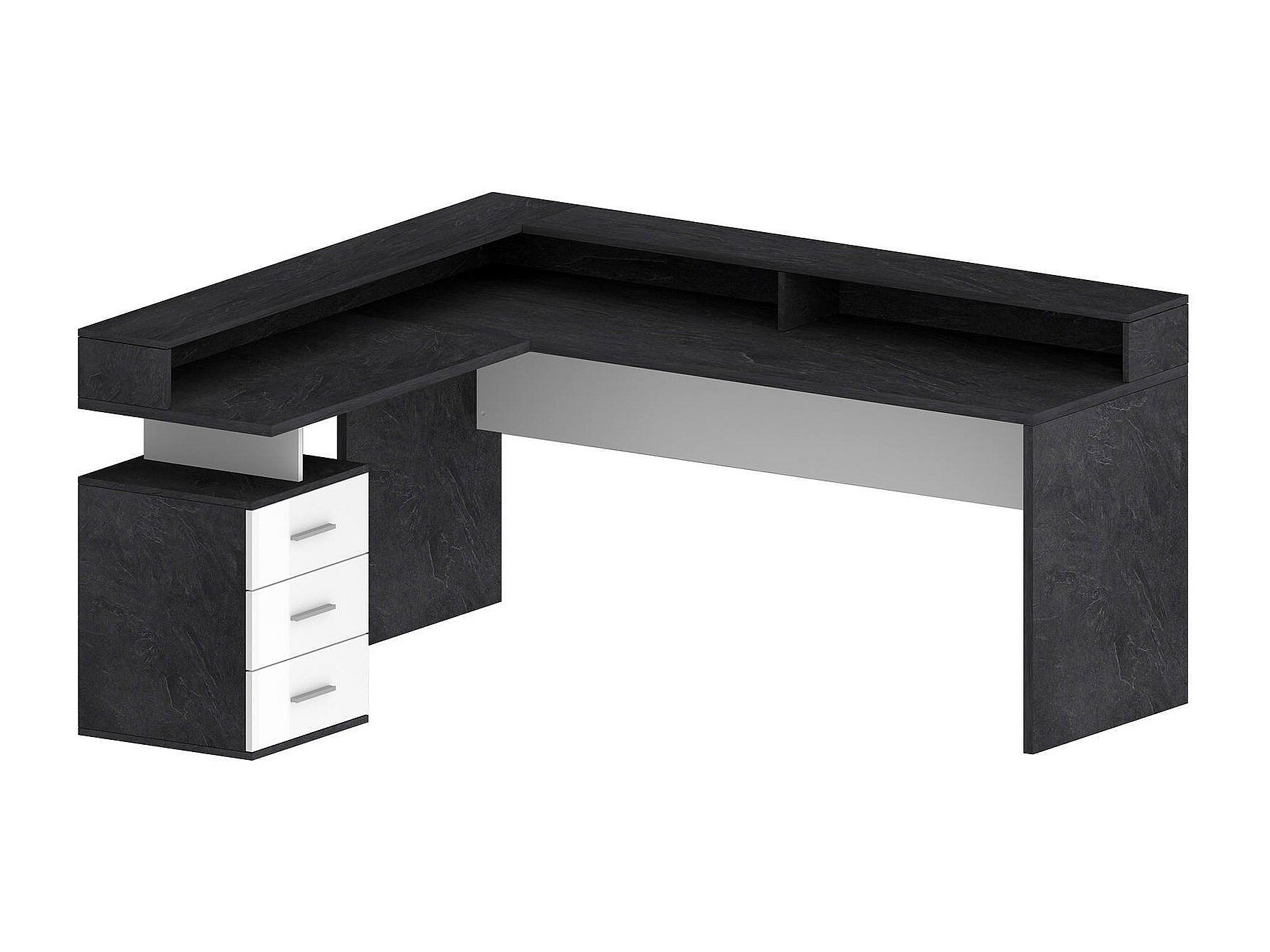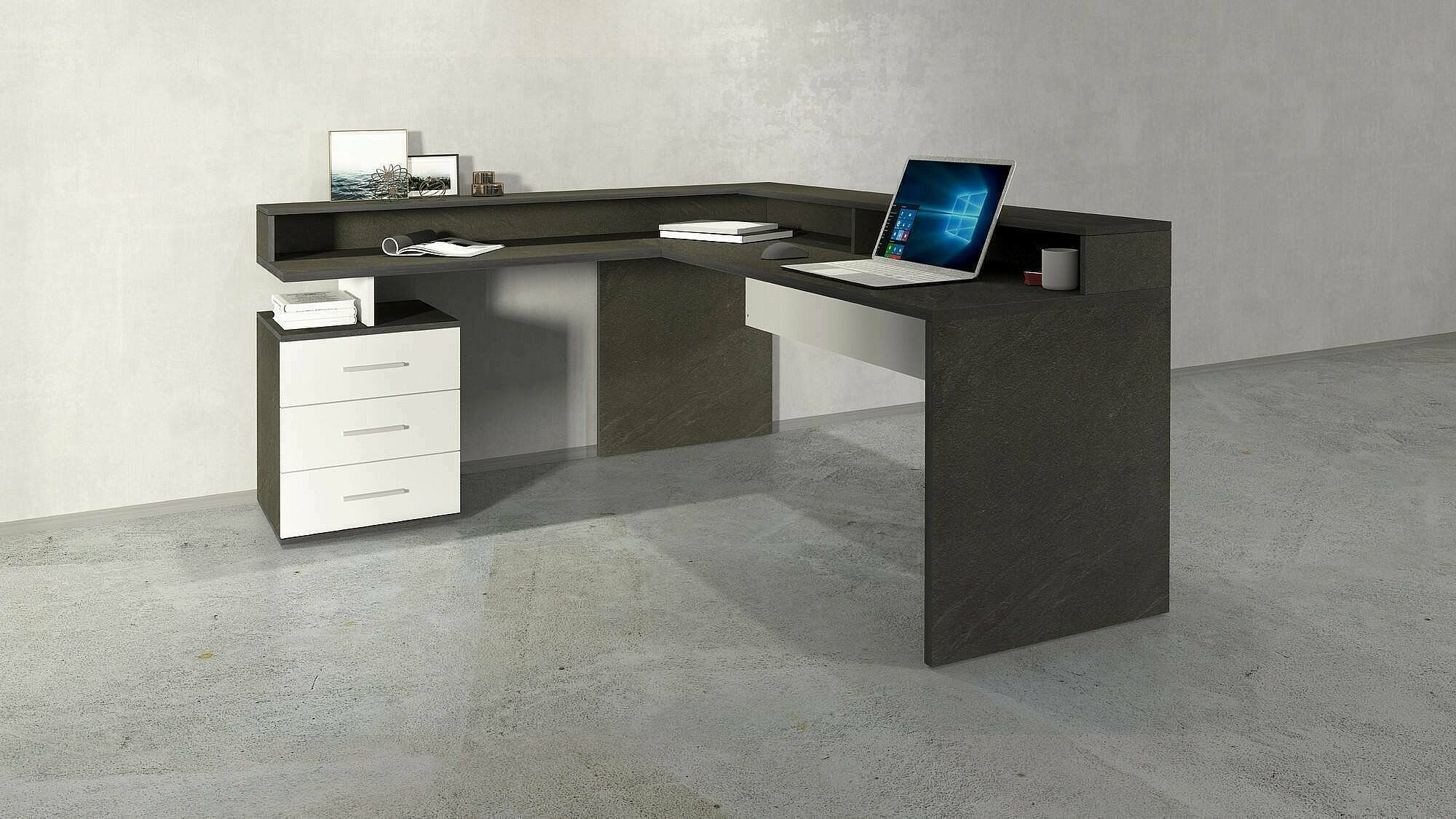 Dcerretell-kantoor, hoekkantoor met bovensteen, multifunctionele kantoor, 180x90h160 cm, wit en leisteen
