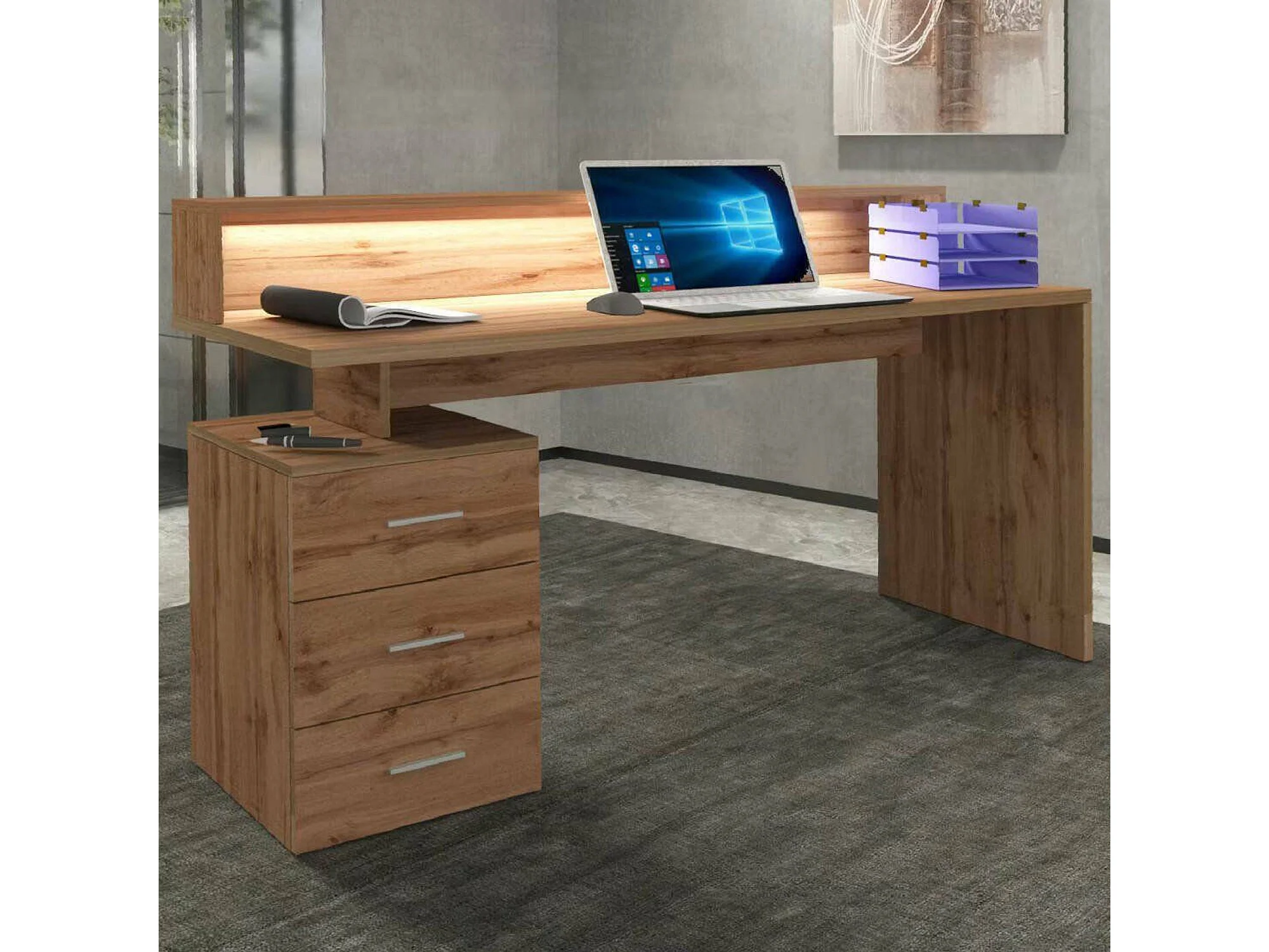 Dchiriche Bureau, Bureau met Sopralzo, Multifunctioneel Bureau, Multi Position Ruimtebesparend Bureau, 160x60h90 cm, Eiken