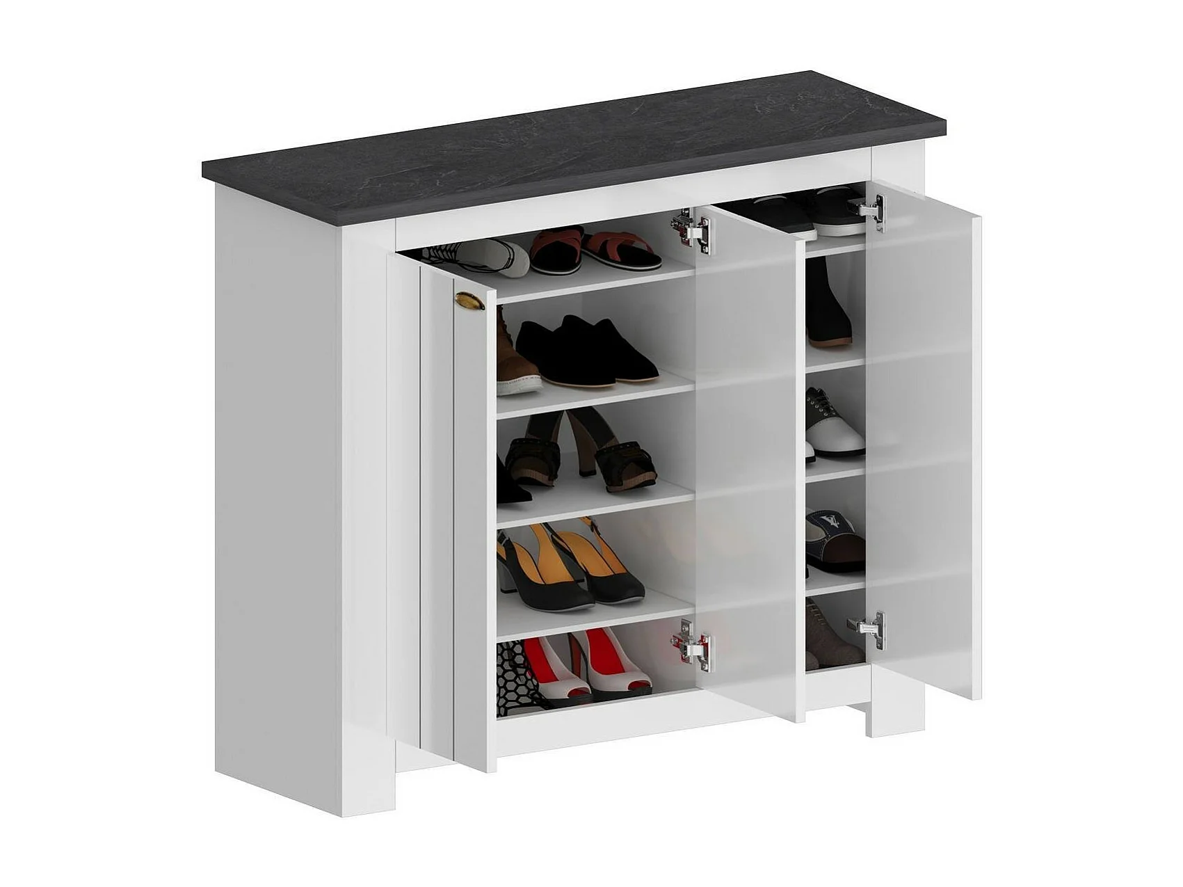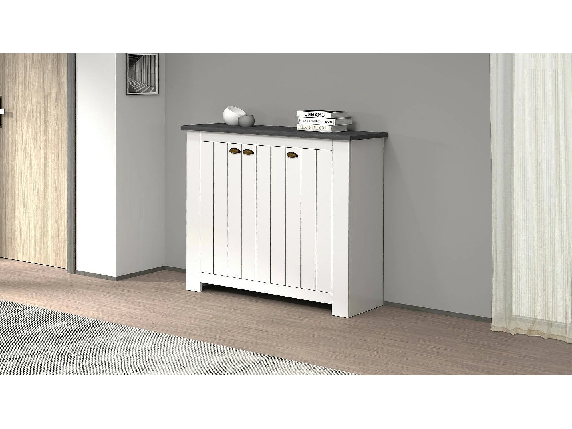 Dcigarin schoenenrek, ruimtebesparende schoenenrek met 3 deuren, met inkomh, 114x42h100 cm, Wit en leisteen