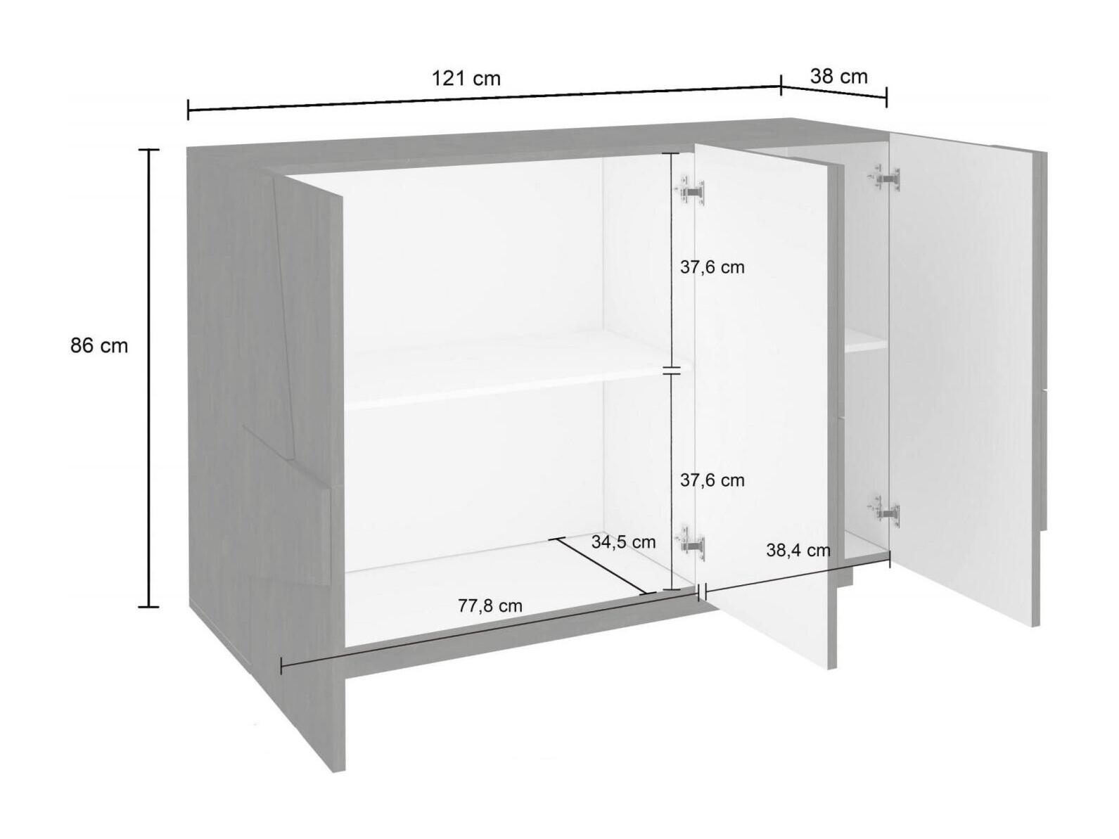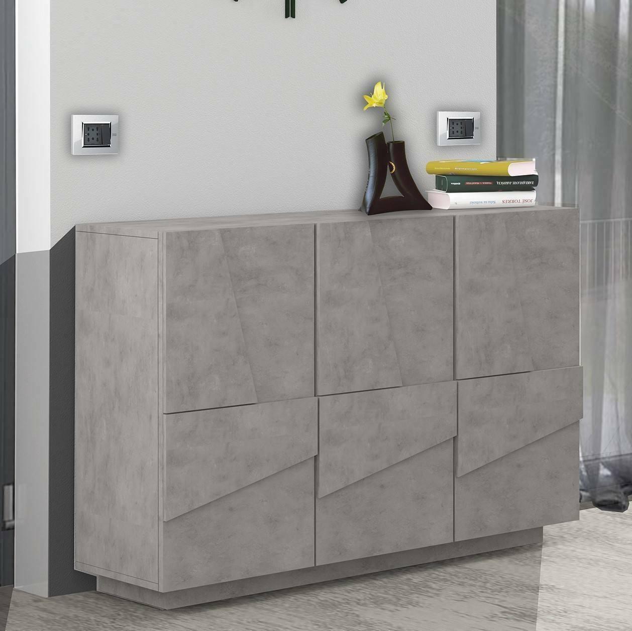 Dlann dressoir, Keukendressoir met 2 deuren en 3 laden, Woonkamerbuffet, 100% Made in Italy, 143x44h86 cm, Cement