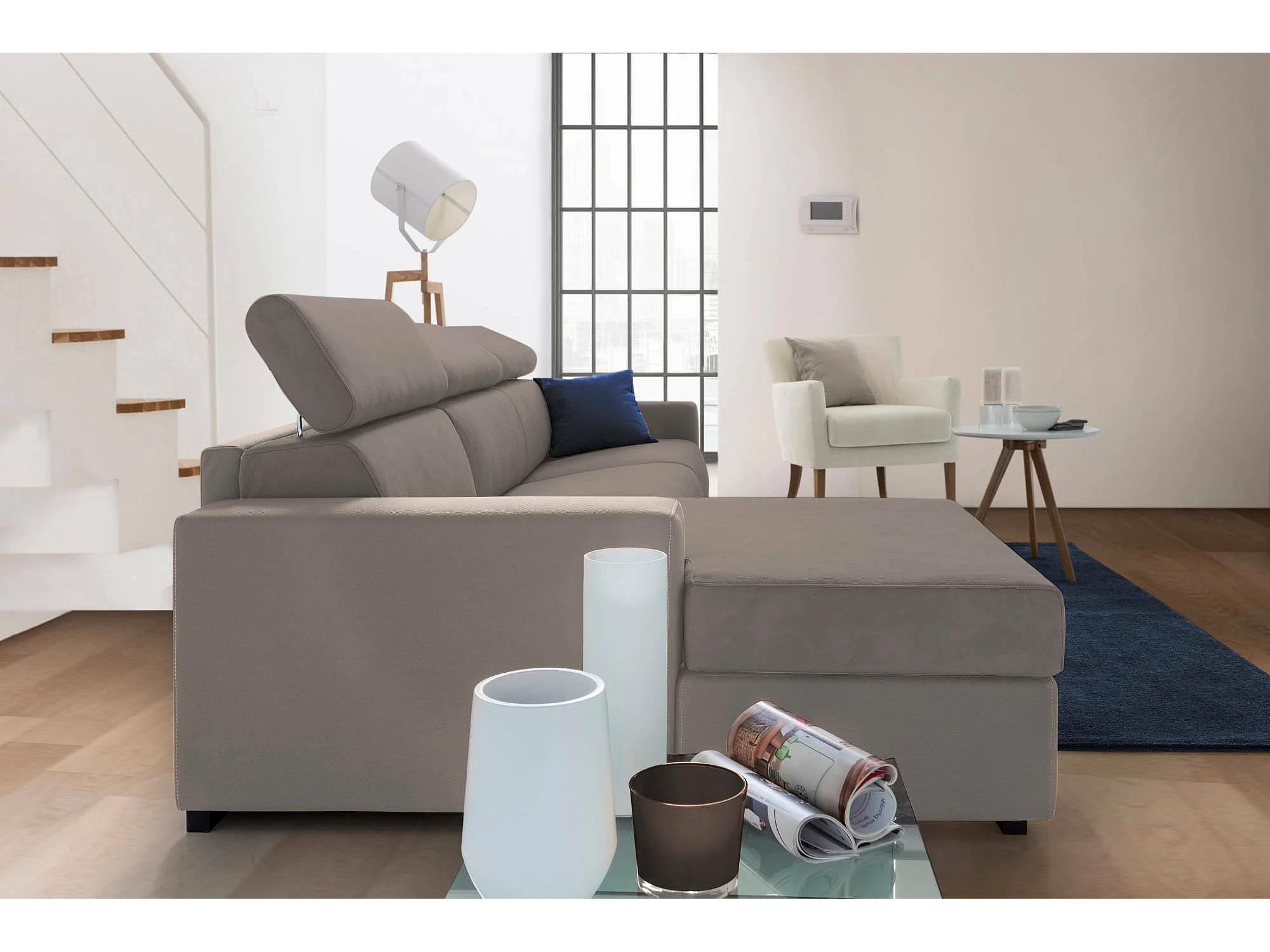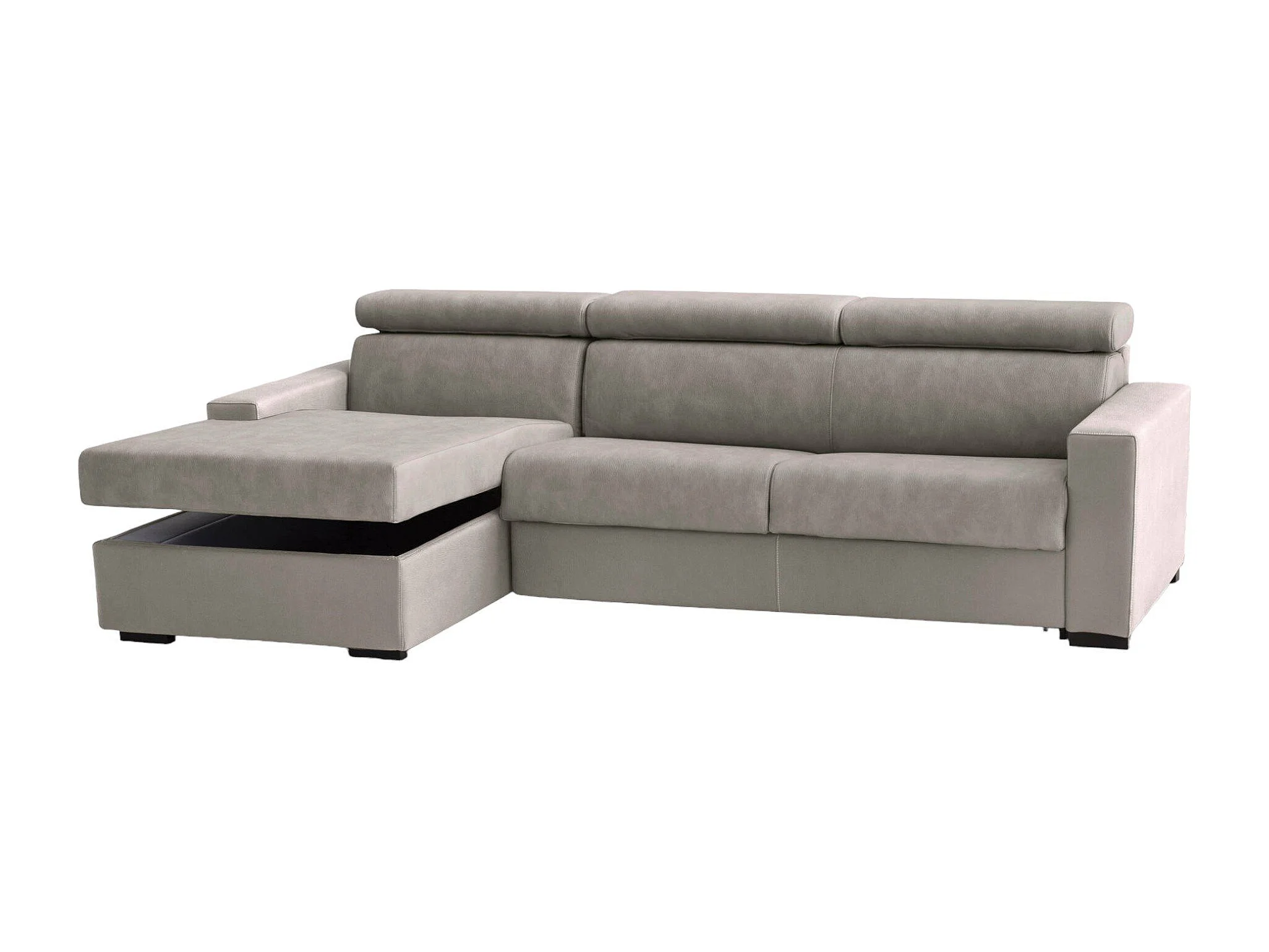 Divano fisso con penisola in tessuto tortora 280x95h85 cm