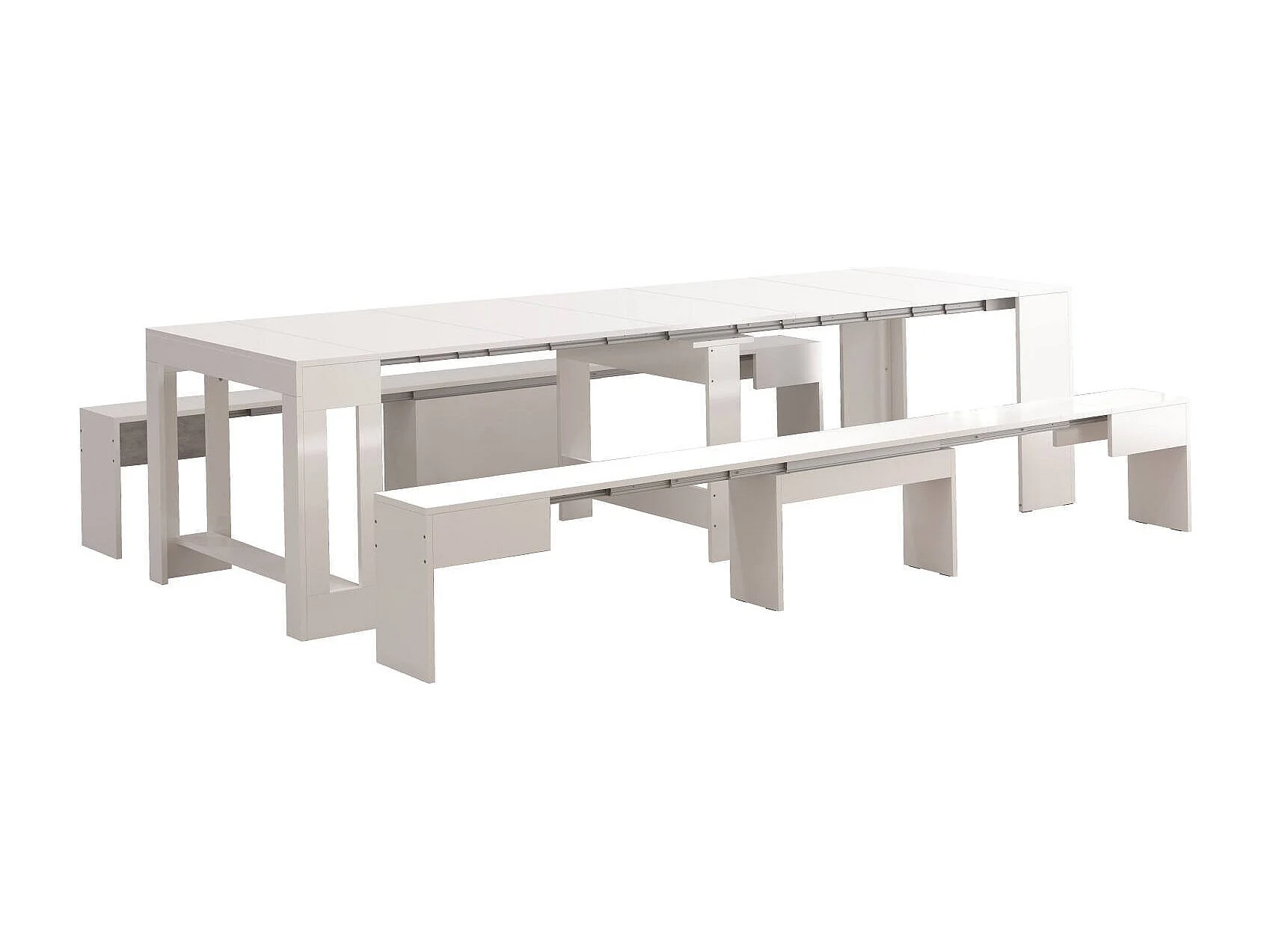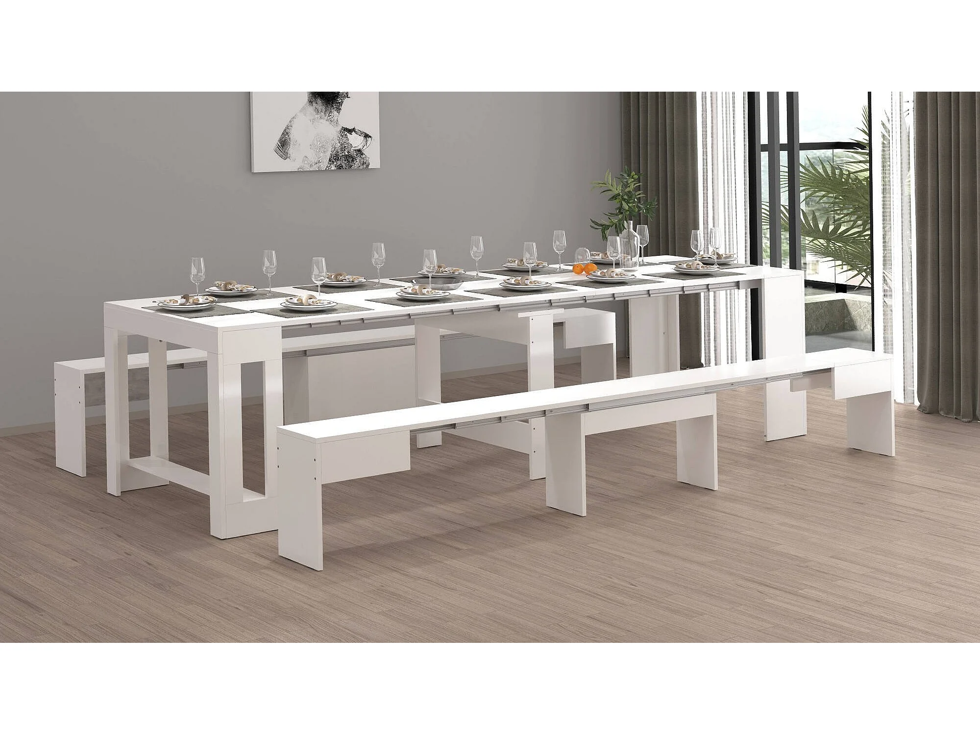 Dcolasuon bank, Set van 2 stoelen voor eettafel, Uitschuifbare banken, 290x25h45 cm, Glanzend wit