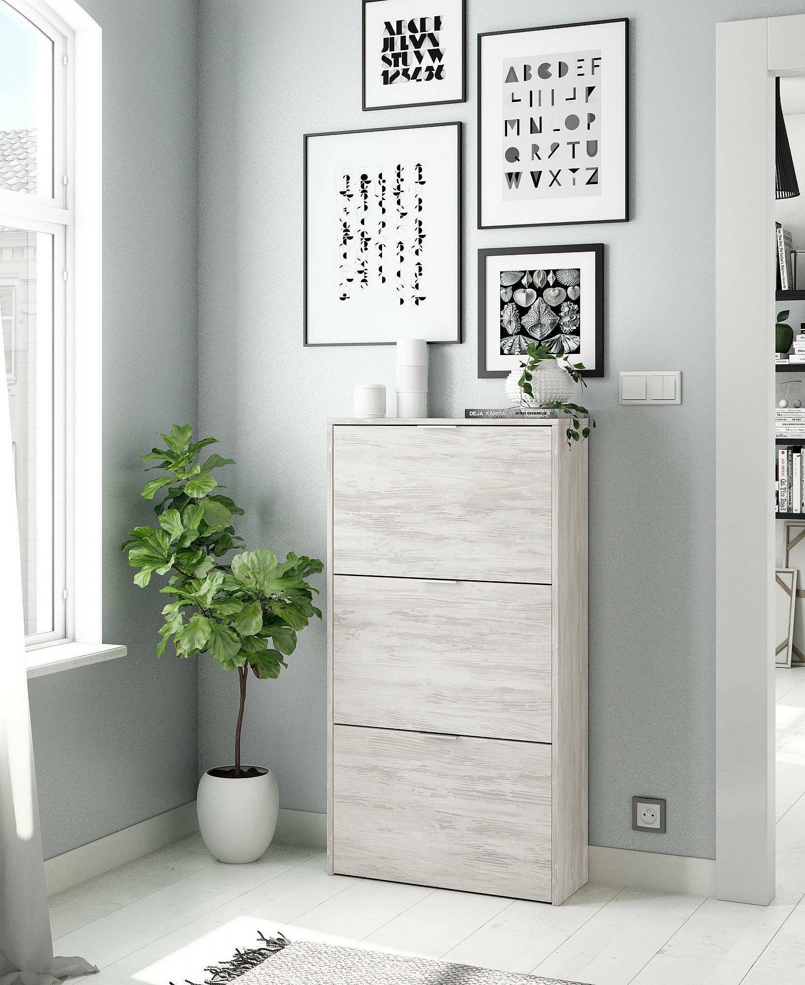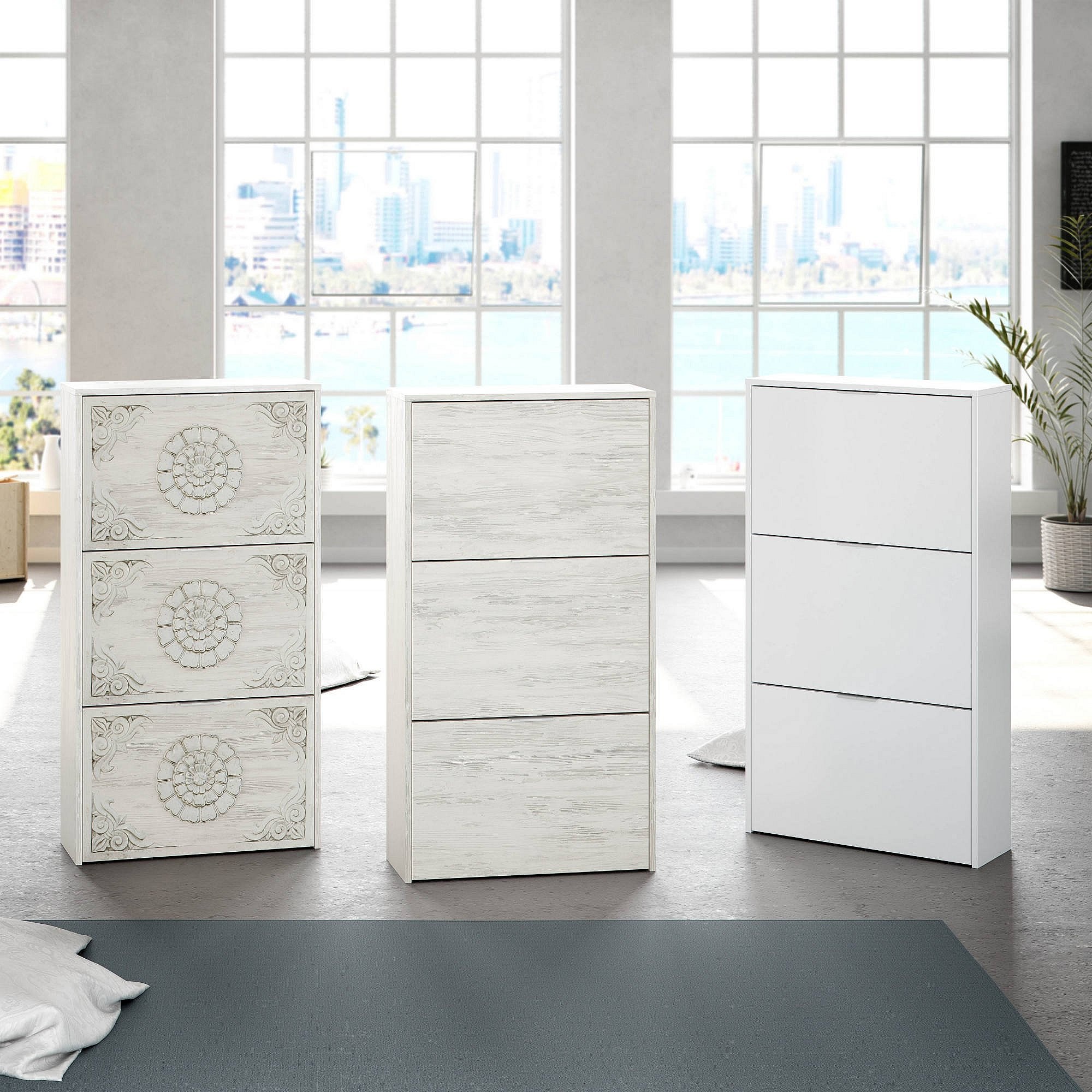 Dmurr schoenenrek, ruimtebesparend entree schoenenrek, schoenenkast met 3 vouwdeuren, 61x25h113 cm, Wit