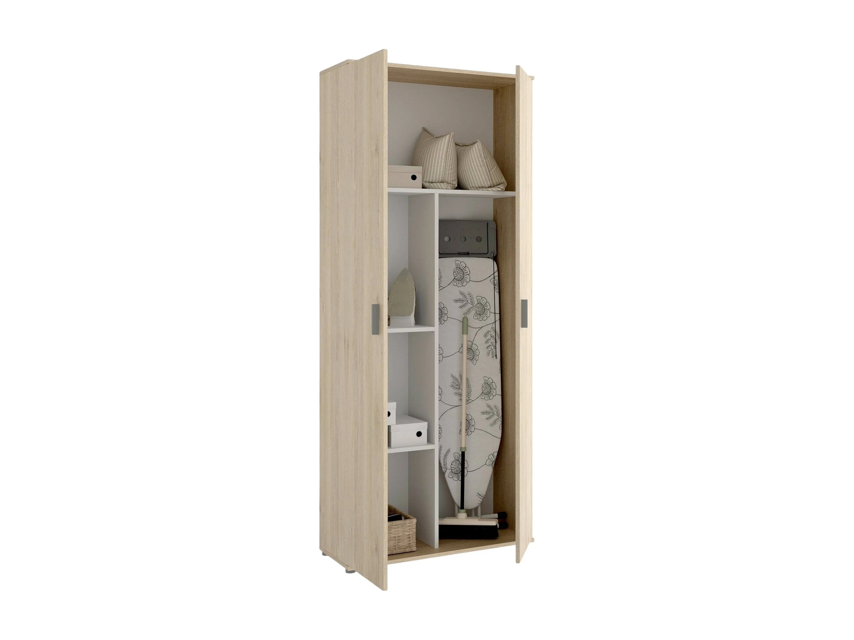 Ddeiol multifunctionele kledingkast, multifunctionele bezemkast, 2-deurskast, 78x35h190 cm, eiken
