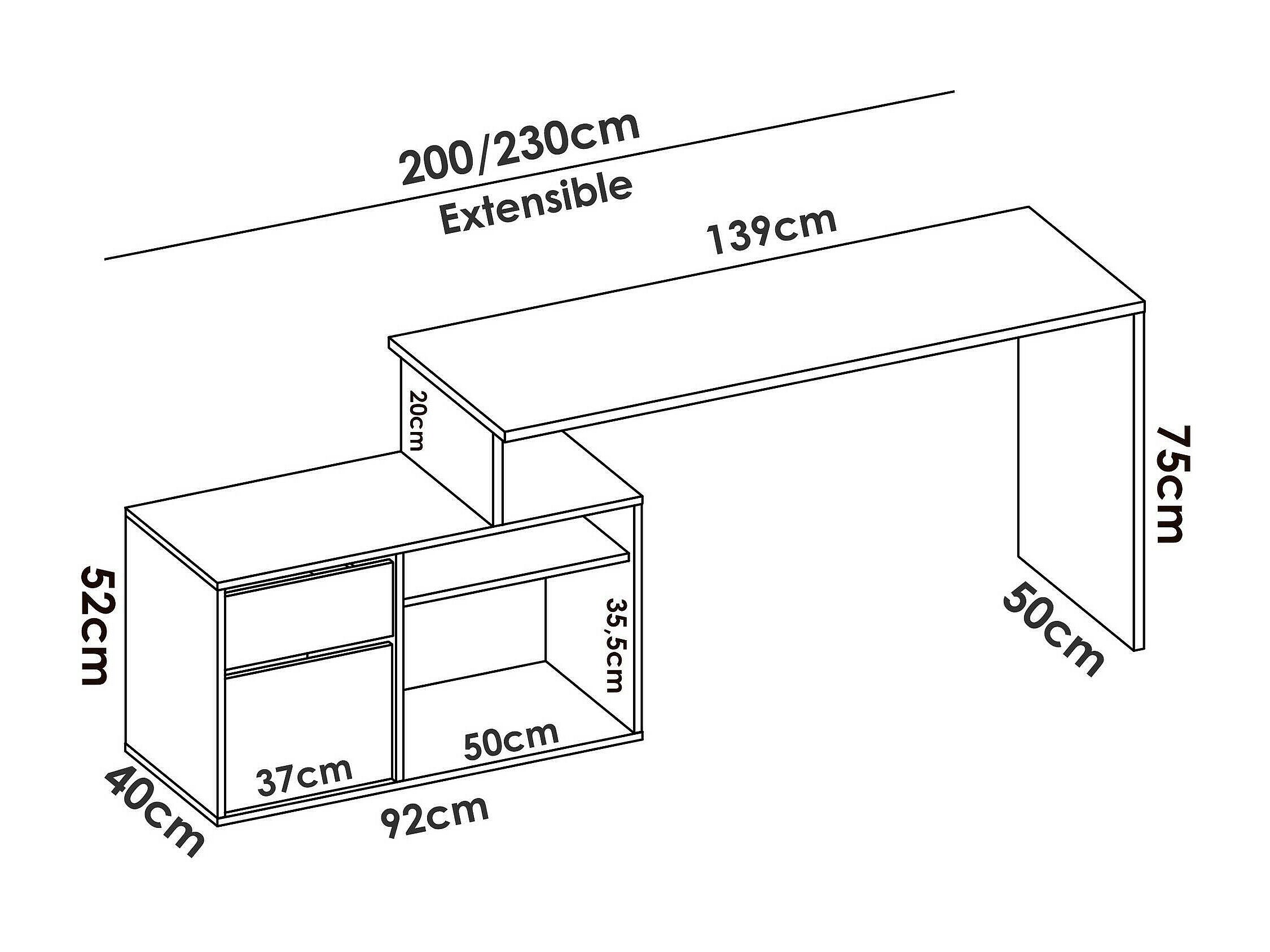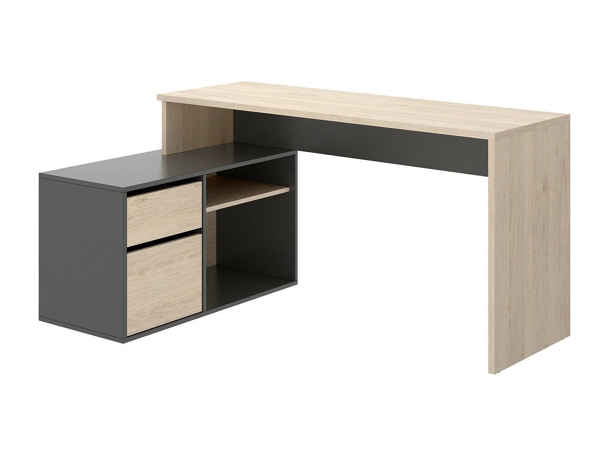 Ddiaw bureau, Multi-positie bureau voor kantoor of slaapkamer, Multifunctionele hoekstudeertafel, 139x92h75 cm, Eiken en antraciet