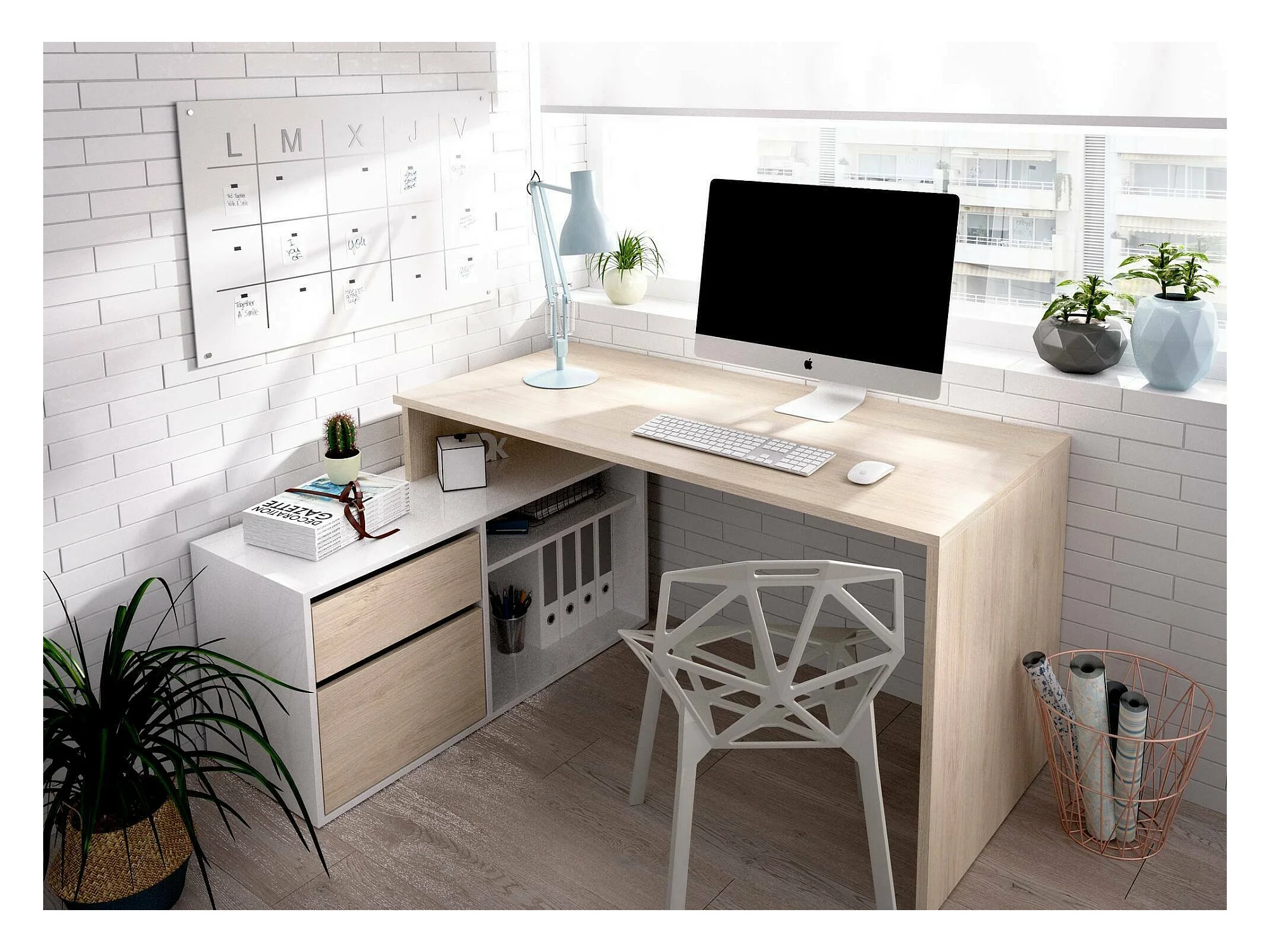 Ddiaw bureau, Multi-positie bureau voor kantoor of slaapkamer, Multifunctionele hoekstudeertafel, 139x92h75 cm, Wit en Eiken