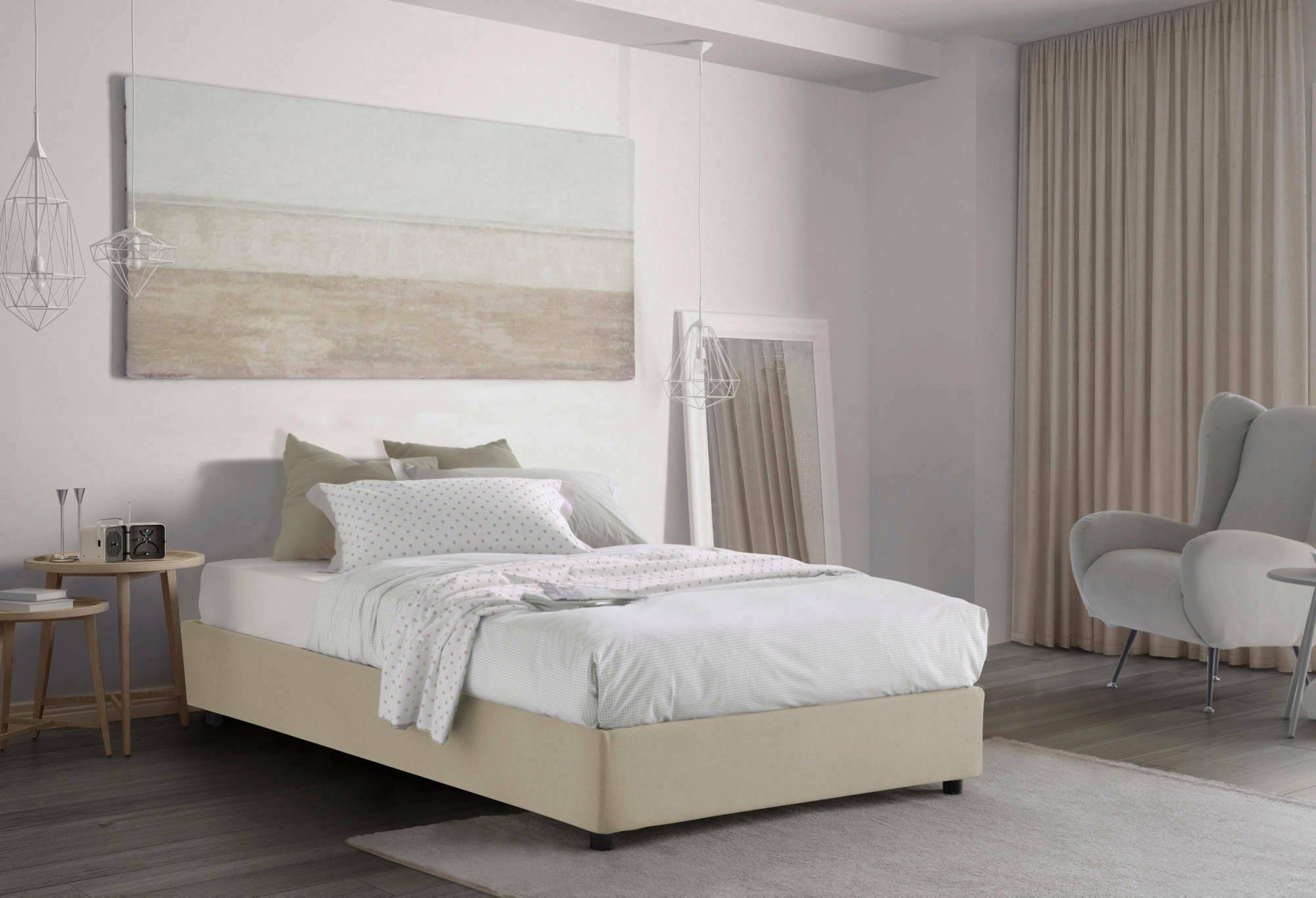 Dbamb tweepersoonsbed, Opbergbed met stoffen bekleding, 100% Made in Italy, Opening aan de voorkant, inclusief matras van 120x190 cm, Beige