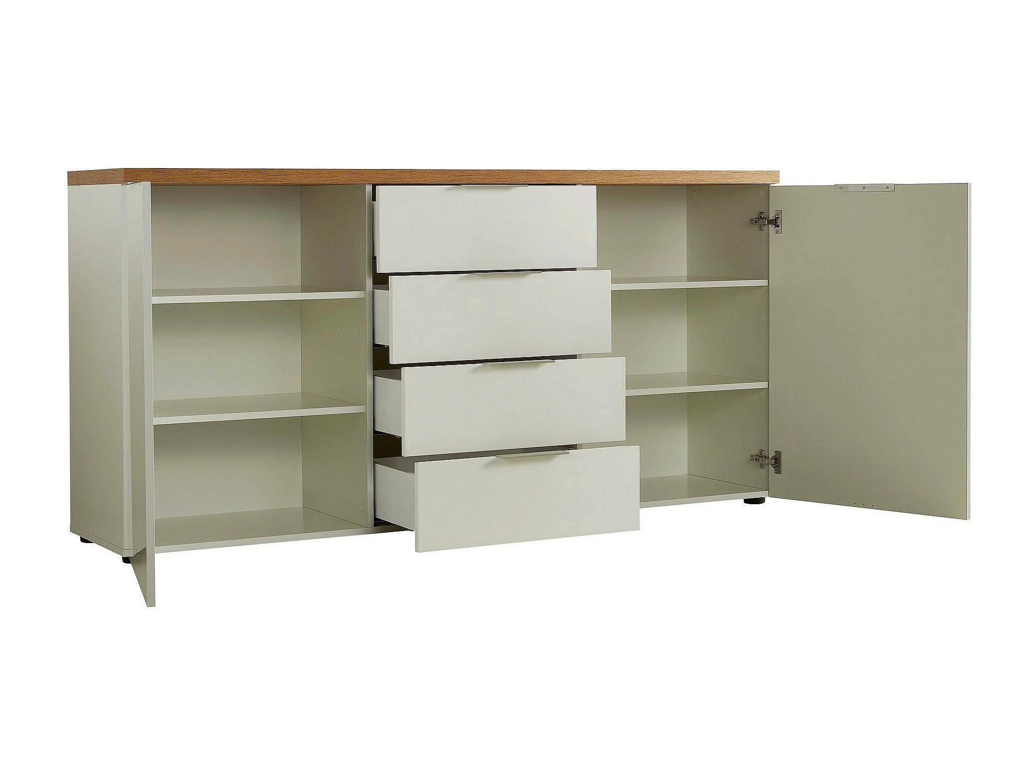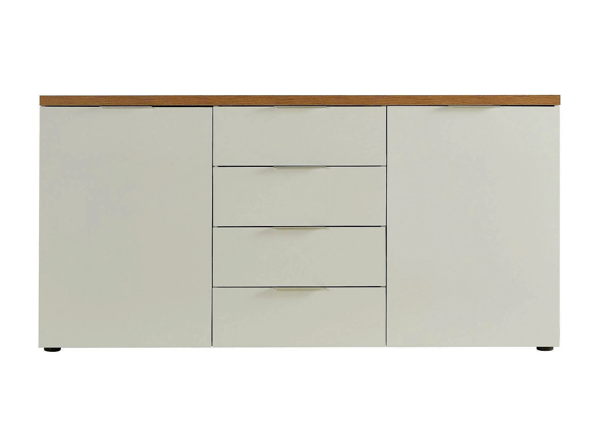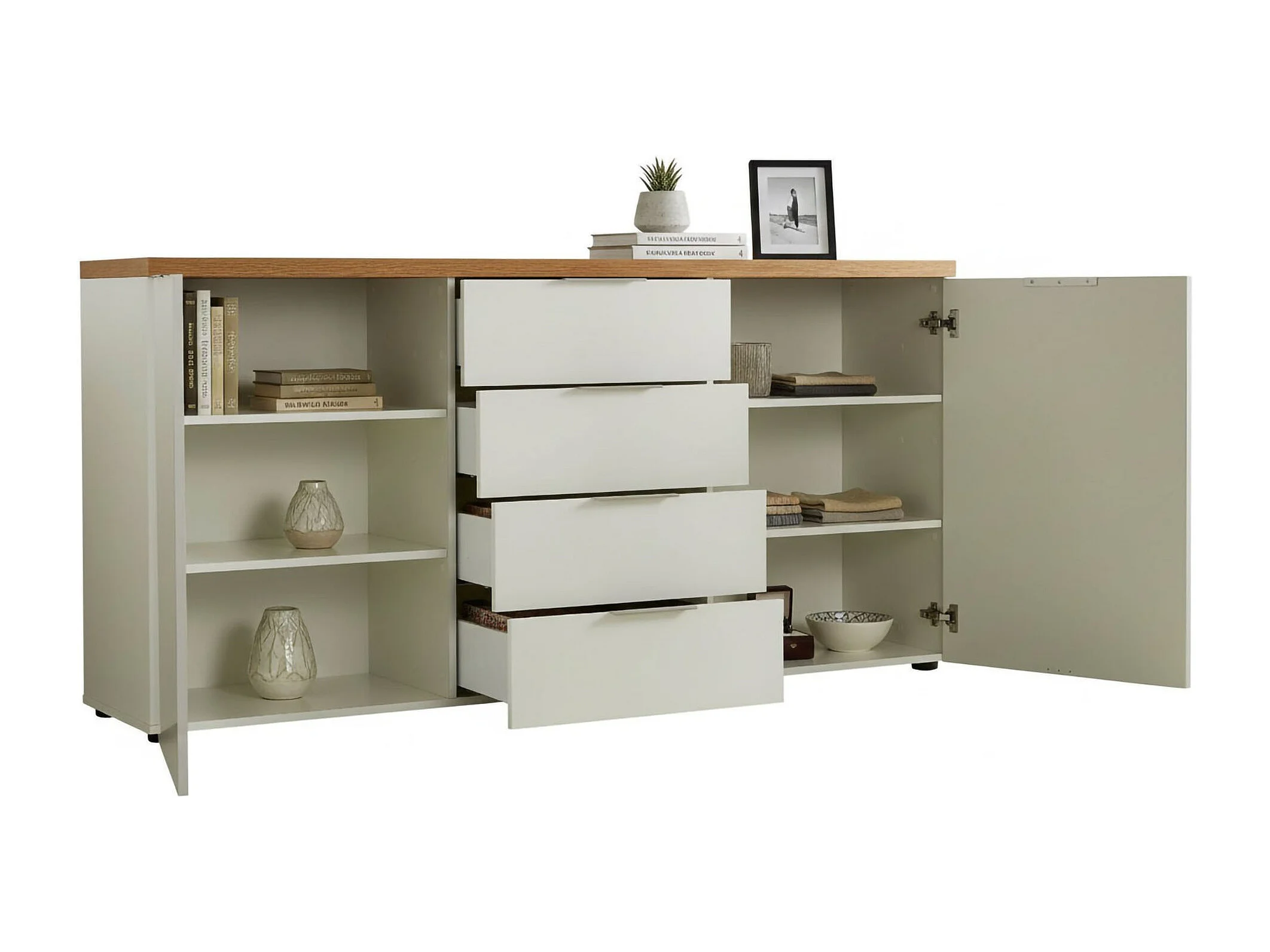 Ddichiar Dressoir, Woonkamer Buffet, Woonkamer, PantryKeuken, Made in Italy, 180x43h89 cm, Glanzend Wit en Eiken
