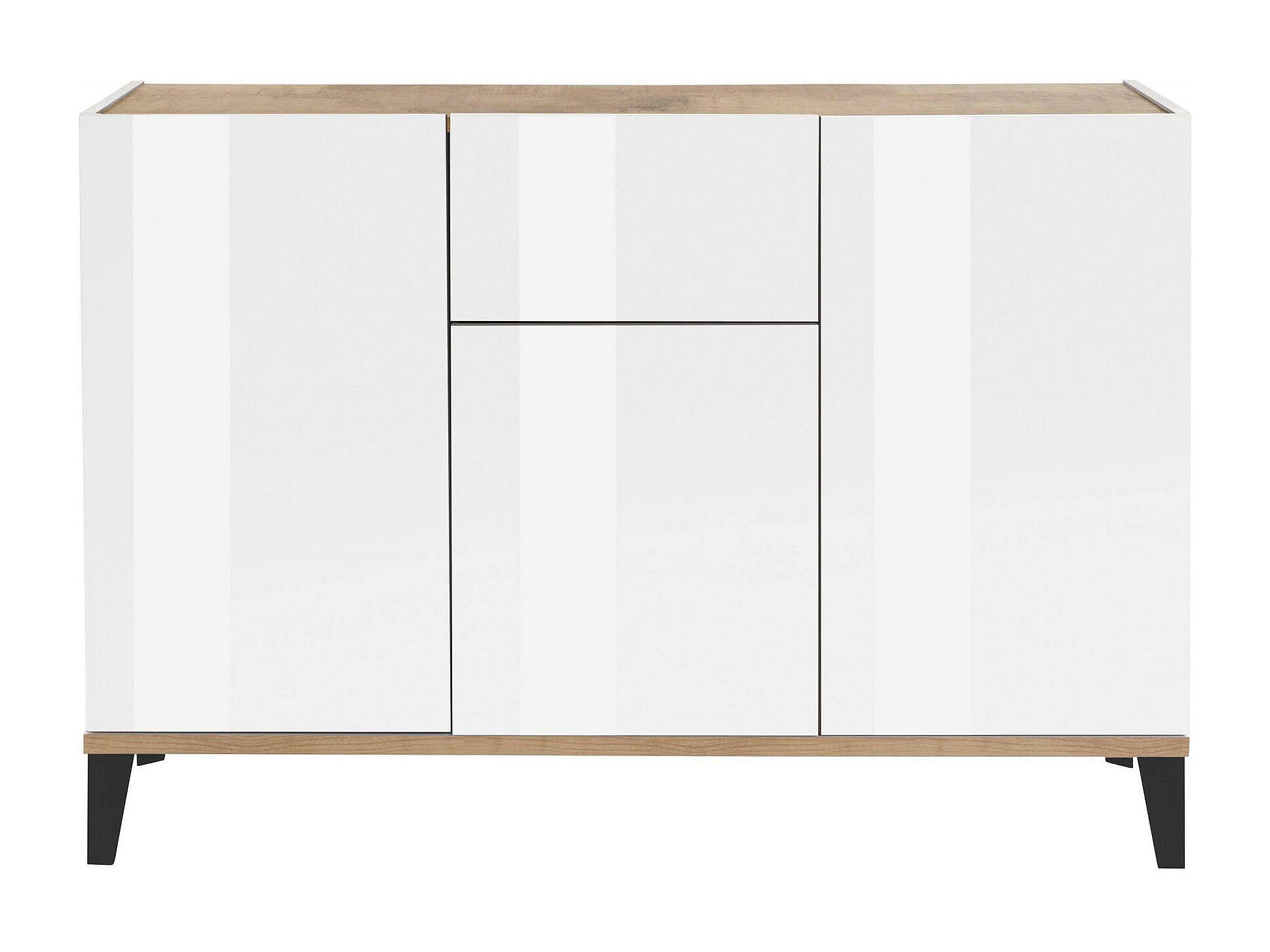 Ddybal Dressoir, Keukendressoir met 3 deuren en 1 lade, Woonkamerbuffet, Keukendressoir, 100% Made in Italy, 120x40h82 cm, Glanzend wit en esdoorn