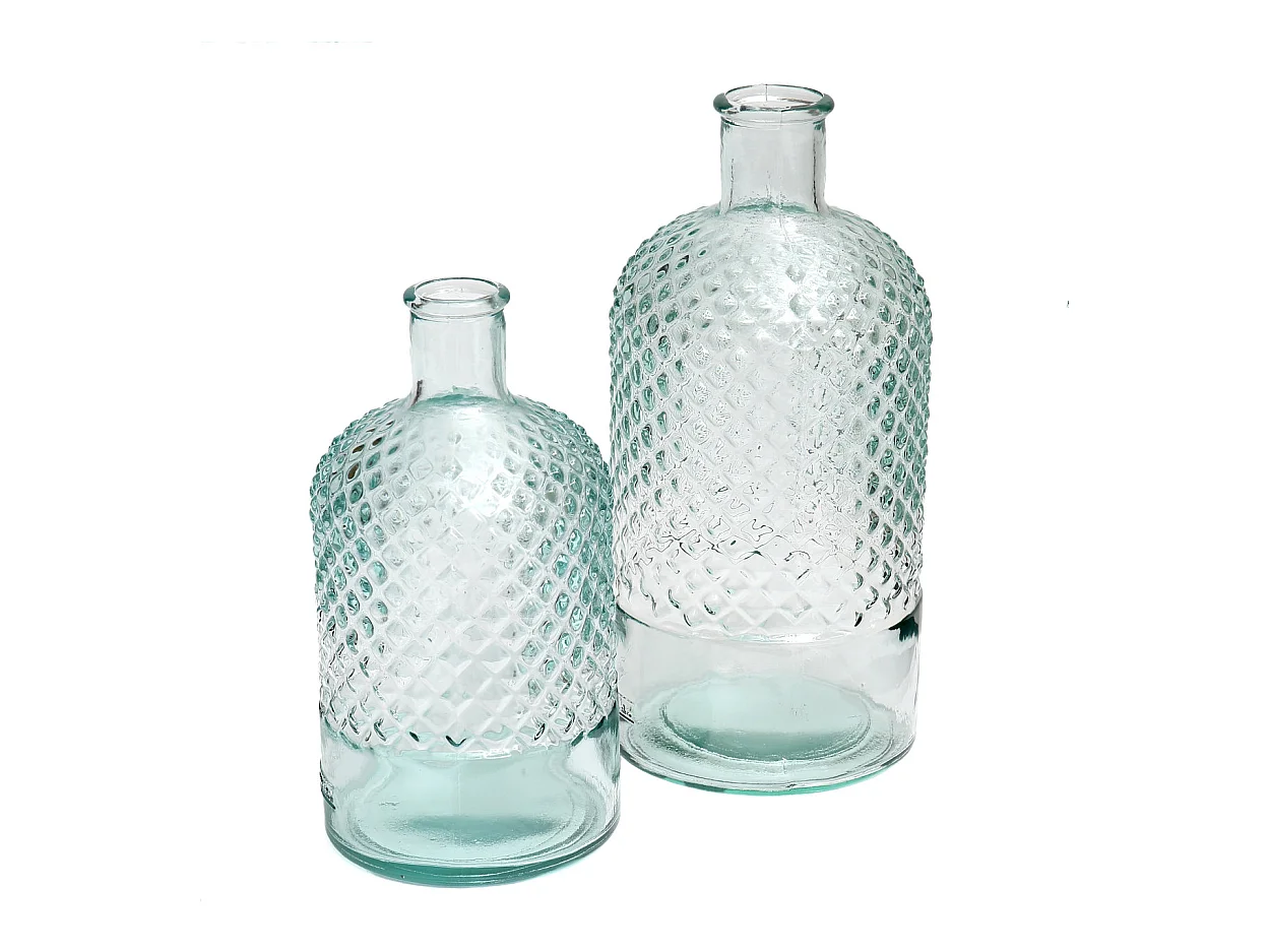 Kan van handgeblazen glas transparant/blauw 1200 ml, Tube