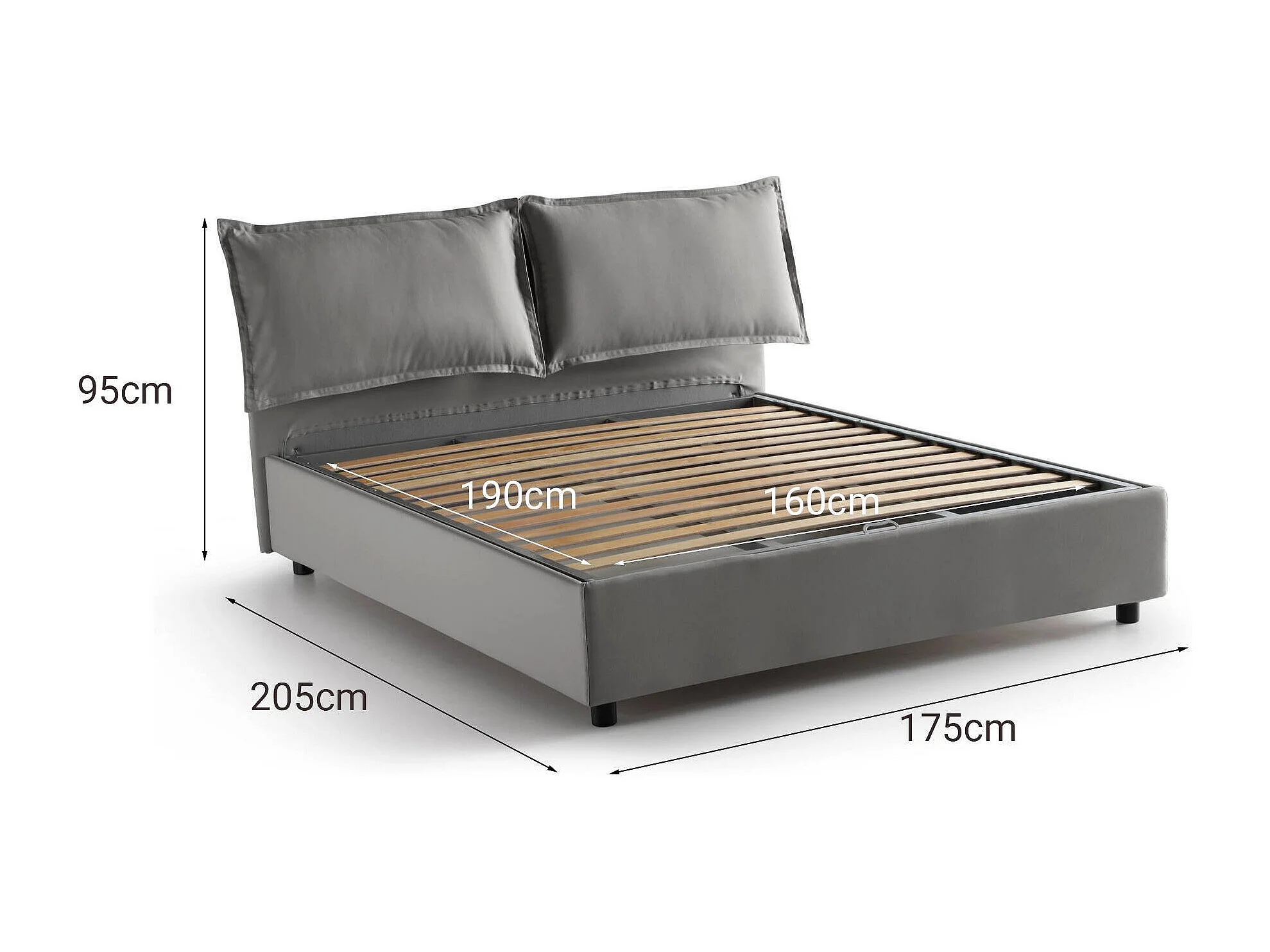 Talamo Italia Tweepersoonsbed Deborah Grijs, Afneembaar Covers, Opslag, Matrasmaat 160x190 cm Made in Italy