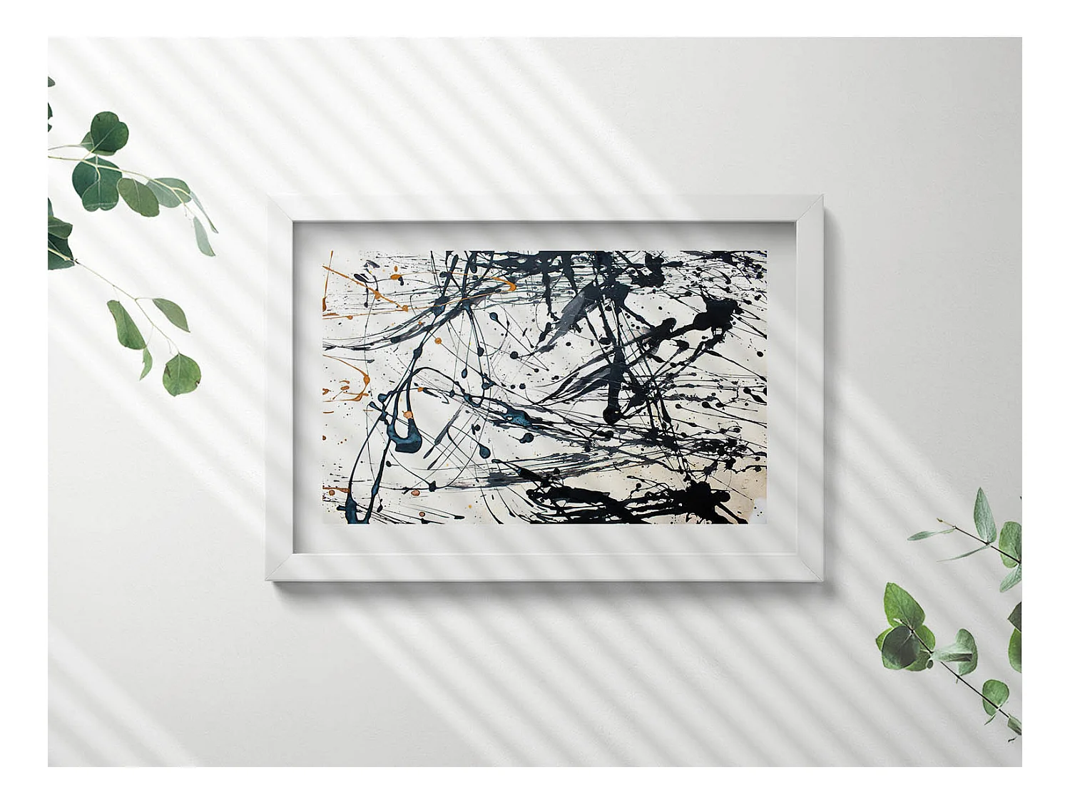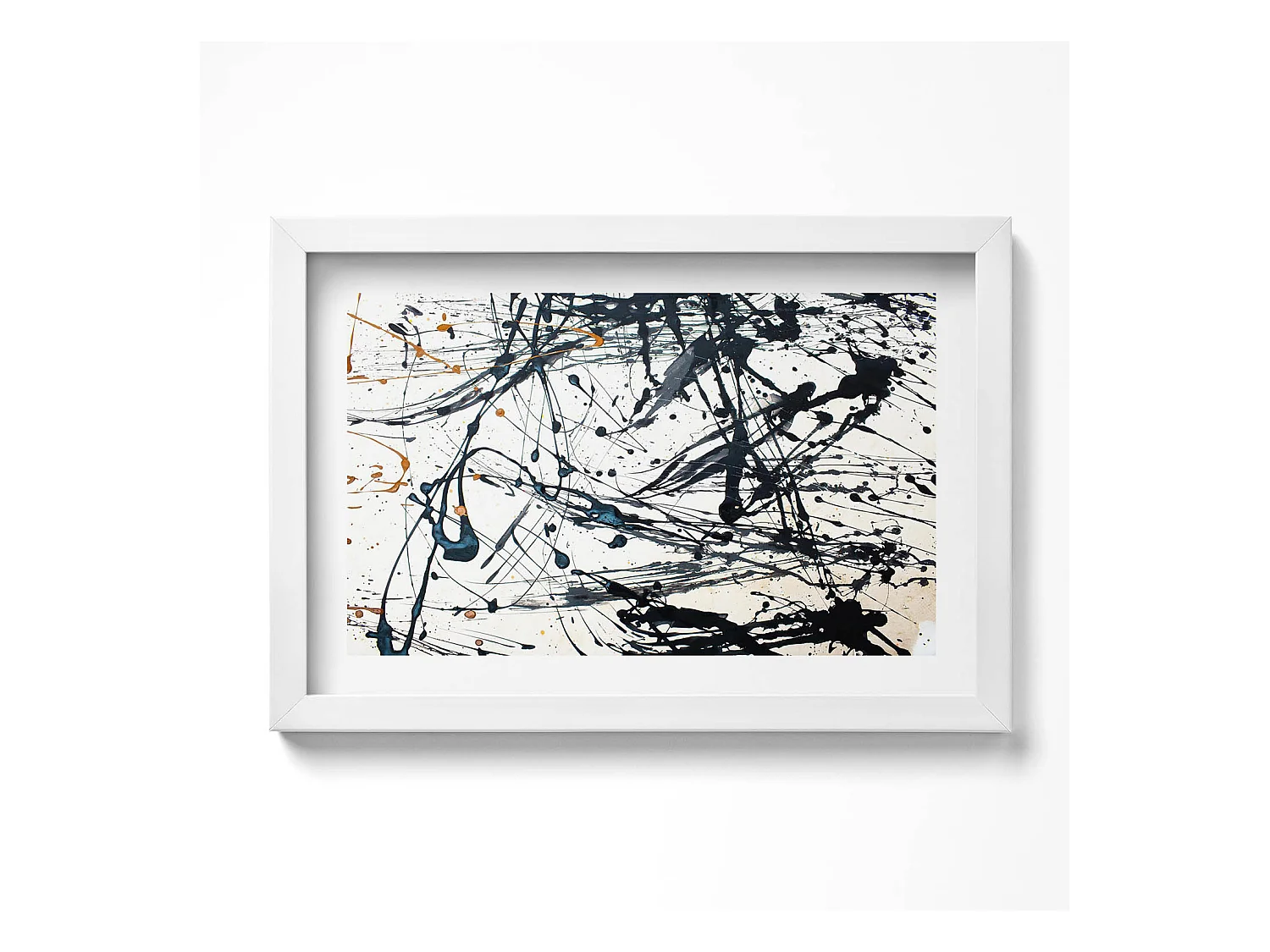 Decoratief schilderij met zwarte lijst, minimalistische abstractie met gouden details 30 x 20 cm - Perfect voor de woon- of slaapkamer