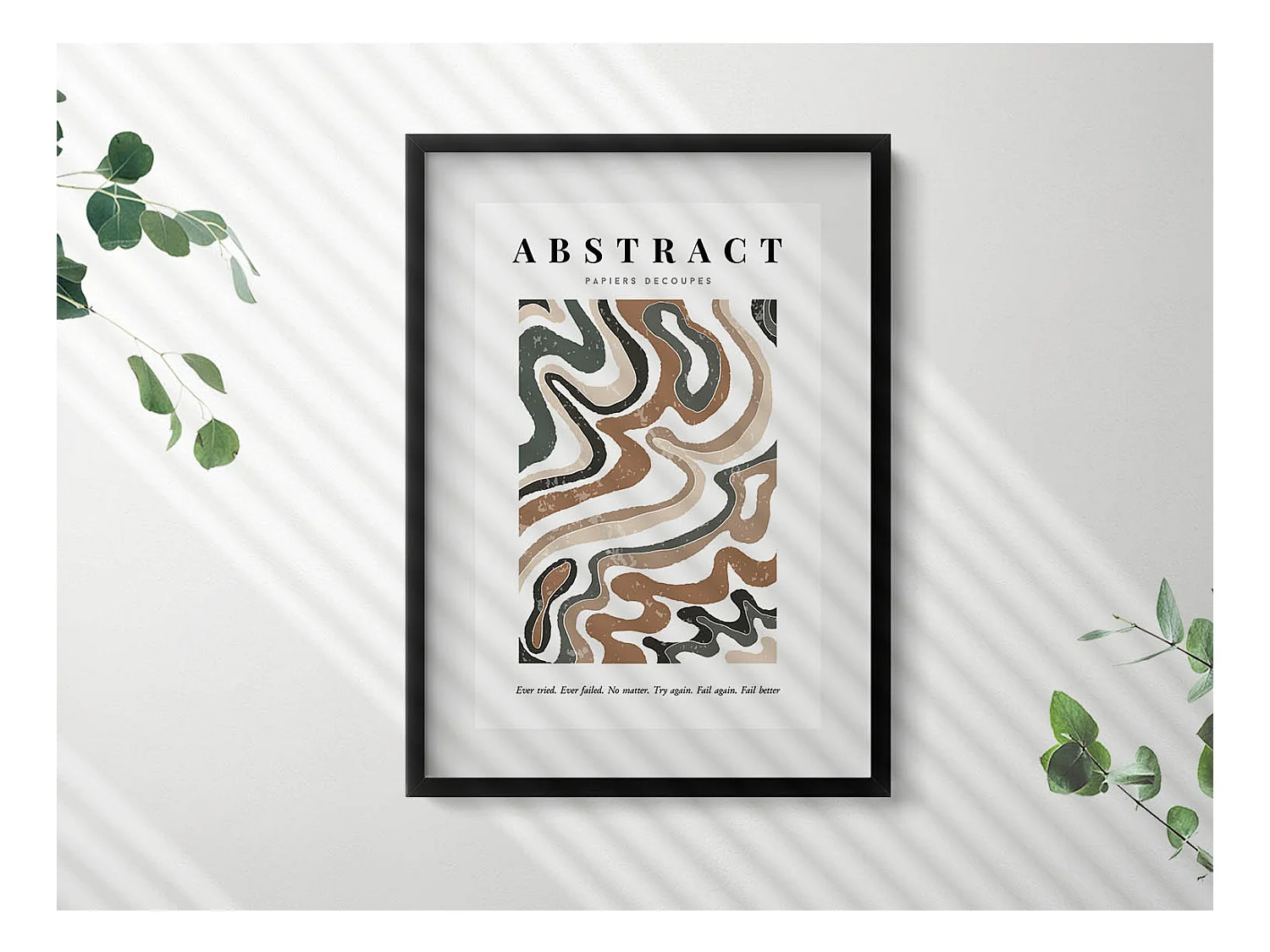 Decoratief schilderij met zwarte lijst, abstracte bohemien compositie 50 x 70 cm – Perfect voor de woon- of slaapkamer