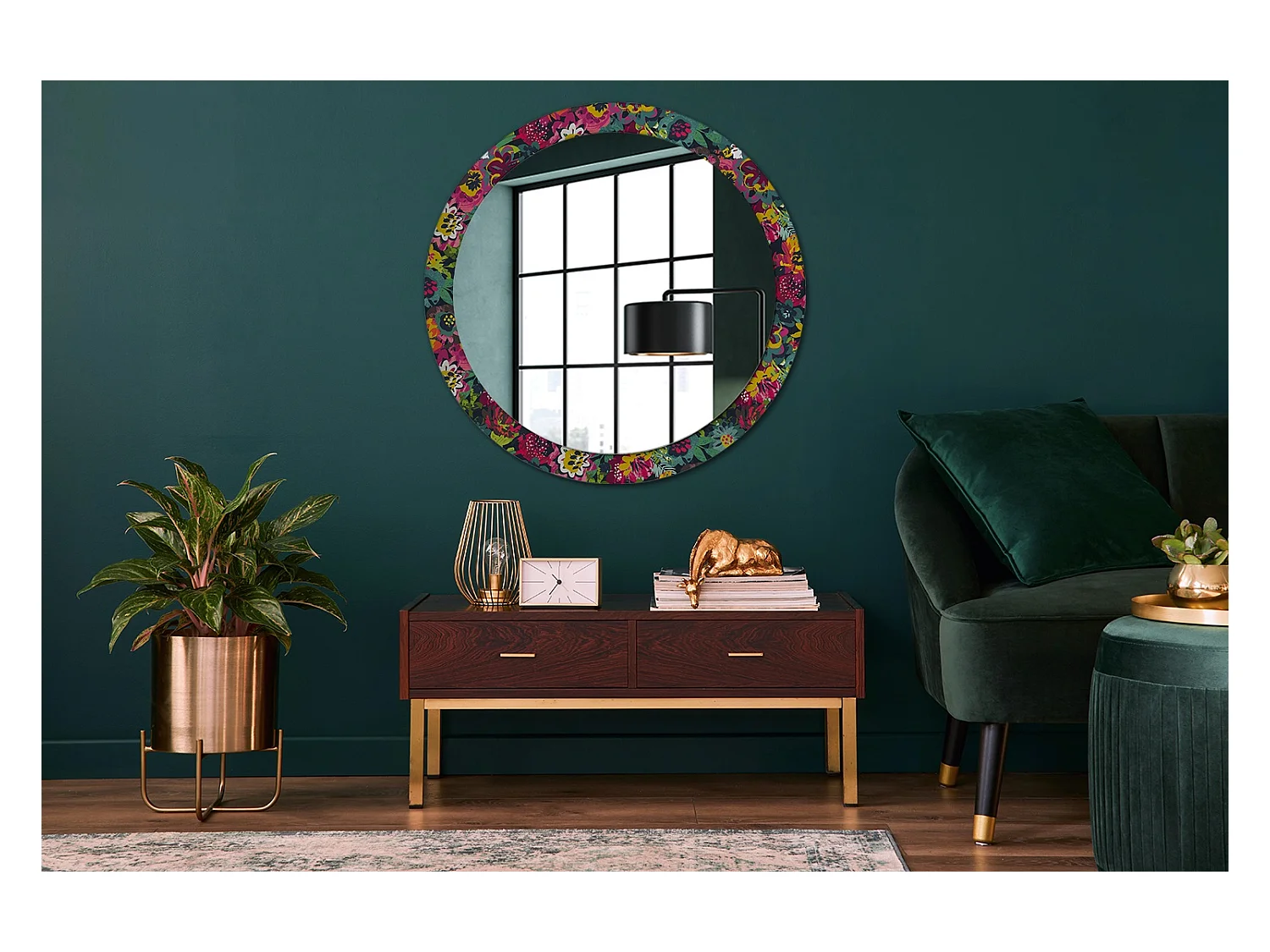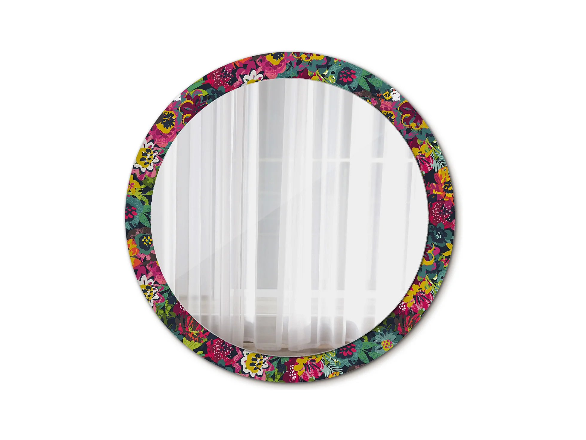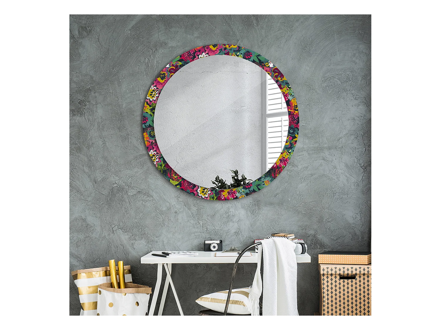 Decoratieve ronde spiegel - Geschilderde bloemen - 90 cm
