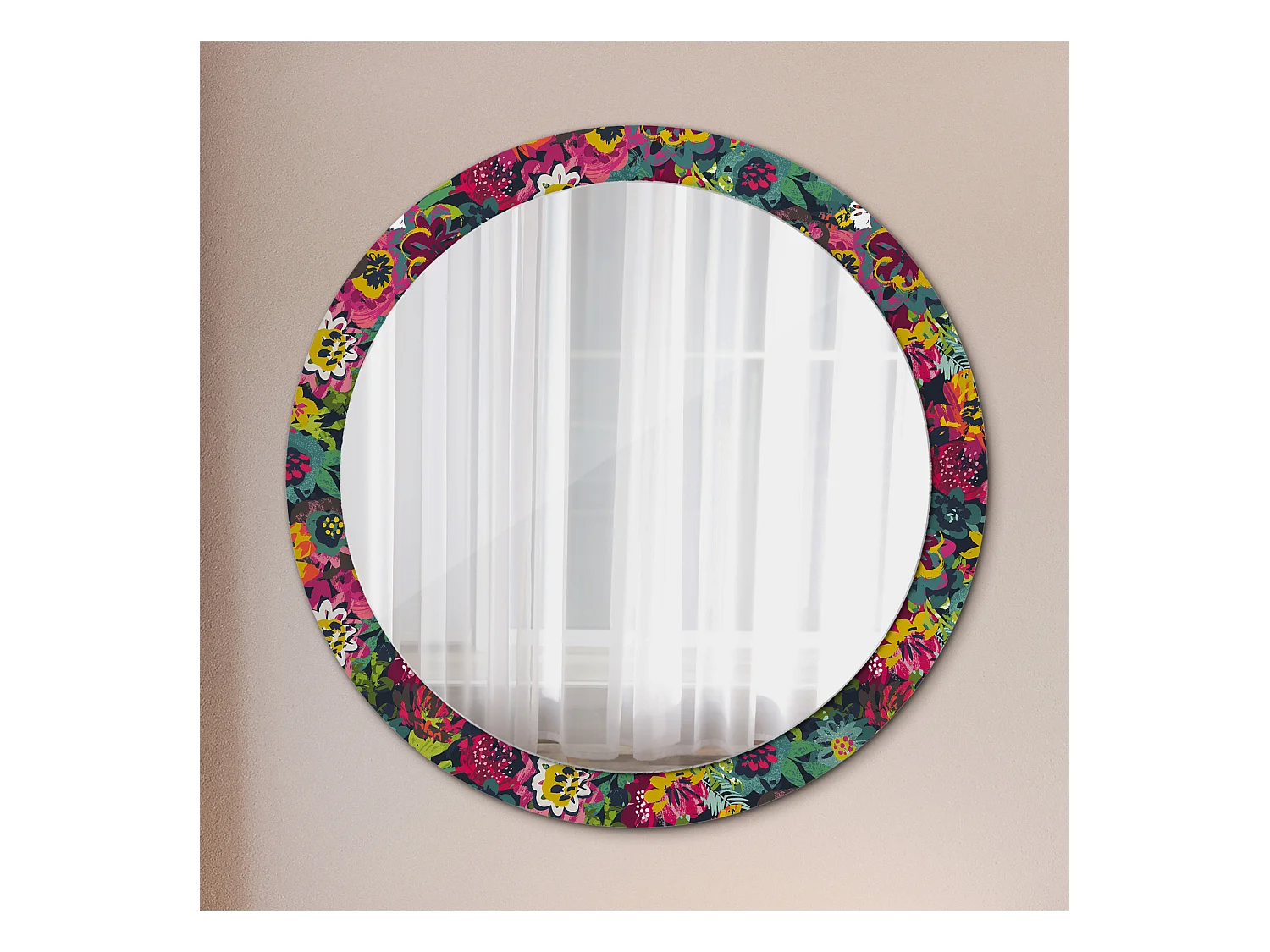 Decoratieve ronde spiegel - bloemige compositie - 90 cm