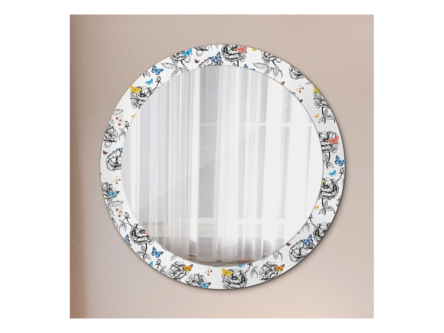 Decoratieve ronde spiegel - Kleurrijke vlinders - 80 cm