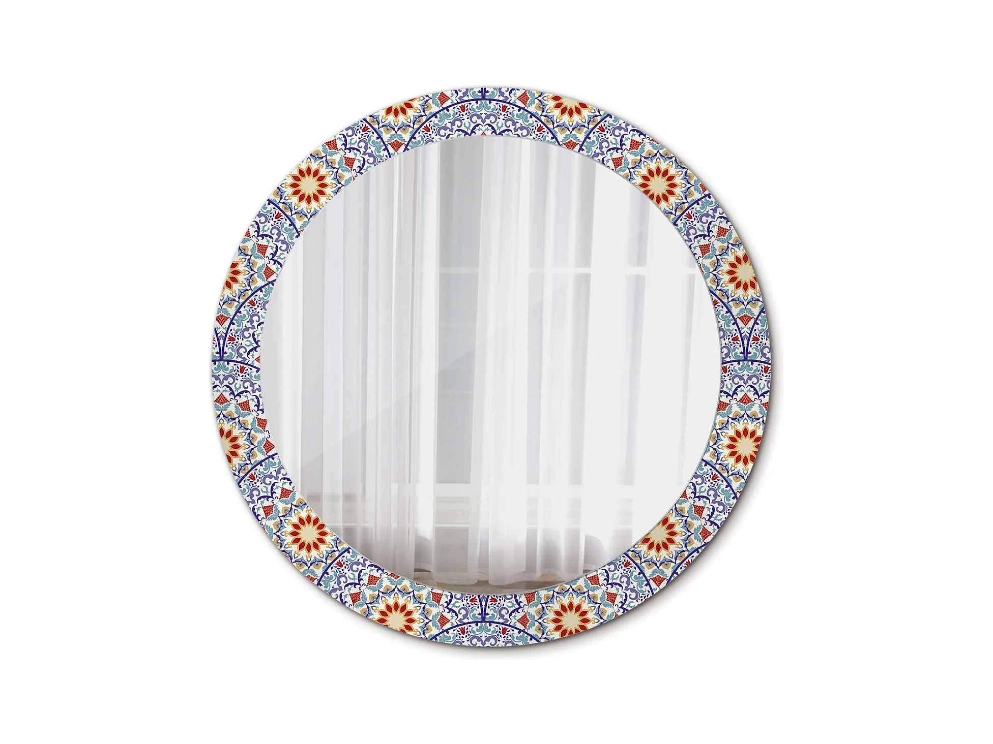 Decoratieve ronde spiegel - Blauwe bloemen - 80 cm