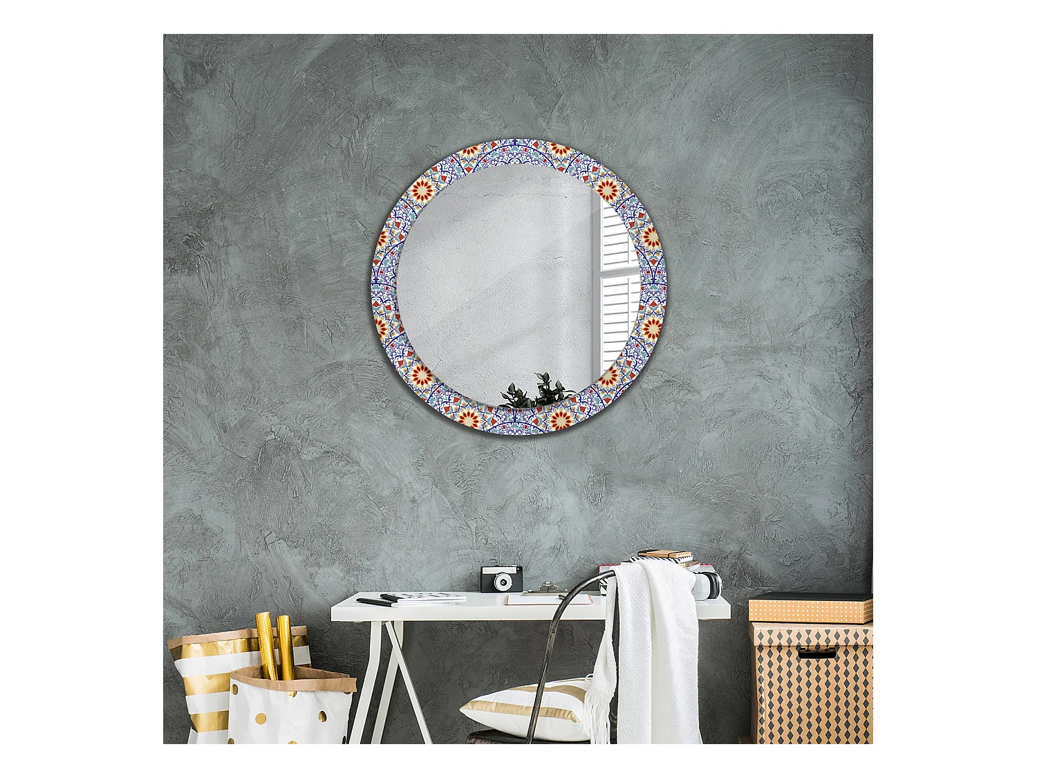 Ronde decoratieve spiegel - Geometrisch patroon - 80 cm