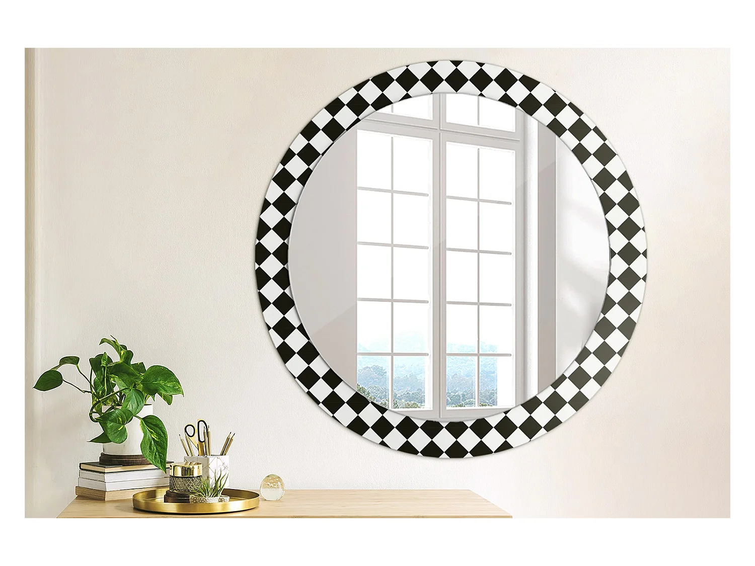 Decoratieve ronde spiegel – schaaktafel – 80 cm