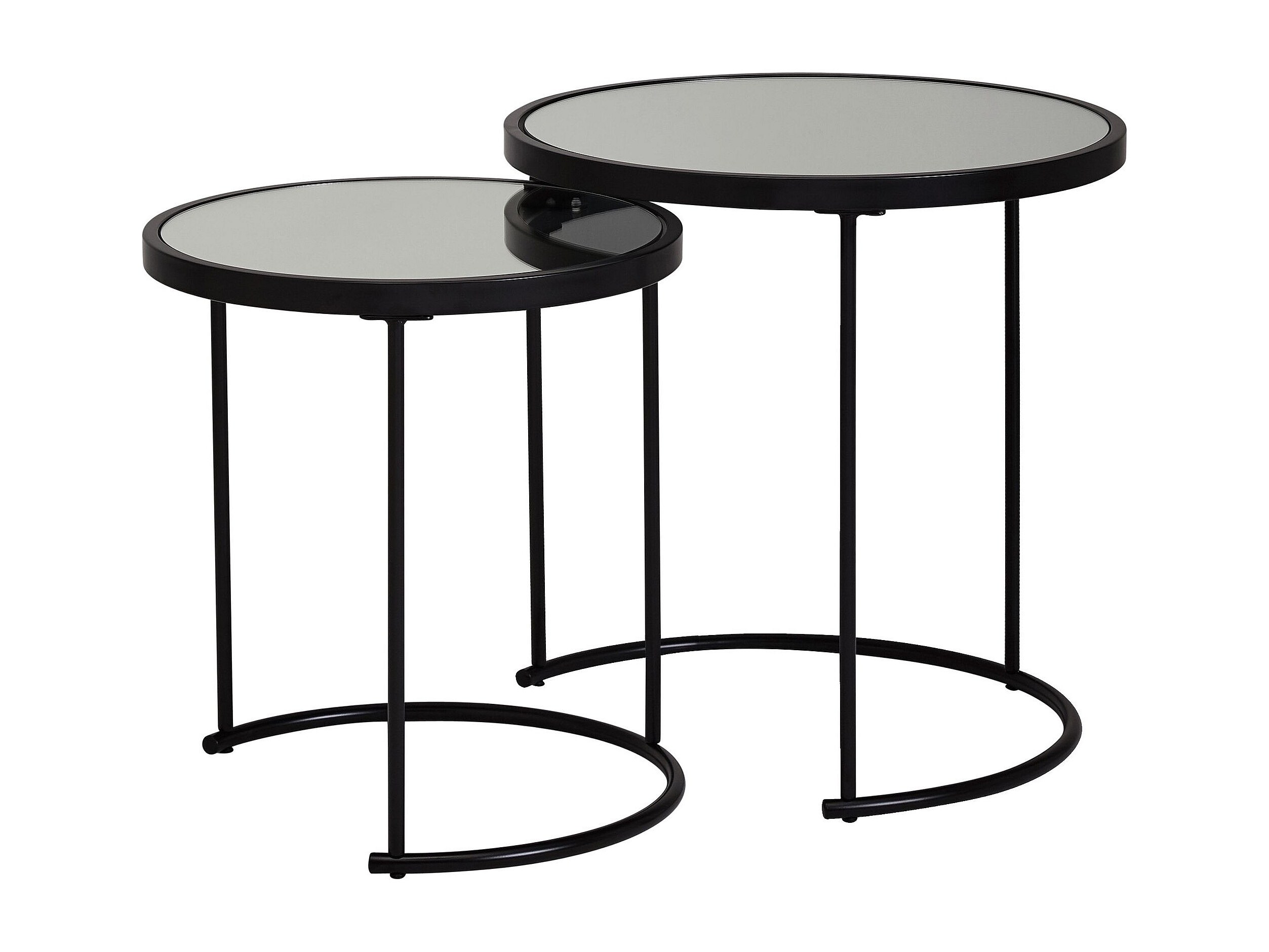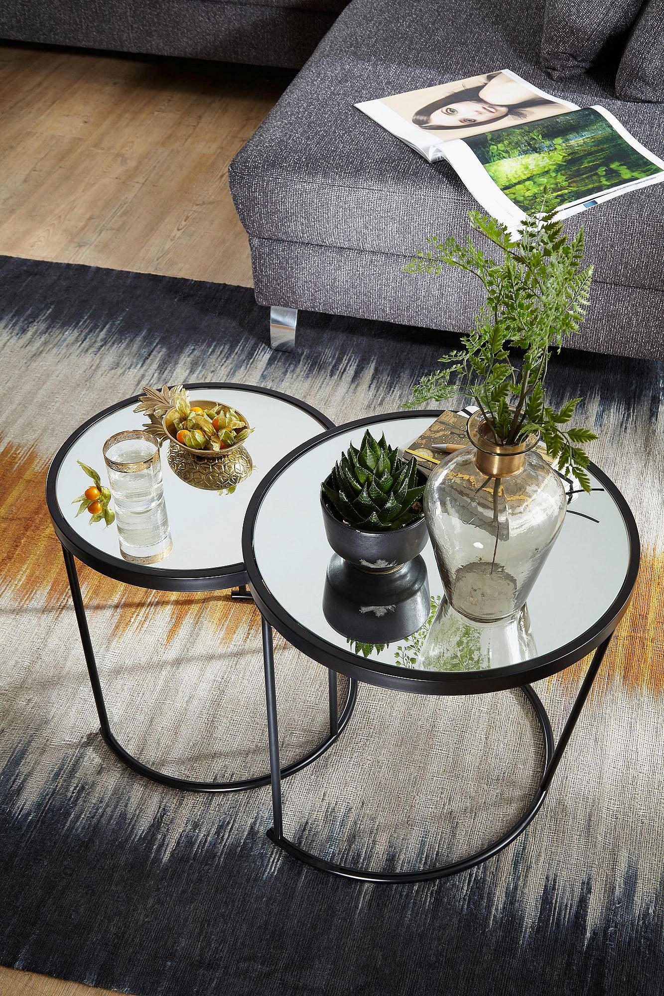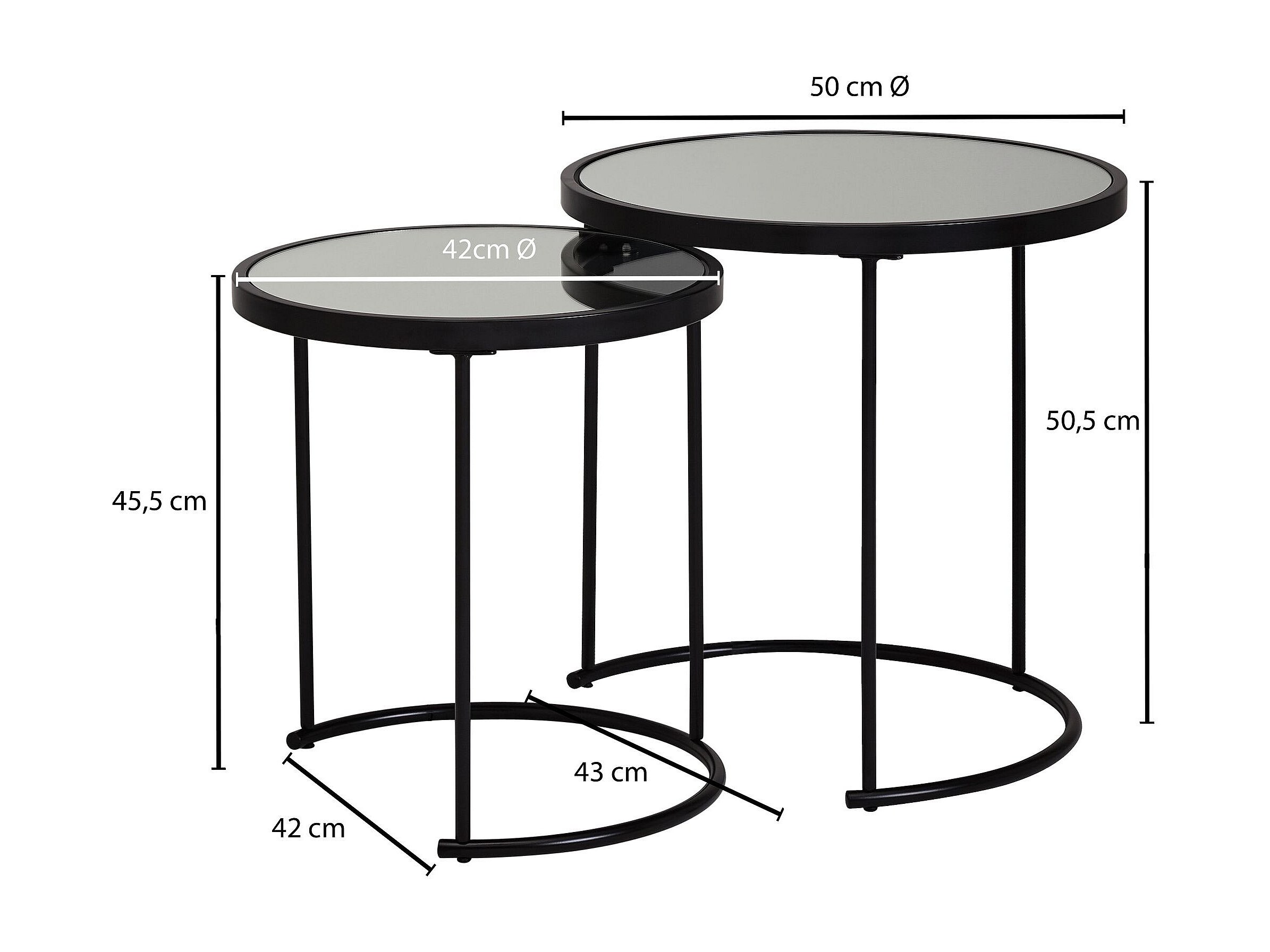 design bijzettafel rond Ø 50/42 cm - 2 stuks zwart met spiegelglas | Salontafel set van 2 | Bijzettafel gespiegelde salontafel