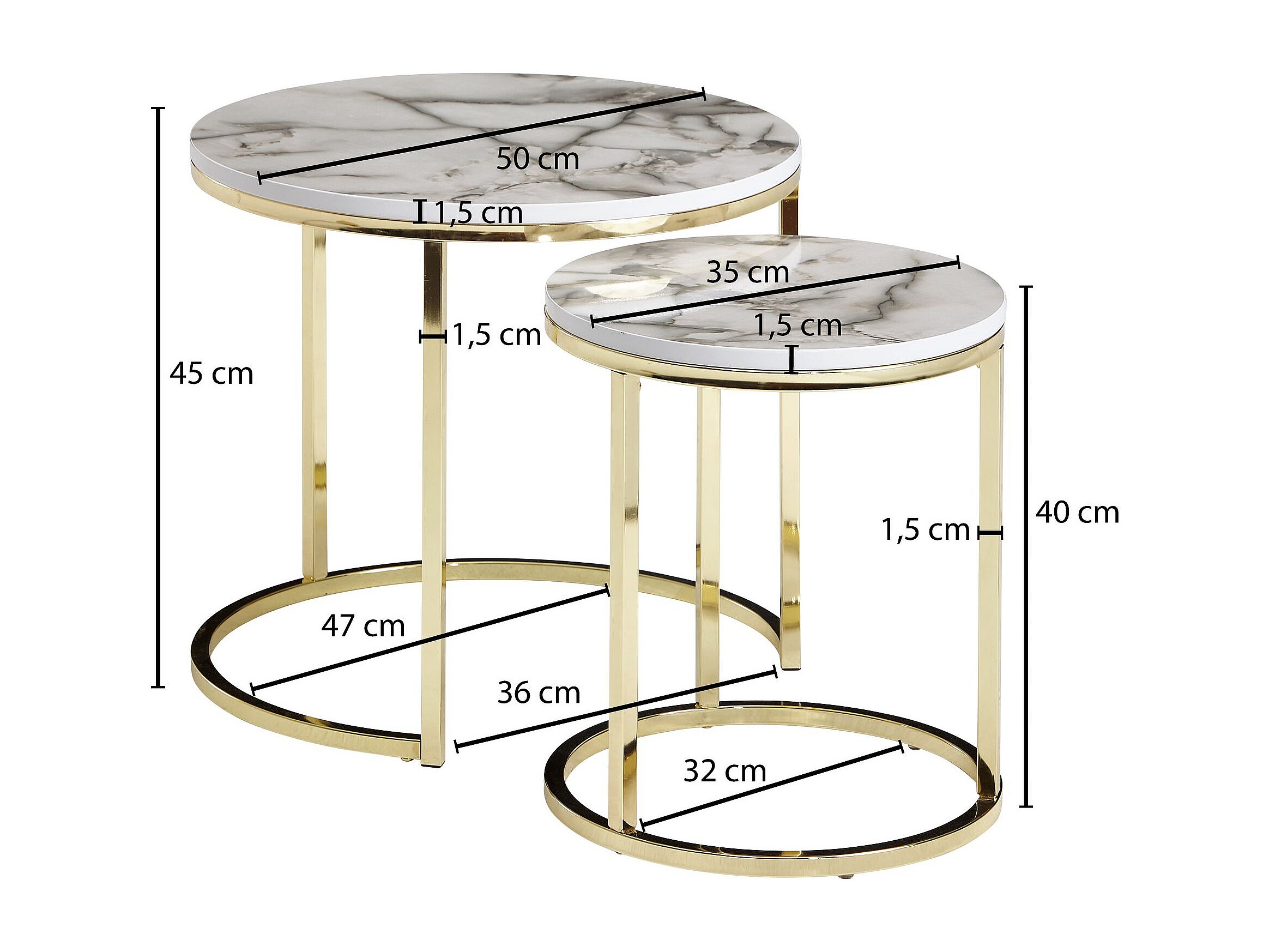design bijzettafel set van 2 wit marmer look rond | Salontafel 2-delig tafelframe metaal goud | Kleine salontafels | Moderne nesttafels