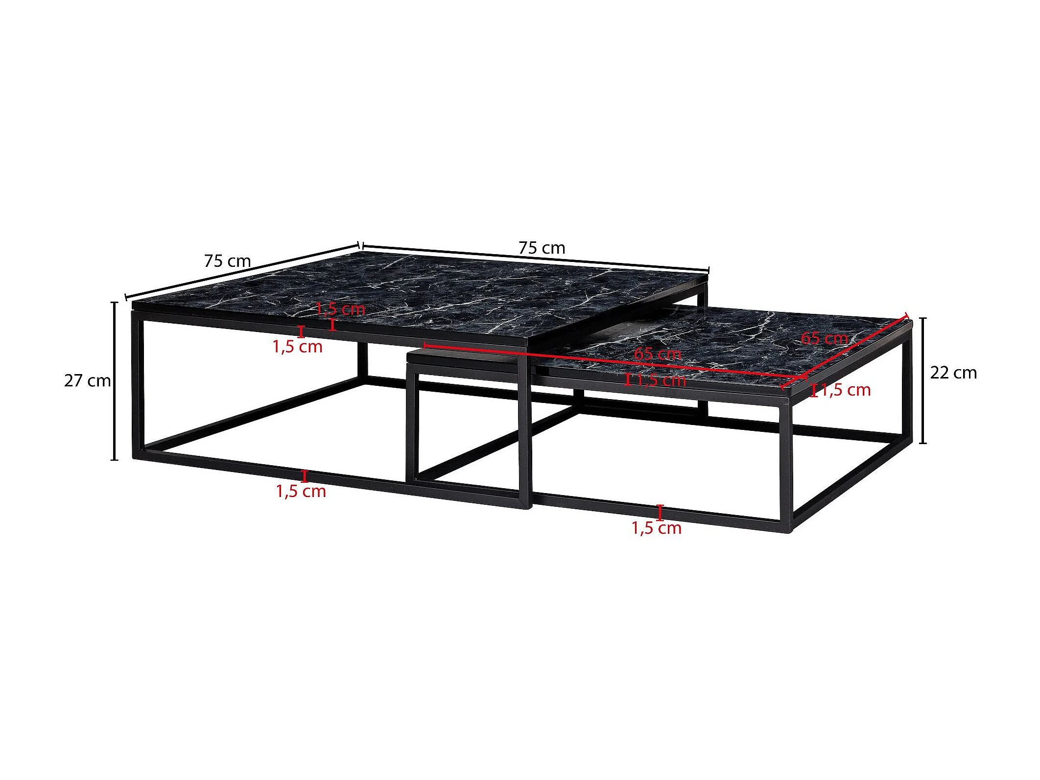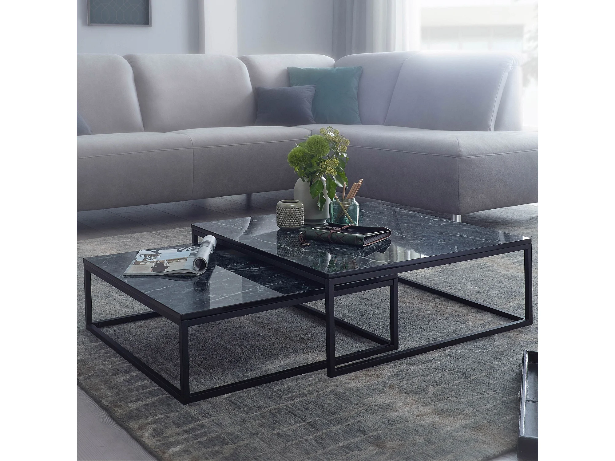 Design Set van 2 zwart marmer optiek hoekig | Salontafels 2-delig metalen frame | Edele salontafels | Moderne nesttafels