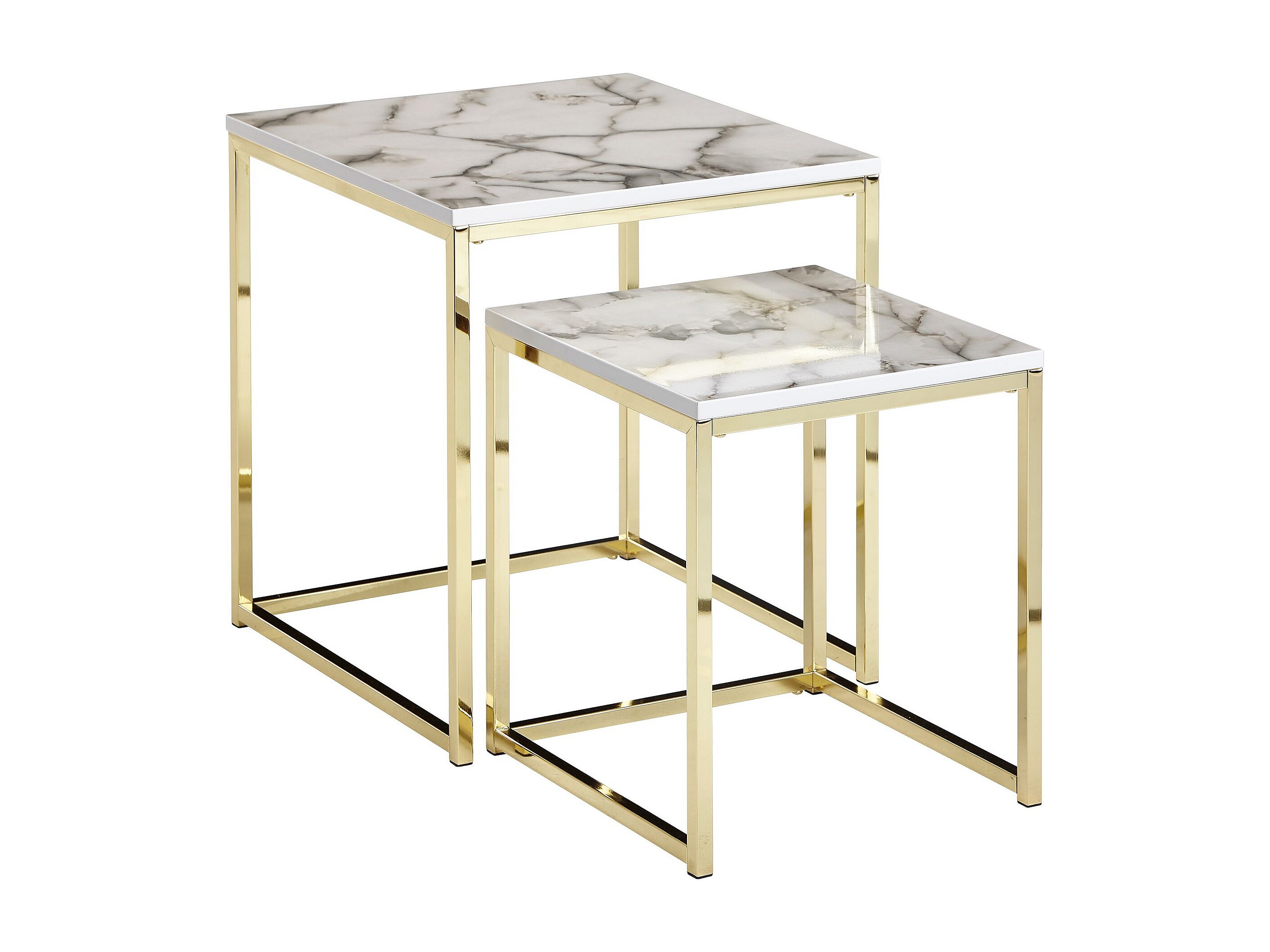 Design Side Set van 2 witte marmer optiek hoekig | Salontafel 2-delig tafelframe metaal goud | Kleine salontafels | Moderne vierkante bijzettafels