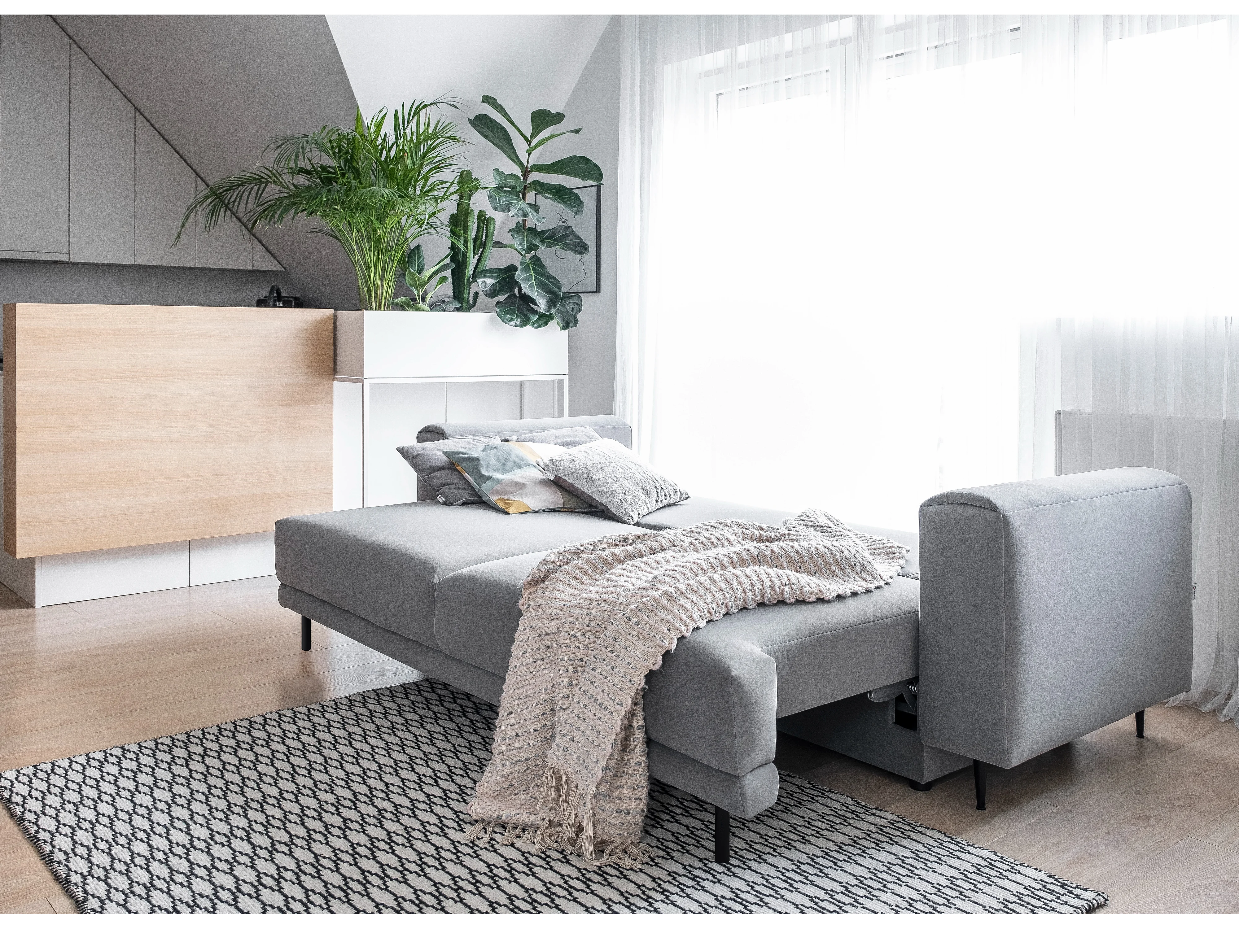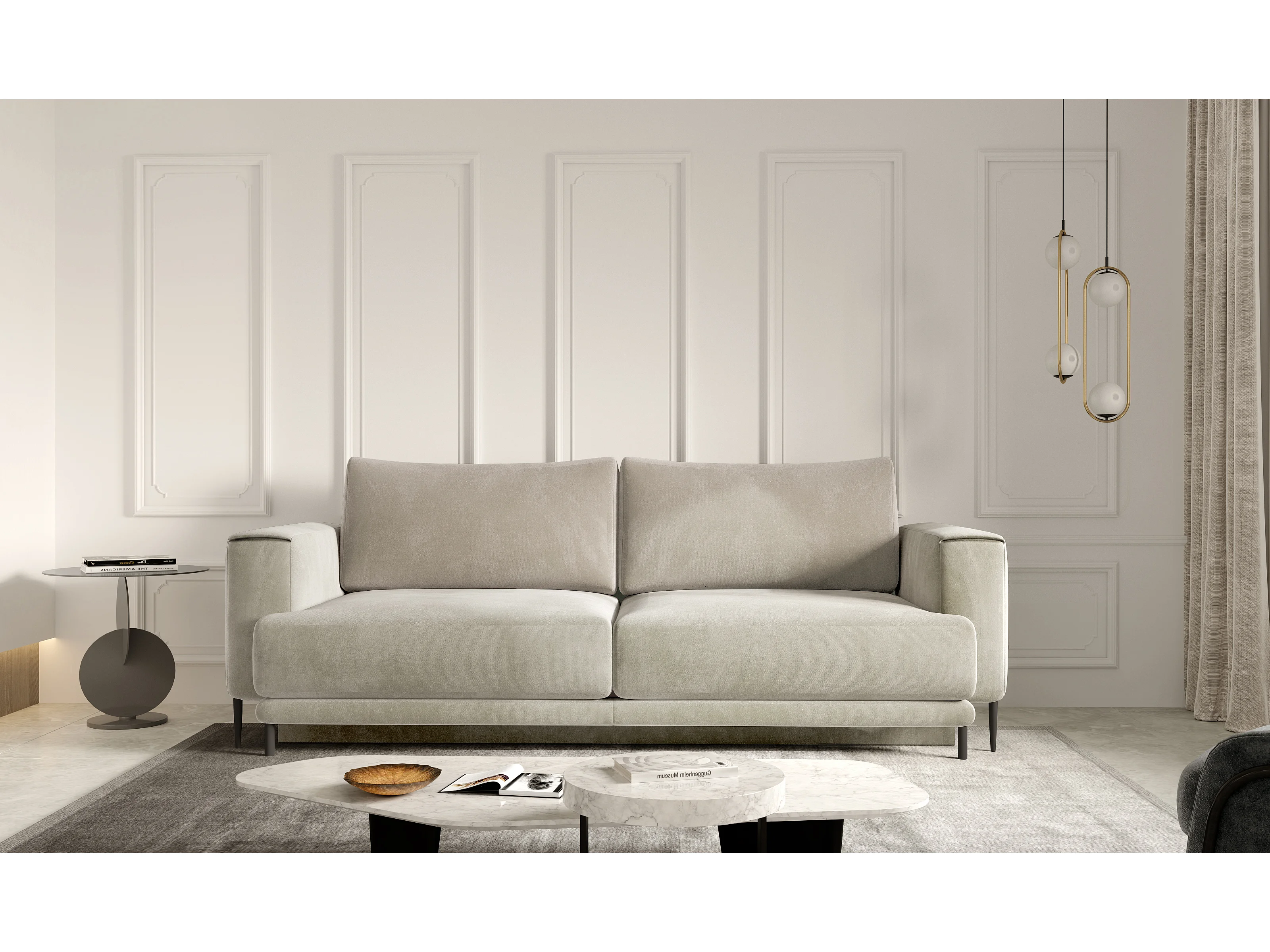 Designer 4-zits slaapbank in beige fluweel en zwarte metalen poten Arkia 260 cm