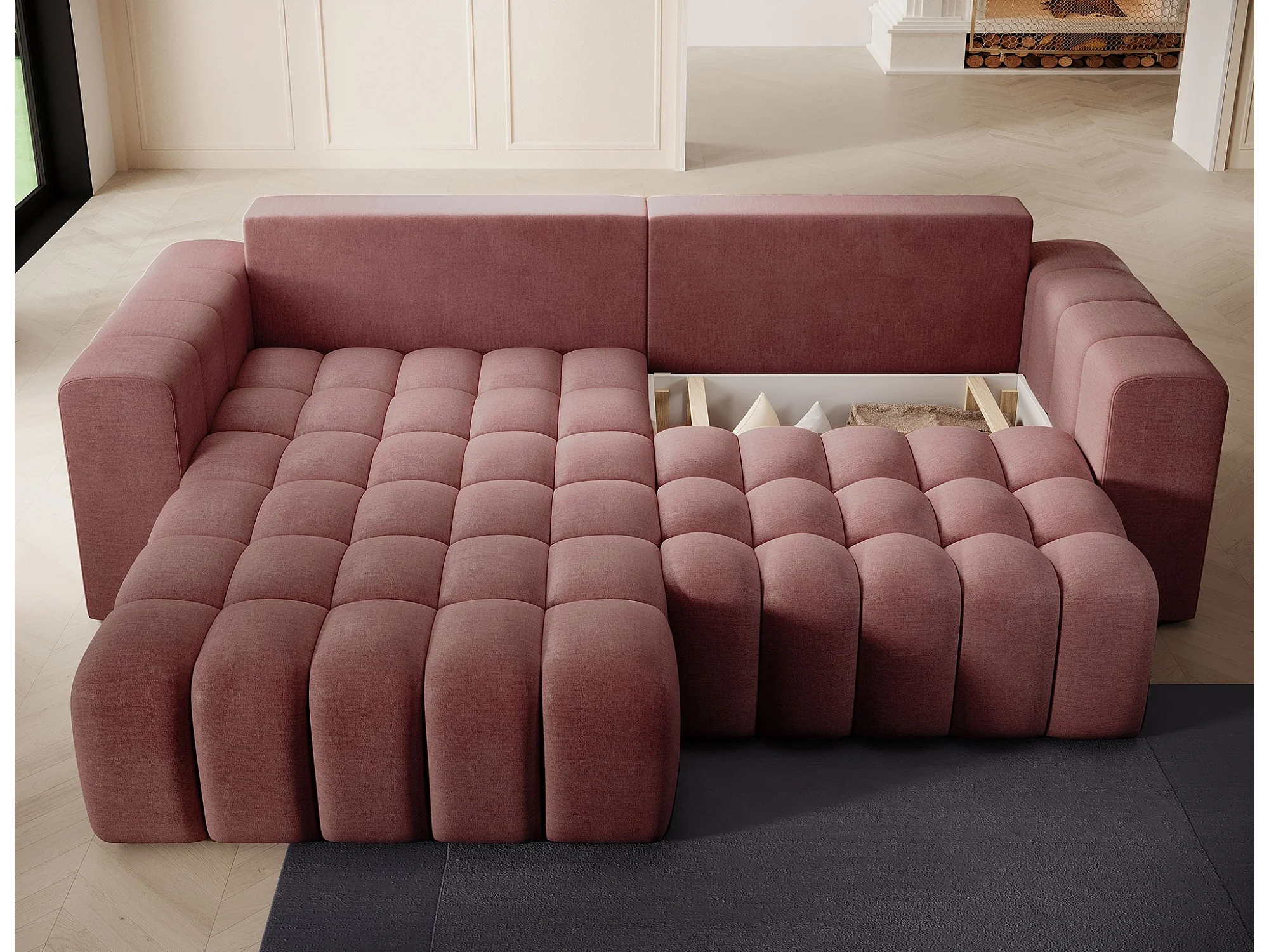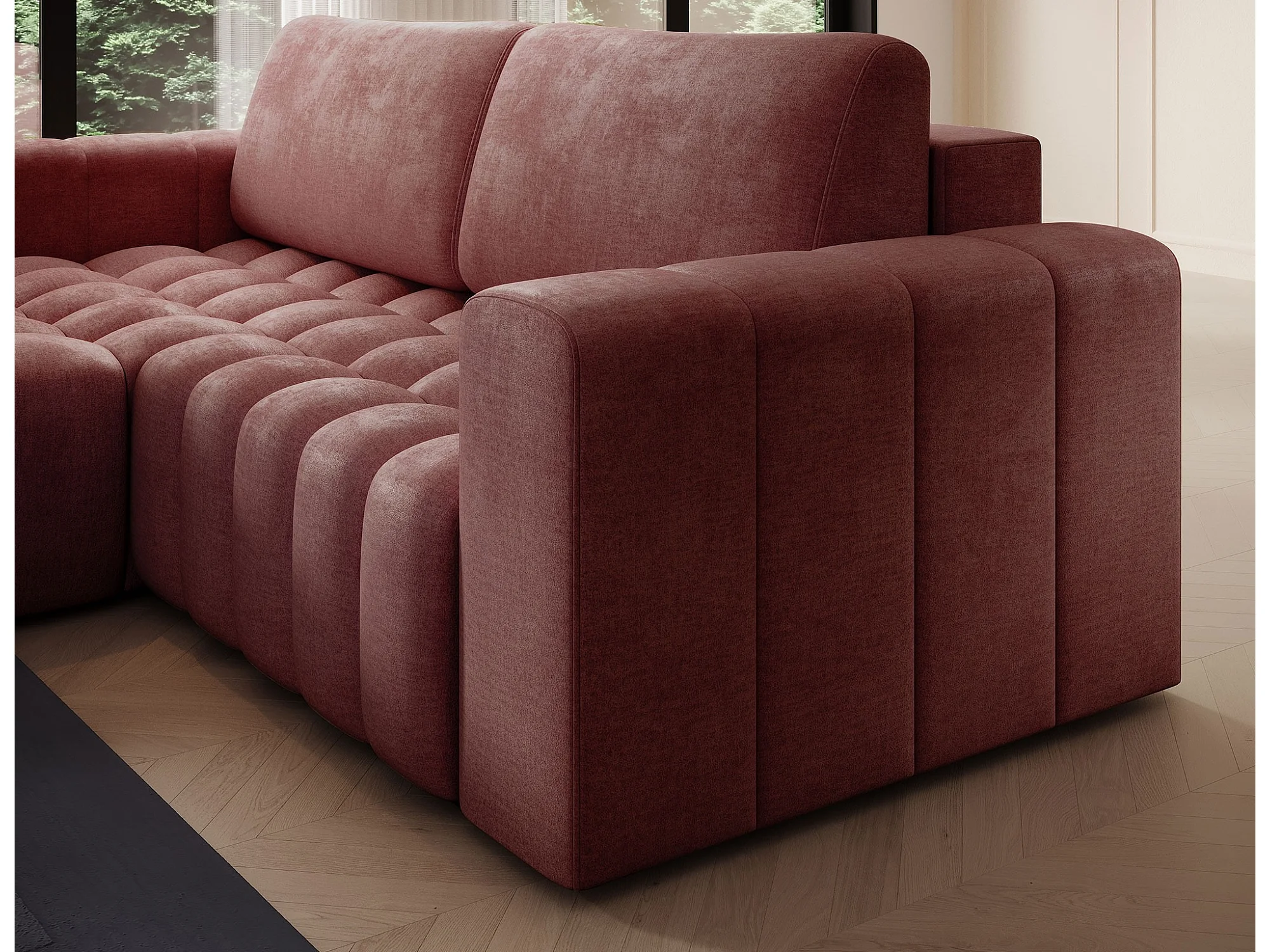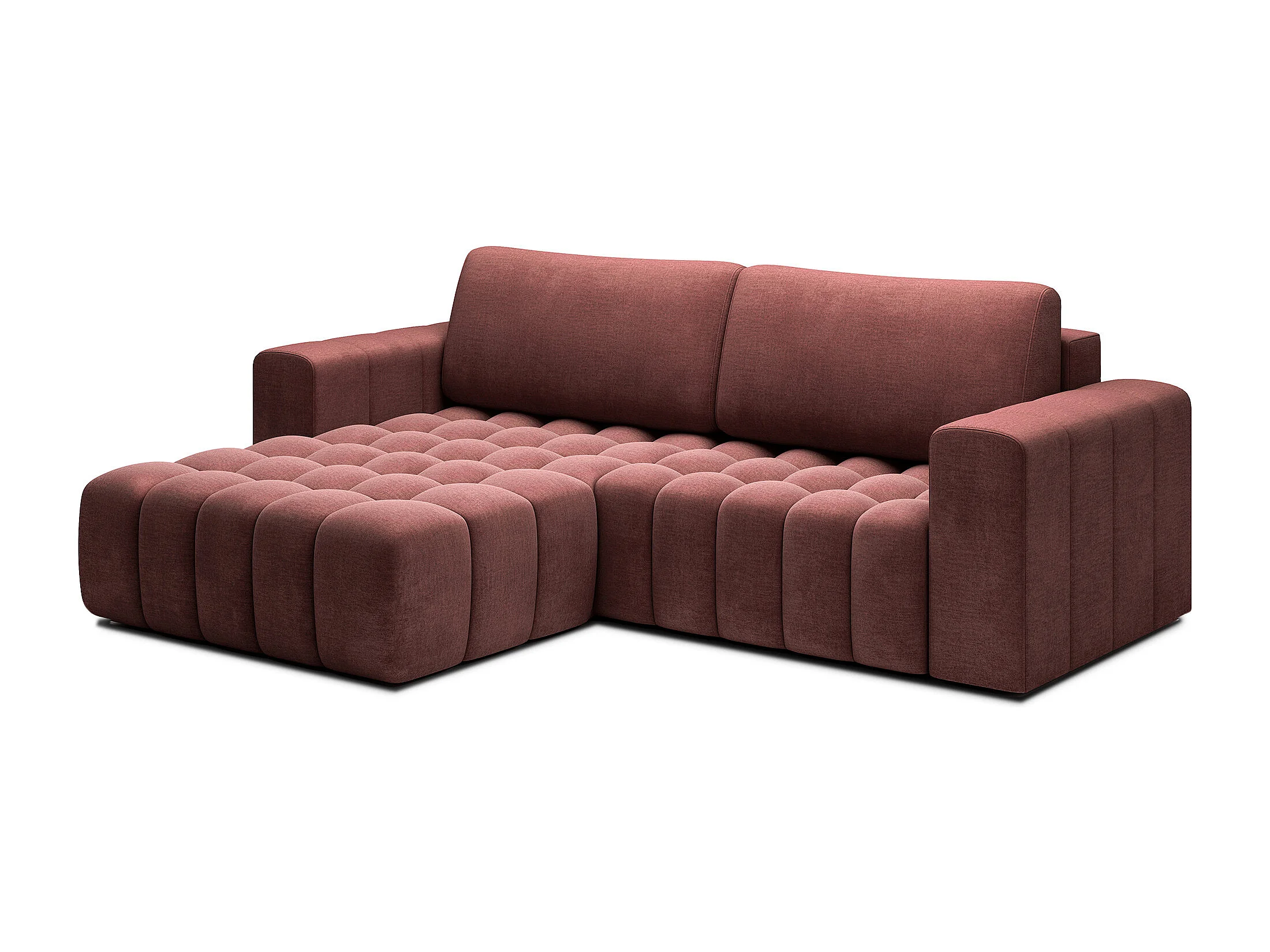 Bozen gecapitonneerde fluwelen hoekbank – Converteerbaar en opbergruimte-Kleur Terracotta-linkerhoek