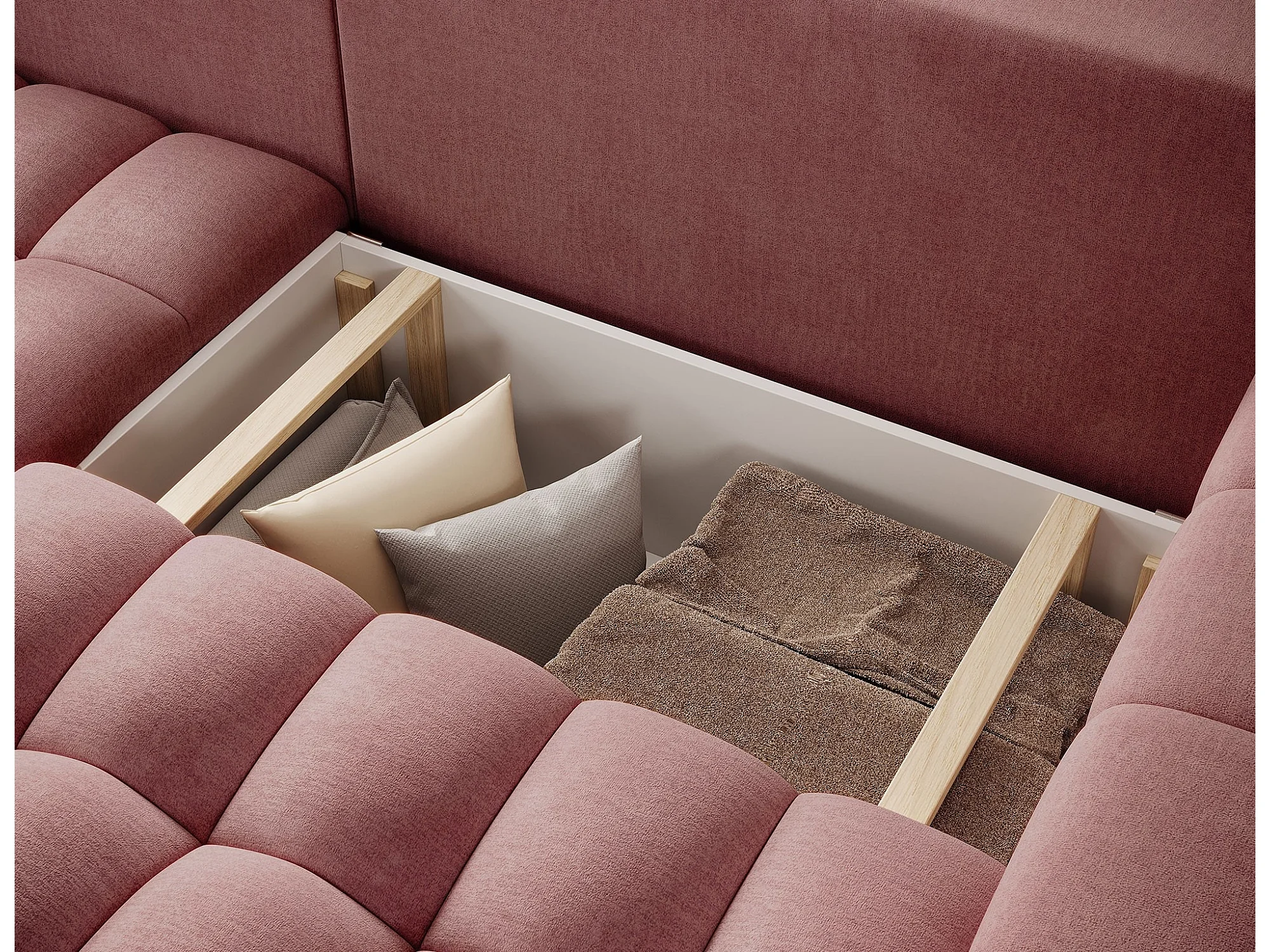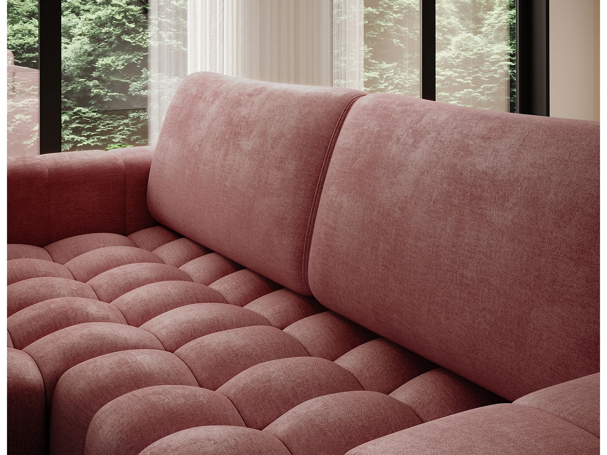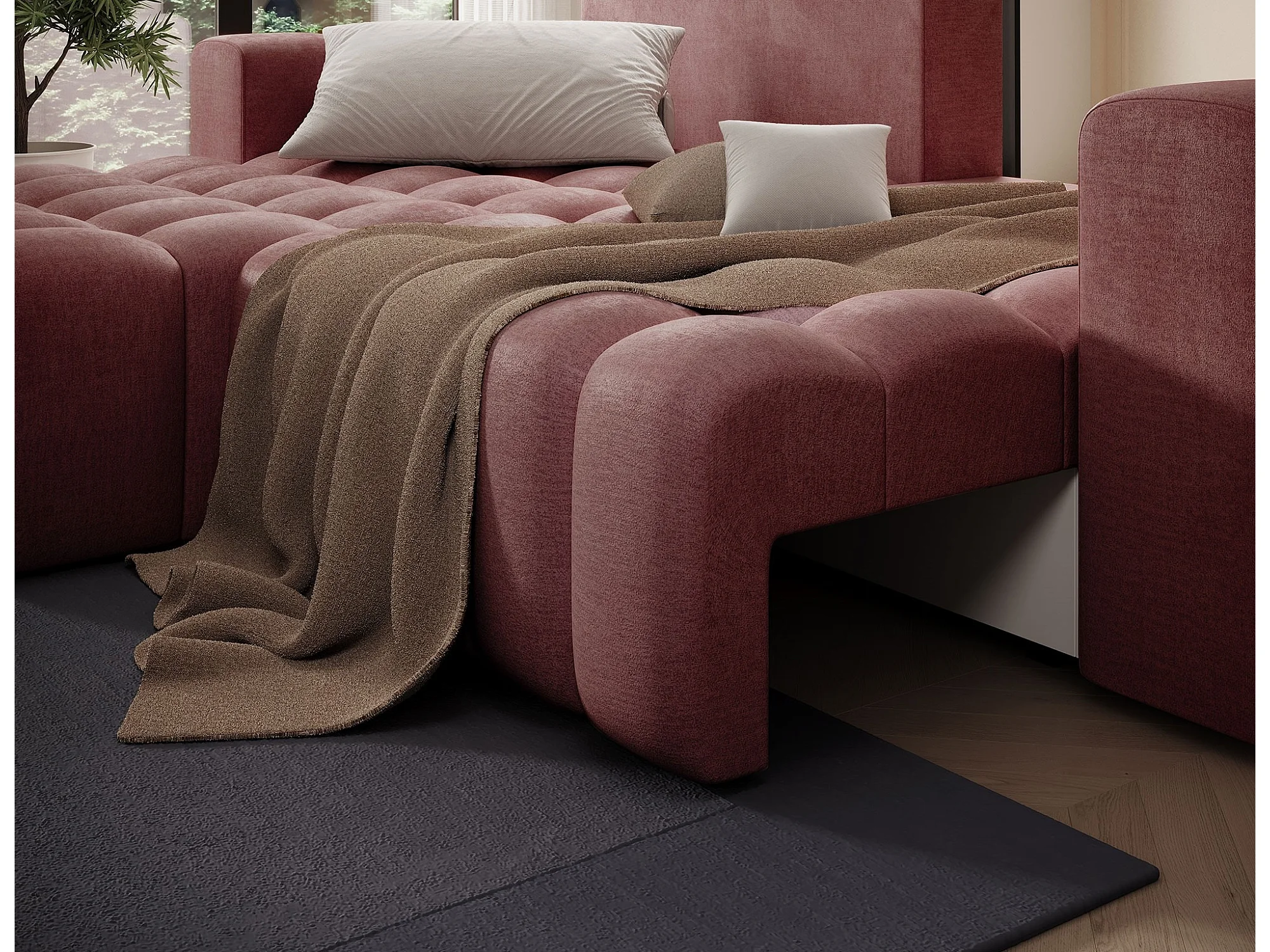Bozen gecapitonneerde fluwelen hoekbank – Converteerbaar en opbergruimte-Kleur Terracotta-linkerhoek