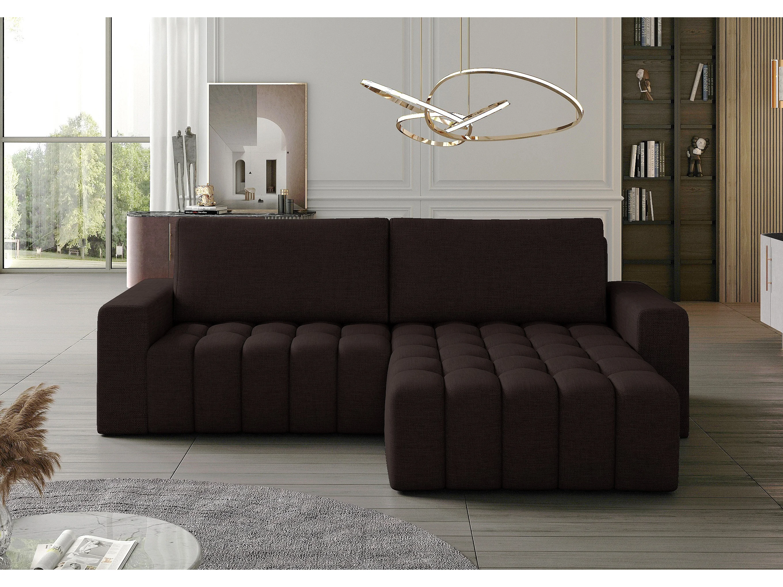 Bozen gewatteerde stoffen hoekbank – Converteerbaar en opbergruimte-Kleur Donker bruin-juiste hoek