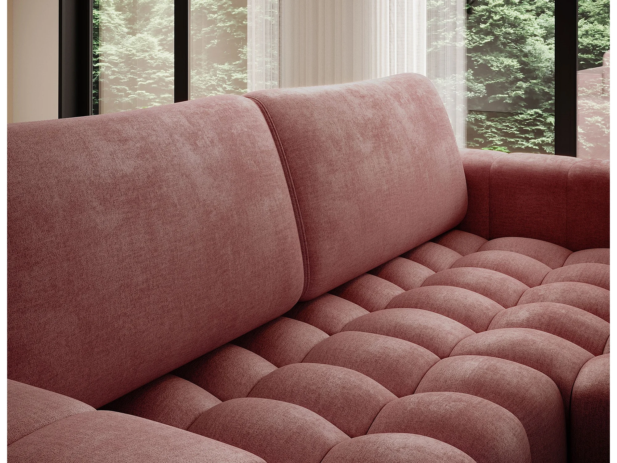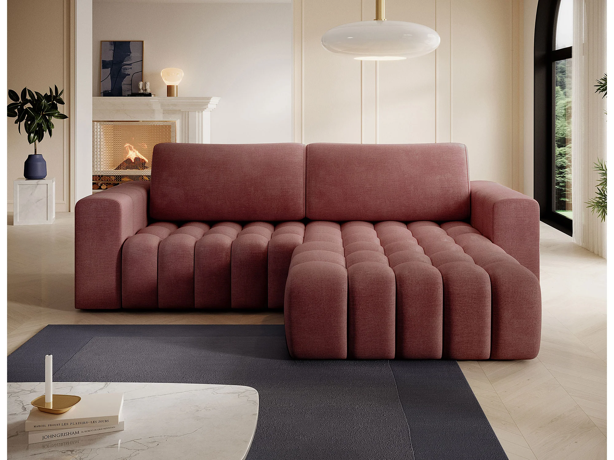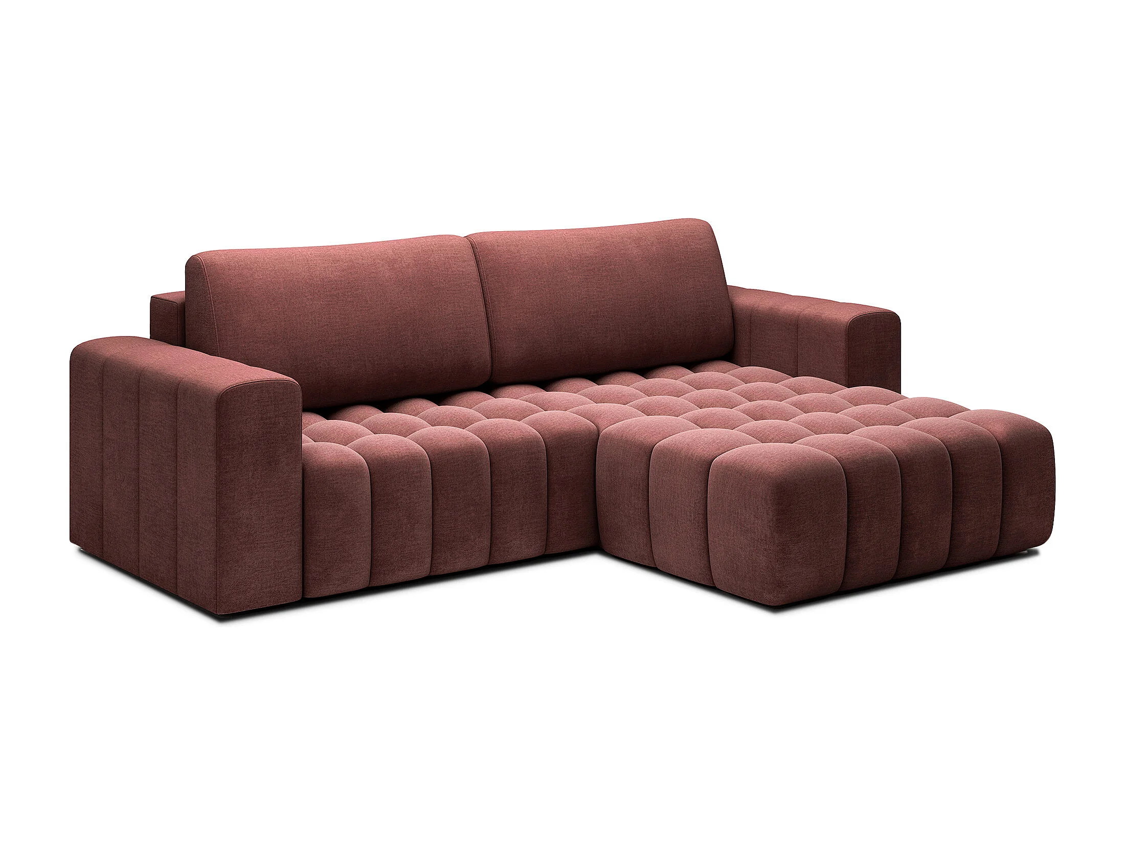Bozen gecapitonneerde fluwelen hoekbank – Converteerbaar en opbergruimte-Kleur Terracotta-juiste hoek