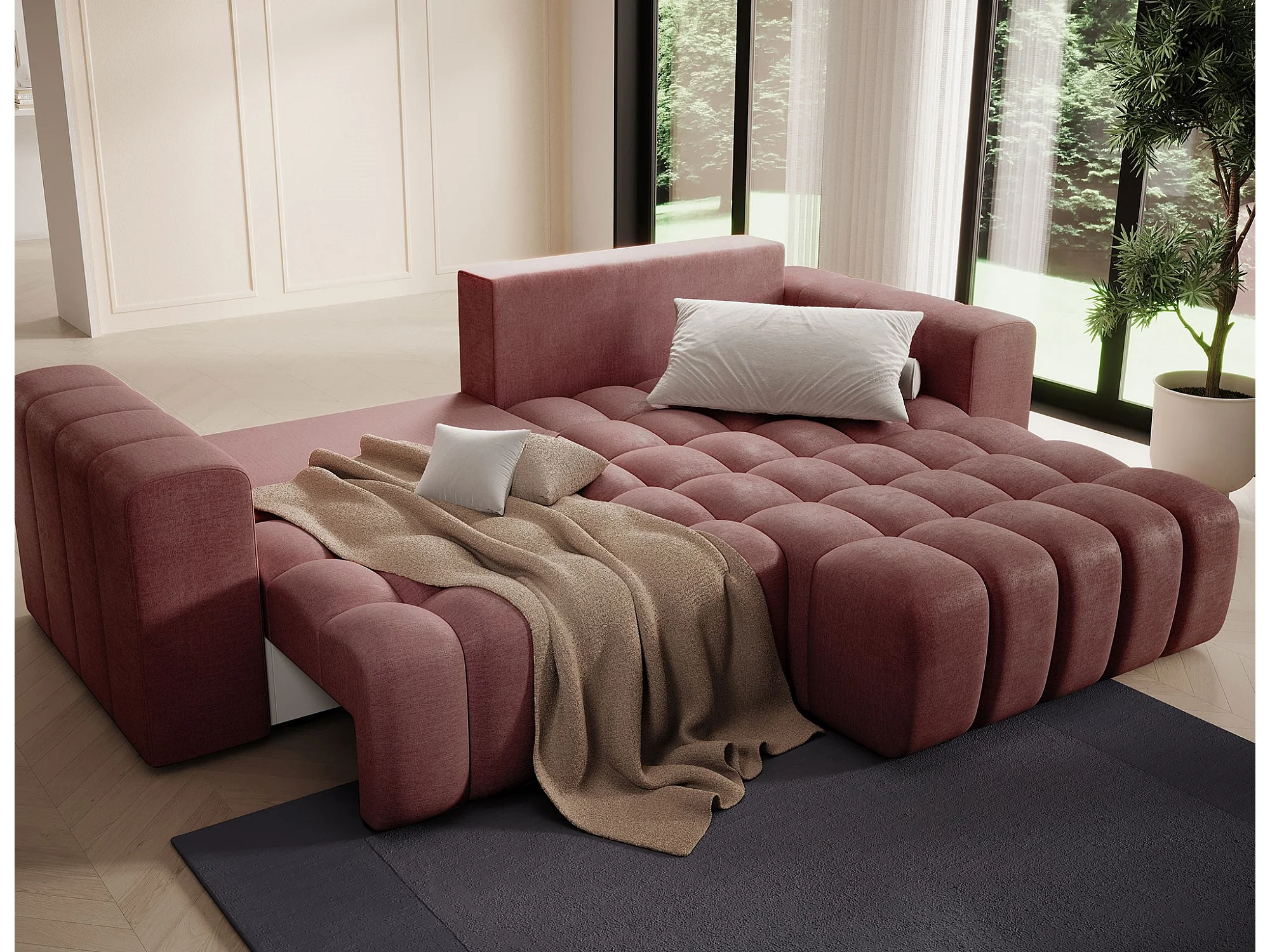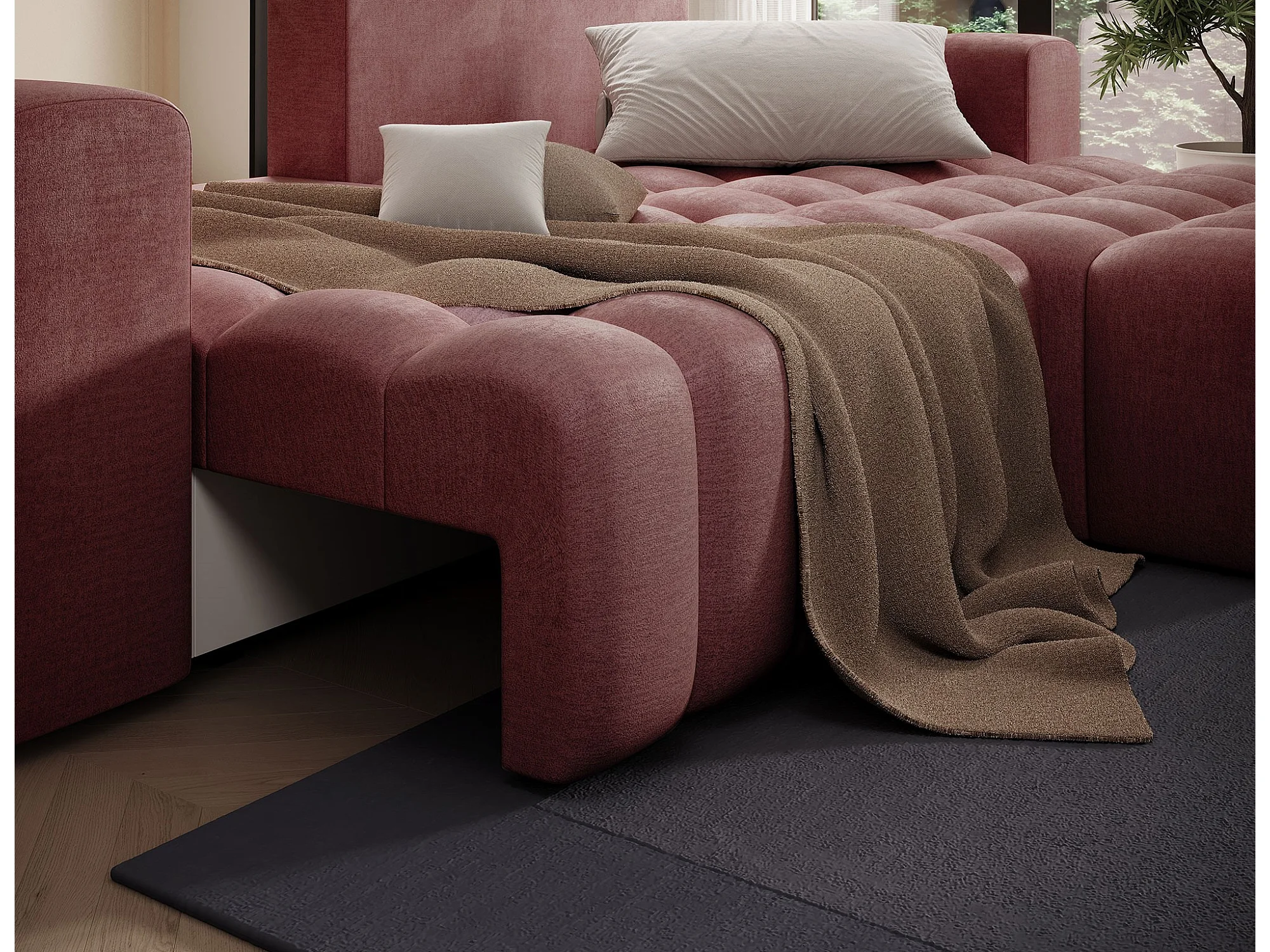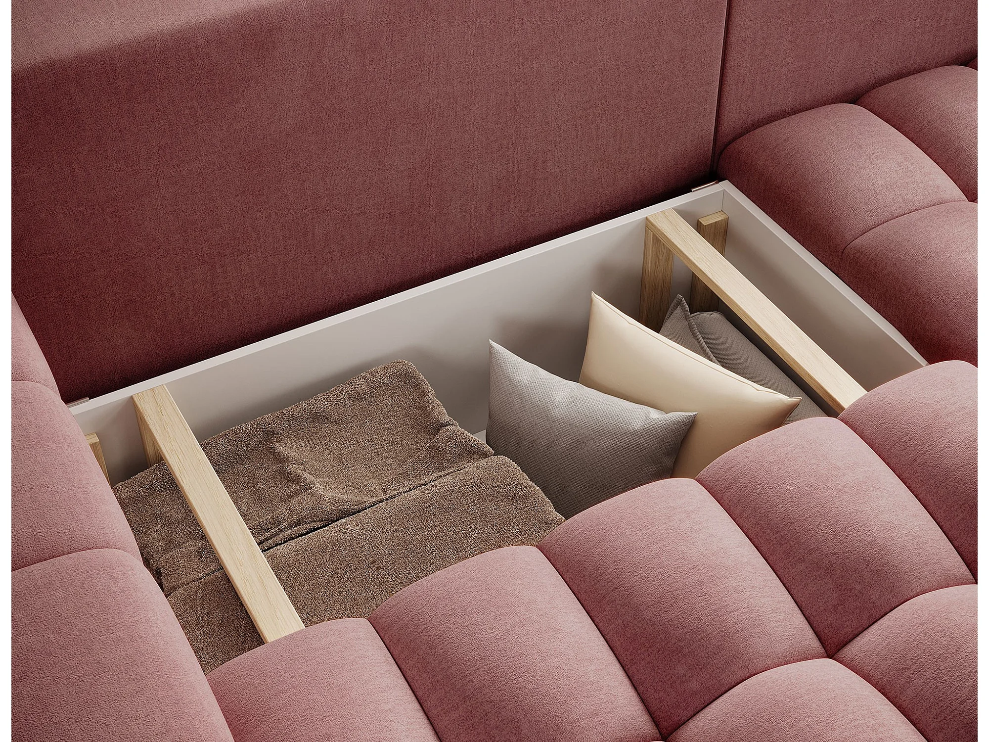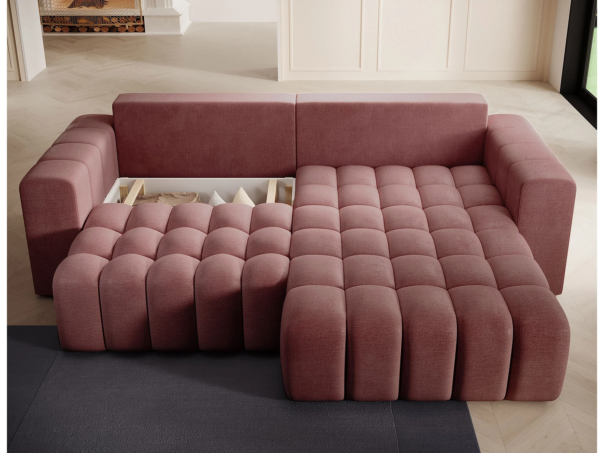 Bozen gecapitonneerde fluwelen hoekbank – Converteerbaar en opbergruimte-Kleur Terracotta-juiste hoek