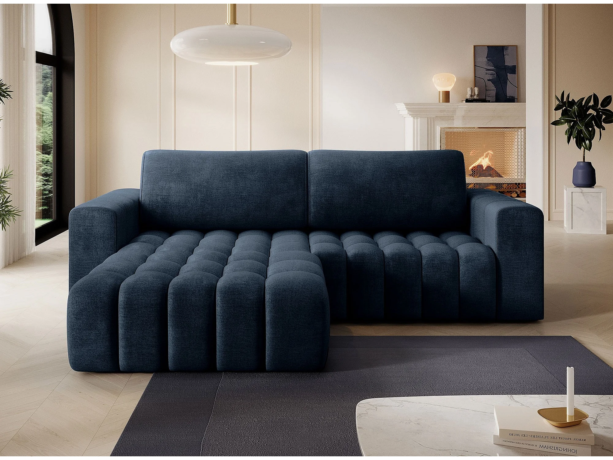 Bozen gecapitonneerde fluwelen hoekbank – Converteerbaar en opbergruimte-Kleur Mosterdgeel-linkerhoek