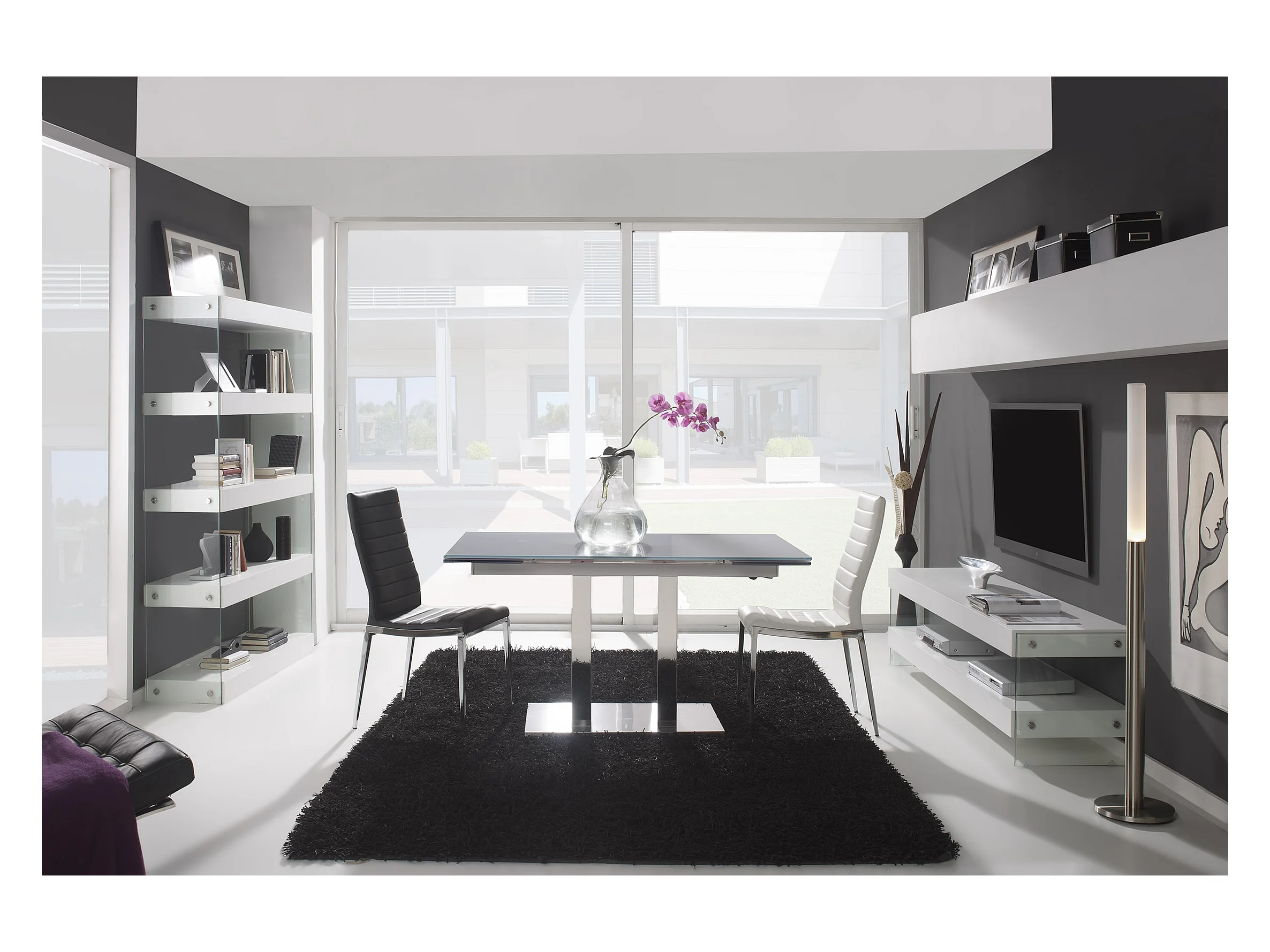 Plank met 4 niveaus en 1 lade in walnoot en gelakt hout Muza-Kleur Land