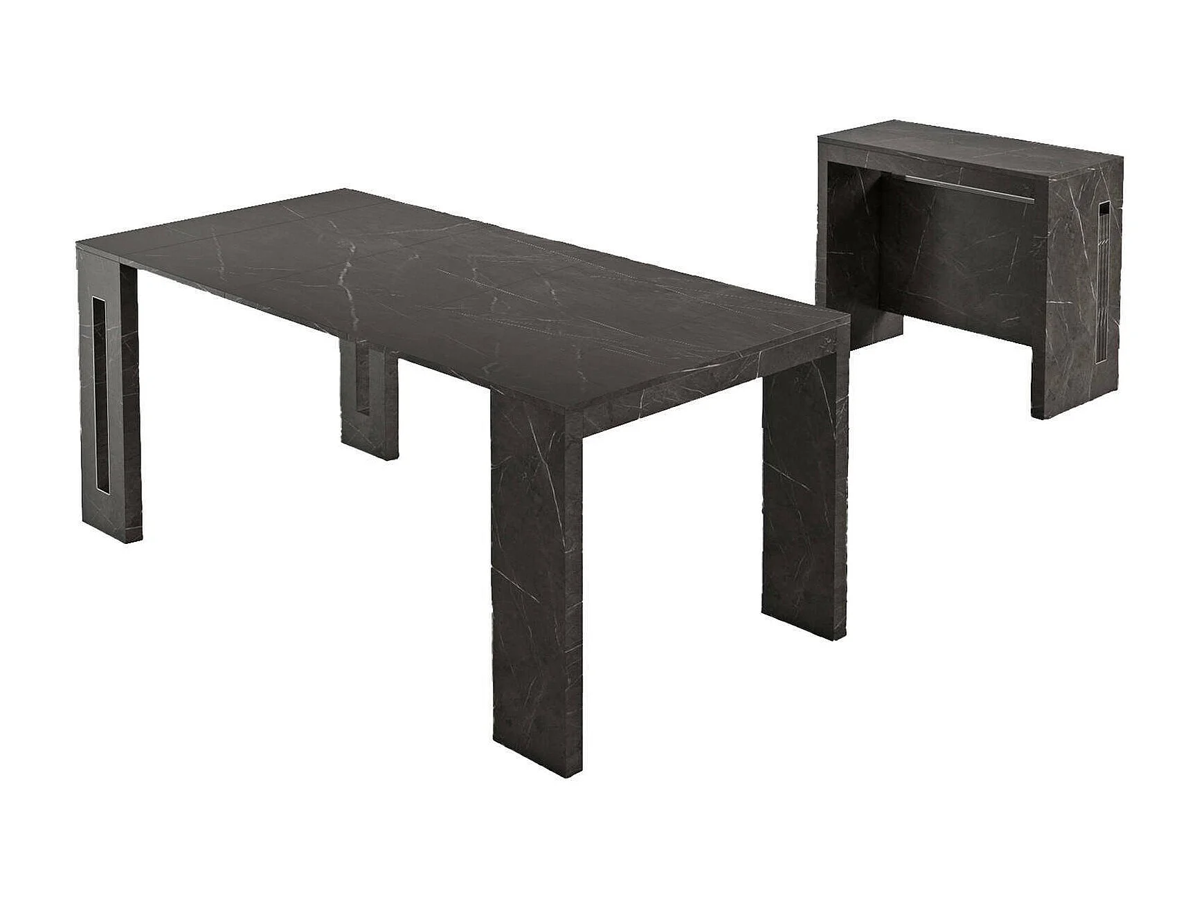 Detound uitschuifbare console, Uitschuifbare eettafel, Multifunctionele console met verlengstukken, 100% Made in Italy, 186x80h76 cm, Zwart marmer