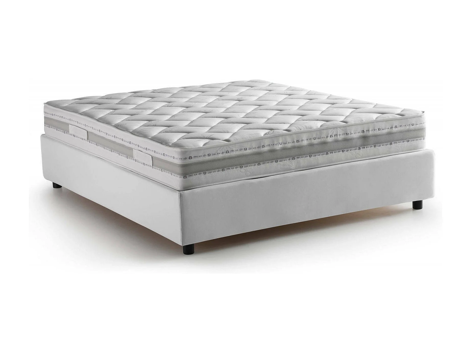 Deusep tweepersoonsbed, Opbergbed met stoffen bekleding, 100% Made in Italy, Opening aan de voorkant, inclusief matras van 160x200 cm, Wit