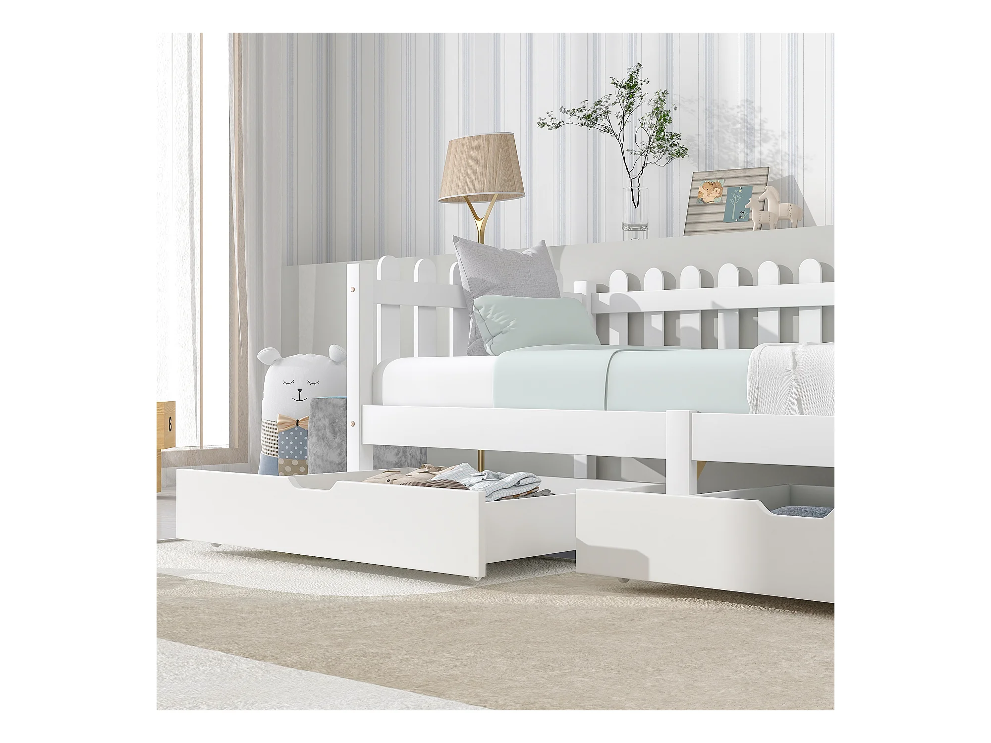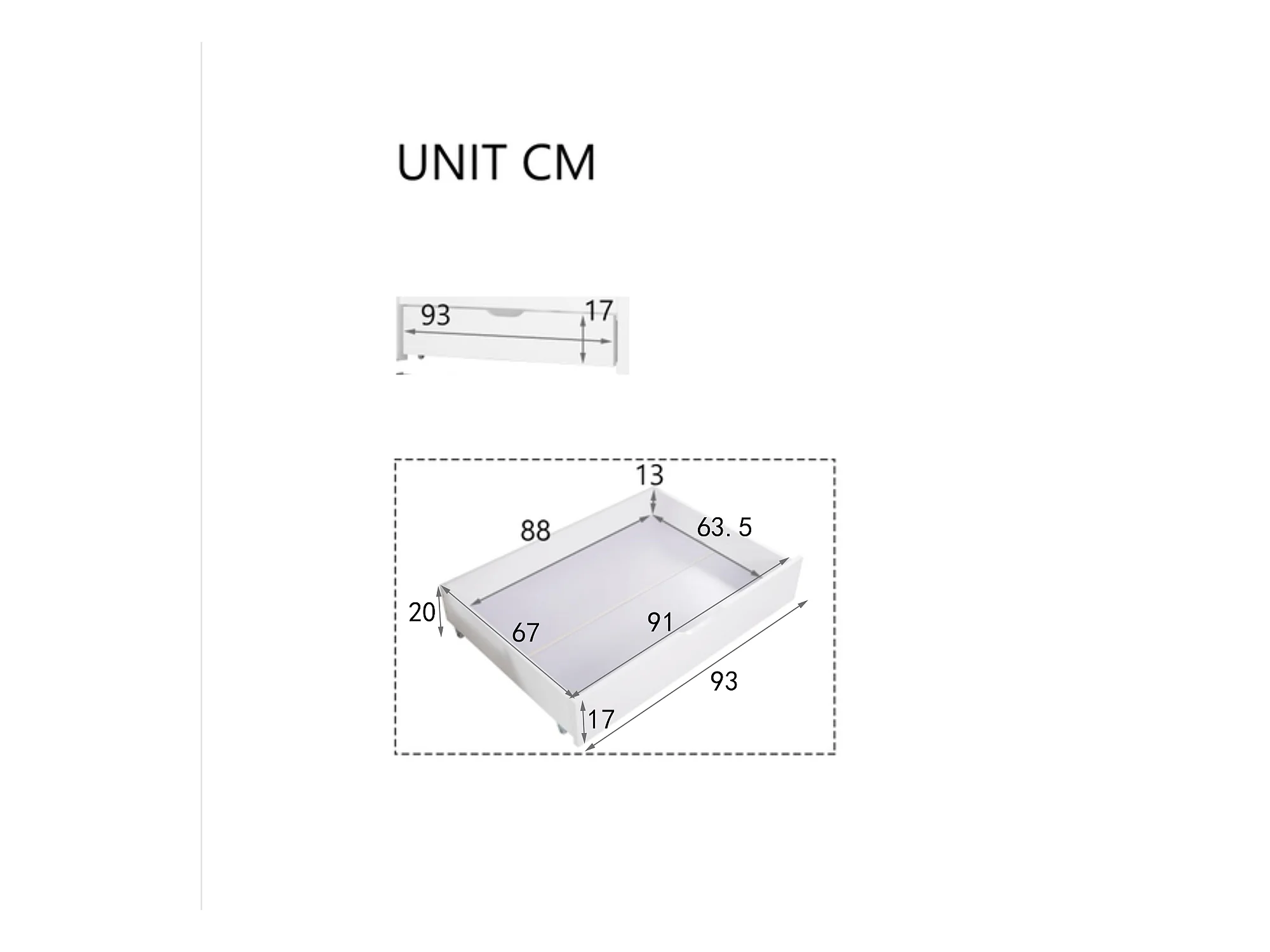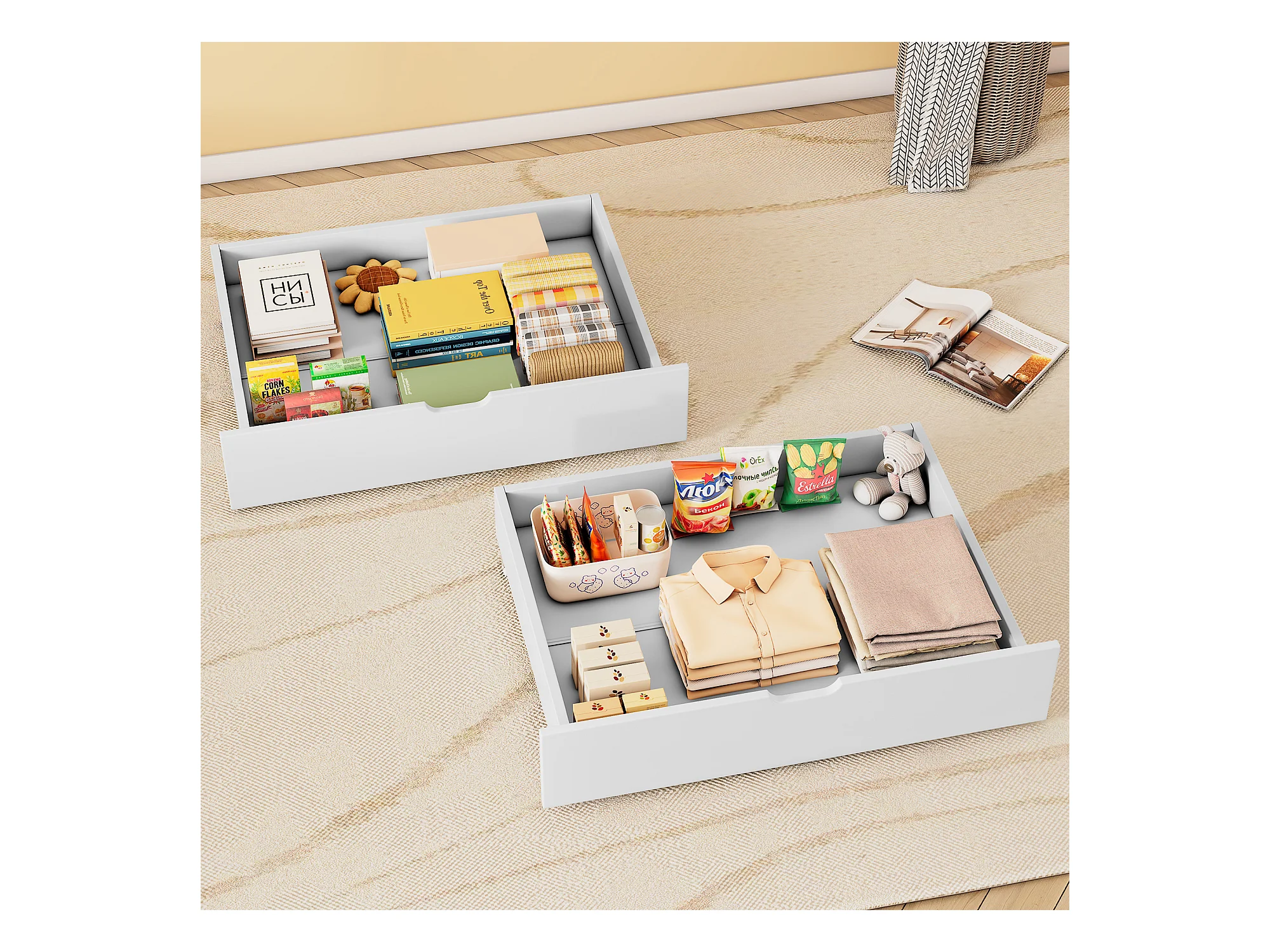 Twee lades, opbergruimte onder het bed, MDF + vloerwielen, wit (93x67x20cm) (alleen lades)