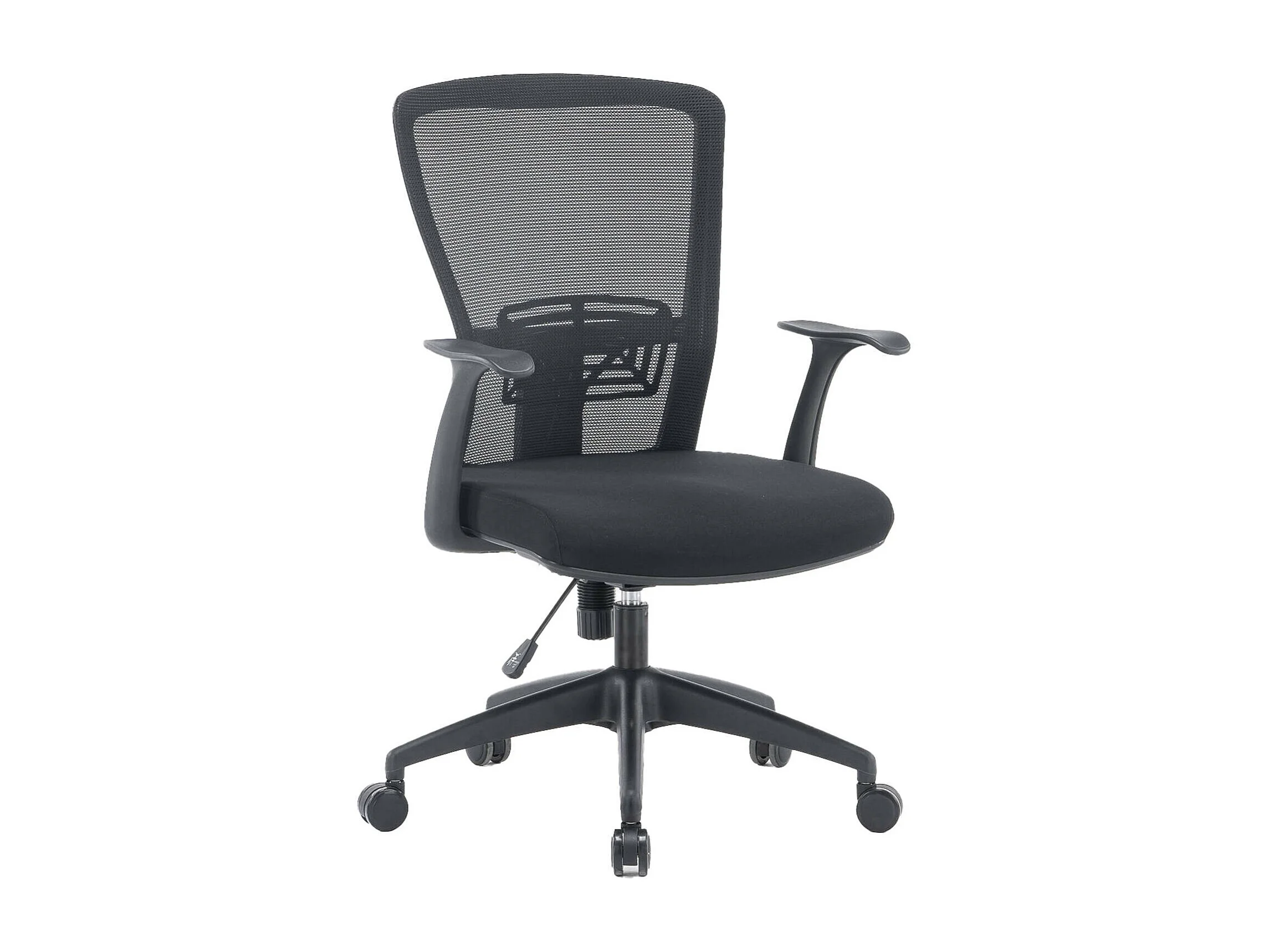 Dmora Zwarte Stoel met Wielen Barzio, In Hoogte Verstelbare Bureaustoel met 5 Wielen en Bekleding