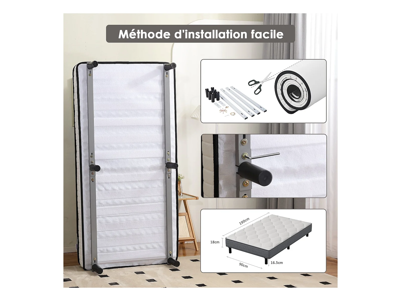 DEWINNER Matras- en bedbodemset 90x190 cm, matras met pocketveren en stevig ijzeren bedframe met 6 poten, matrasdikte 18 cm