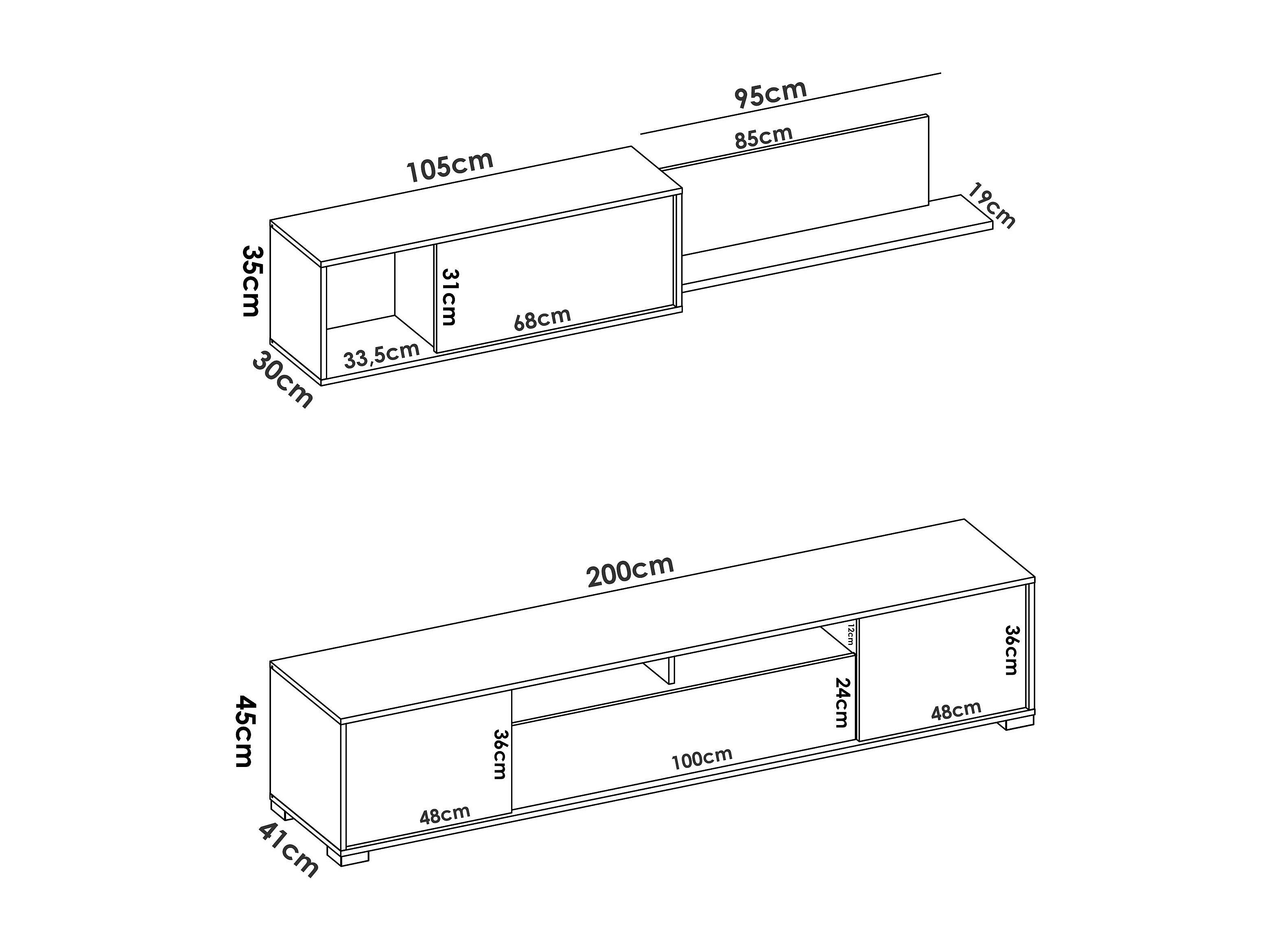 Dabarb wandsysteem, TV-meubel woonkamermeubel, Omkeerbare woonkamersamenstelling, Hoekwoonkamerset, 200x41h44 cm, Eiken en Glanzend Wit