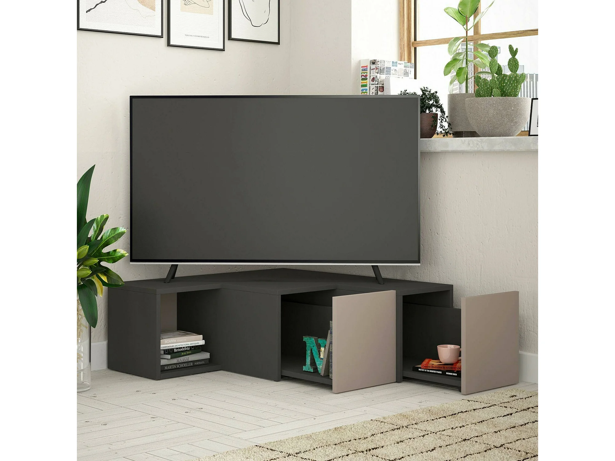 Dfallett tv-meubel, woonkamer dressoir, laag tv-meubel, gemonteerd wandonderstel, 90x92h32 cm, antraciet en beige