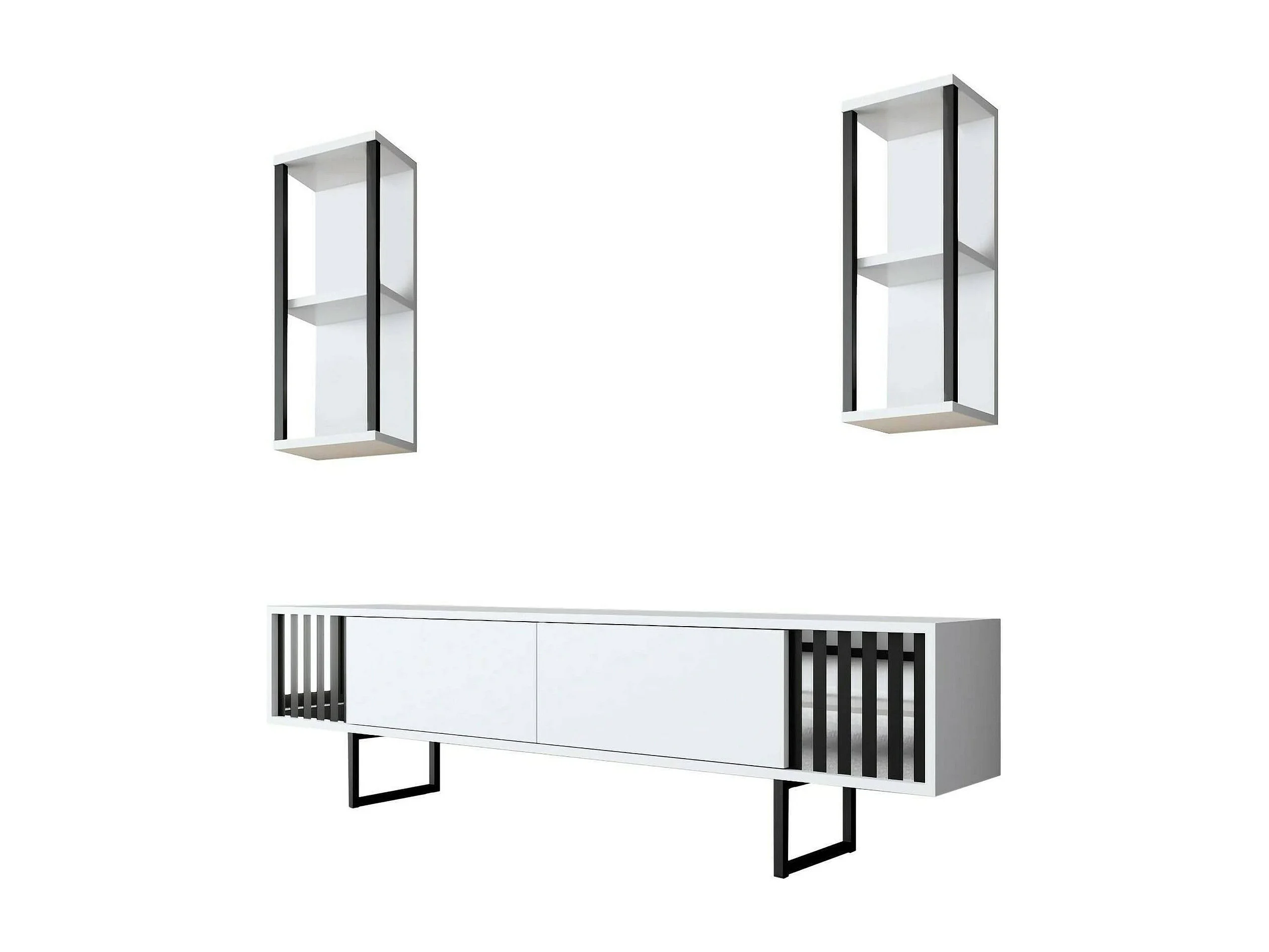 Dfantin tv-meubel, woonkamer dressoir, laag tv-meubel, gemonteerd wandonderstel, 180x30h48 cm, zwart-wit