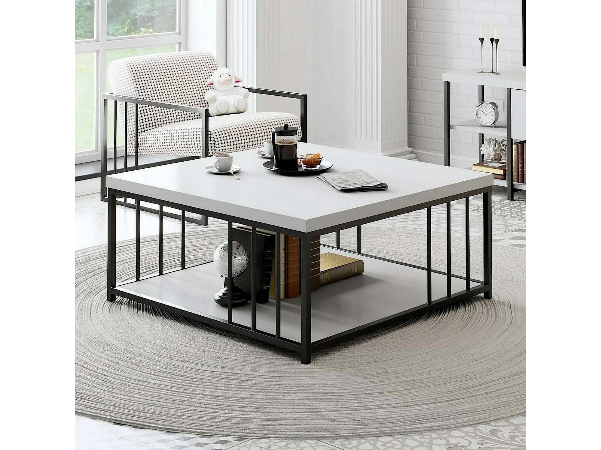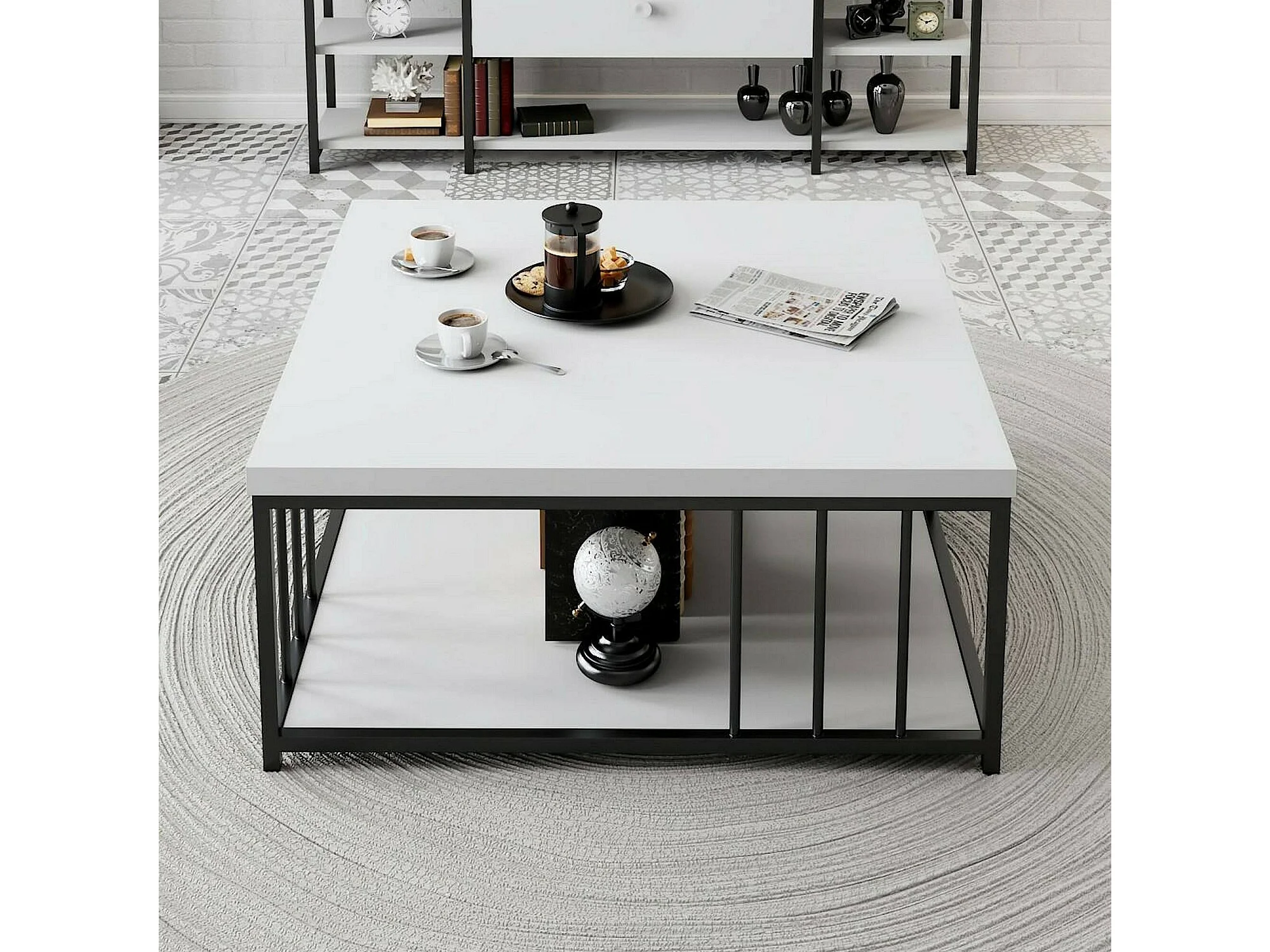 Dfedrizz-safeltafel, Koffietafel, Softa- en tafelhouder voor bank, Aanrecht, 90x90h40 cm, Zwart-wit