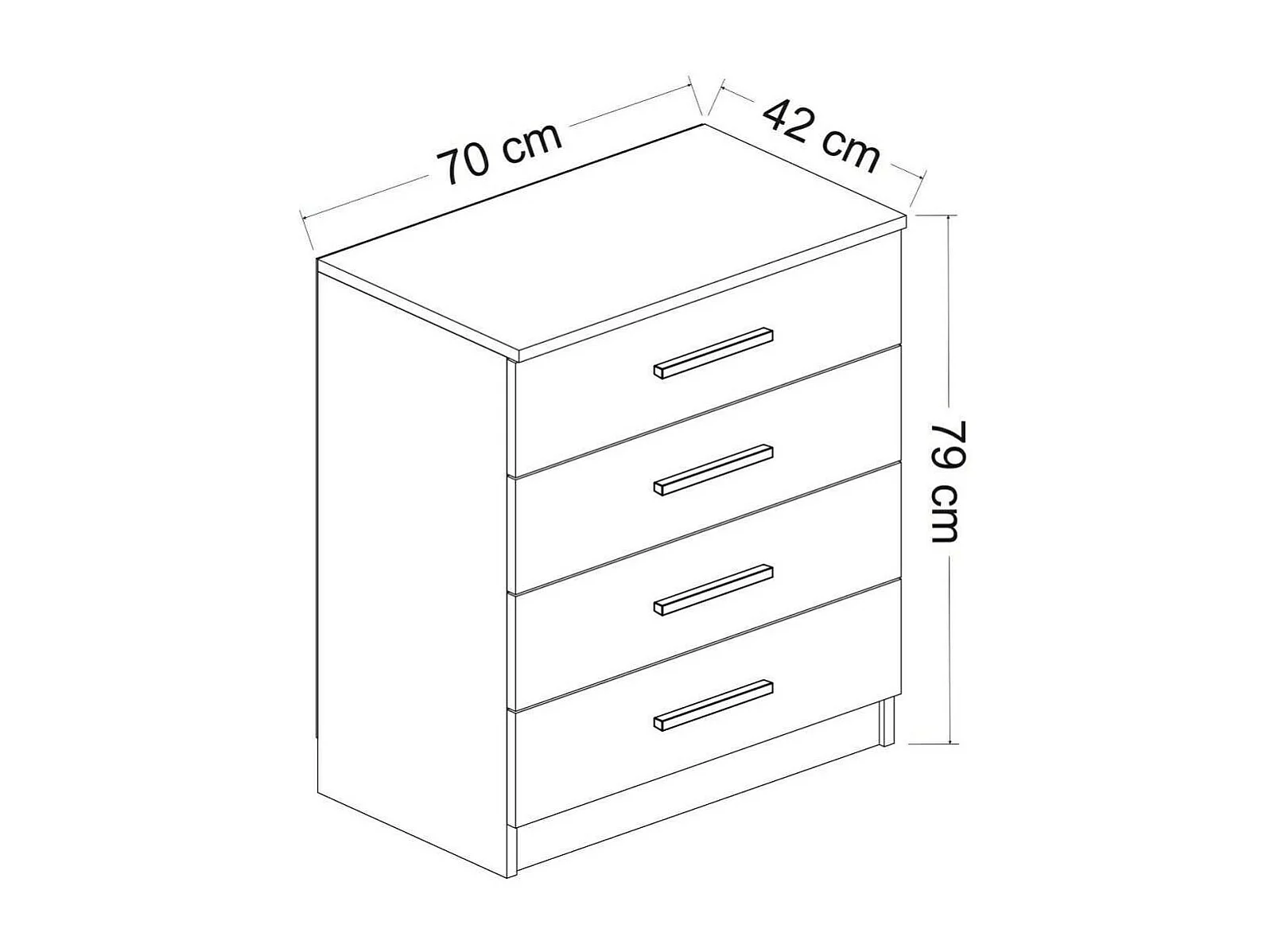 Dfelle ladekast, Multifunctionele ladekast, Slaapkamerdressoir, Kast met lades, 70x79 h42 cm, Wit