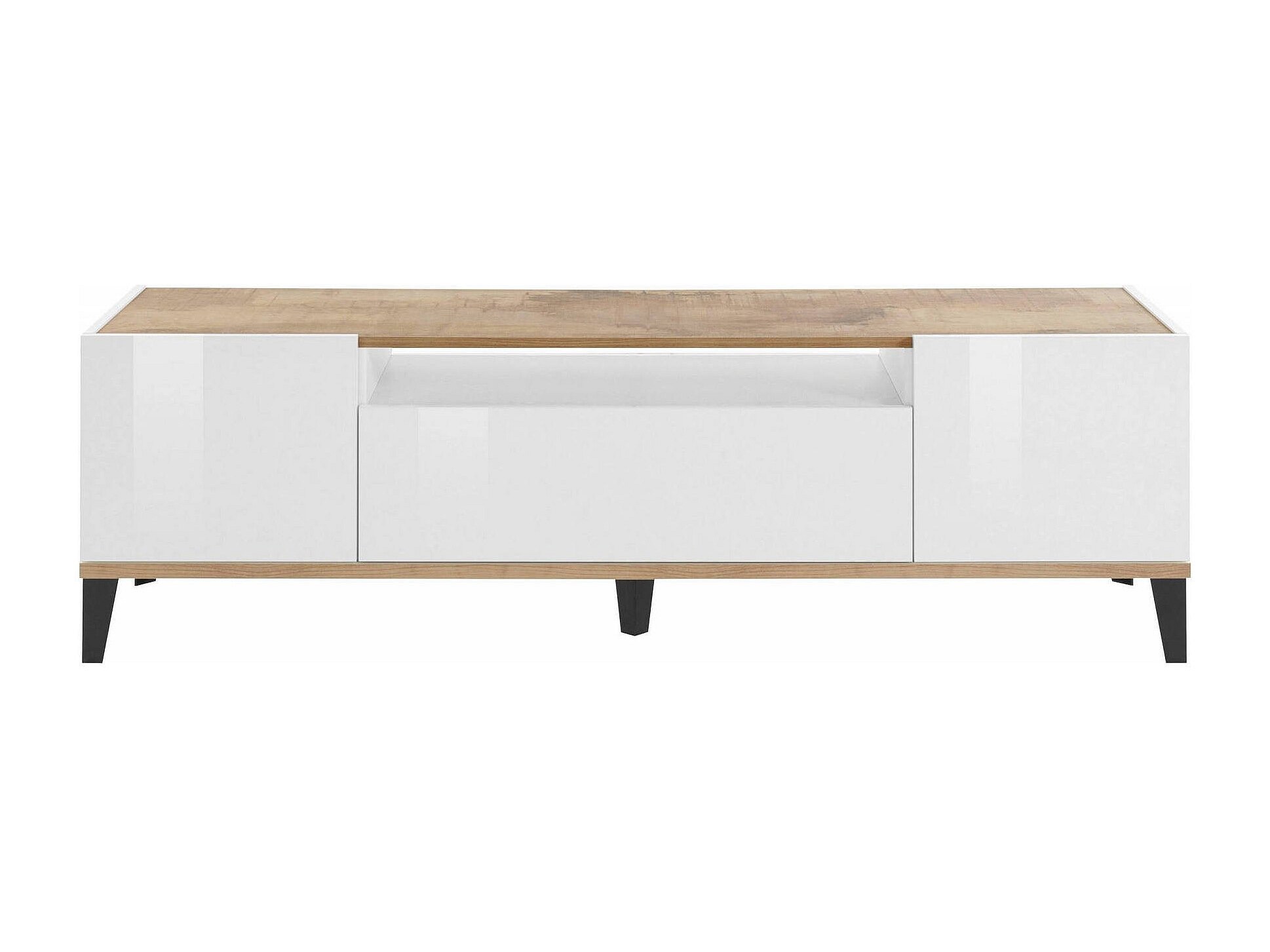 Dfigol TV-meubel, Laag woonkamerdressoir met 2 deuren, TV-meubelbasis, 100% Made in Italy, 160x40h47 cm, Glanzend wit en esdoorn
