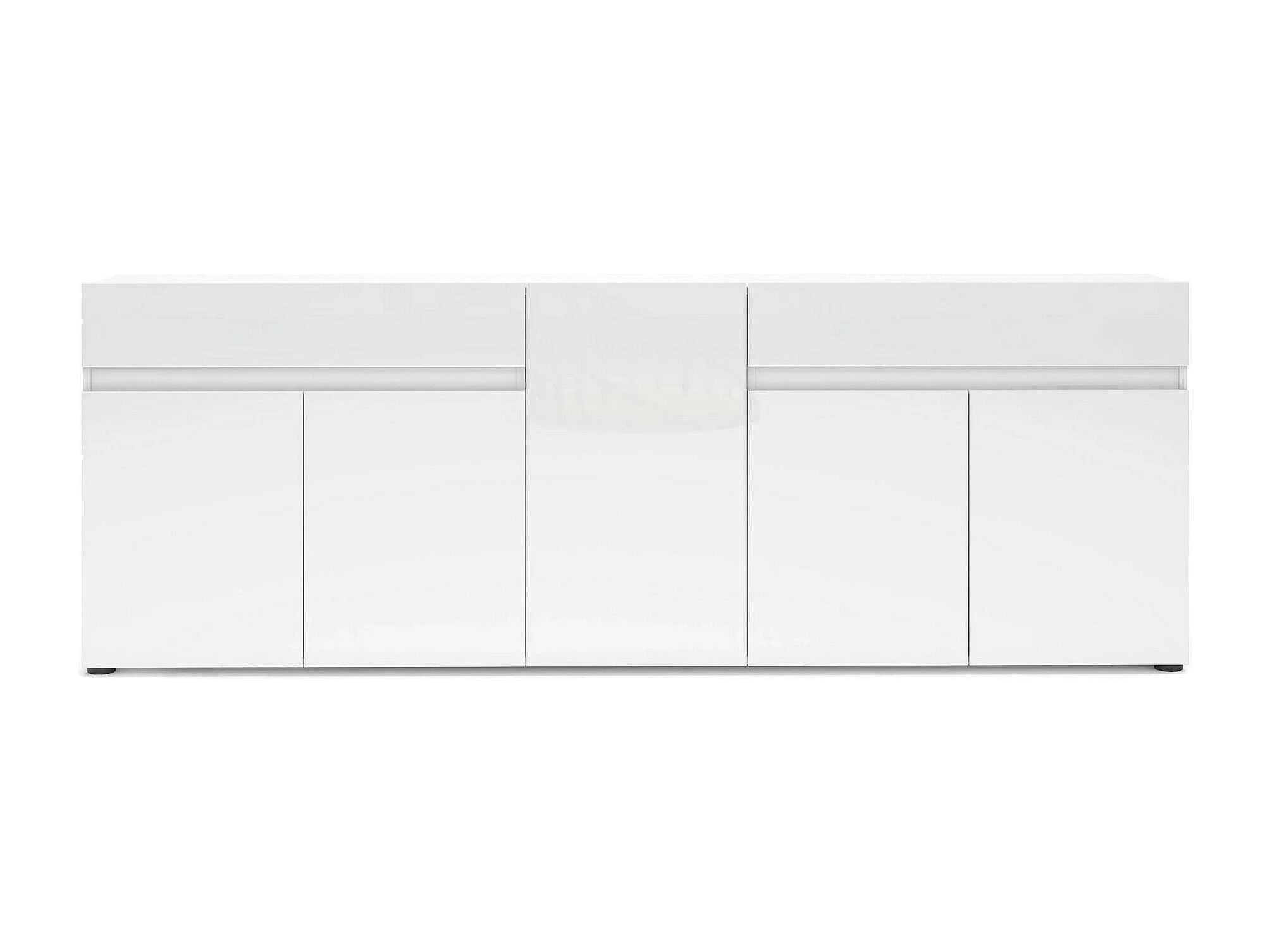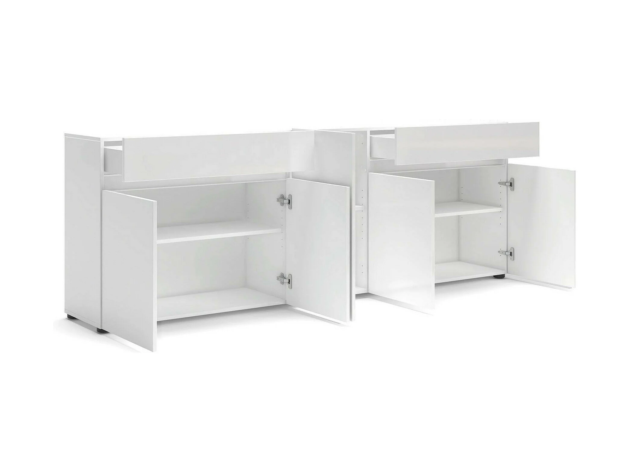 Dfilanger dressoir, Woonkamerbuffet, Woonkamer, Keukenkast, Made in Italy, 225x38h79 cm, Glanzend wit